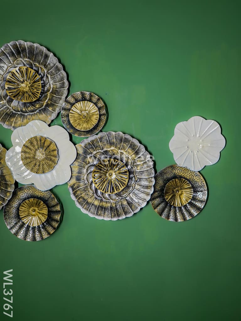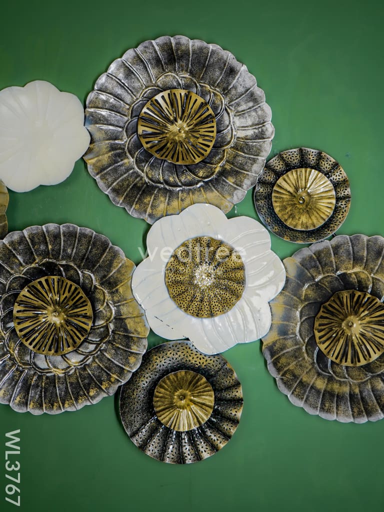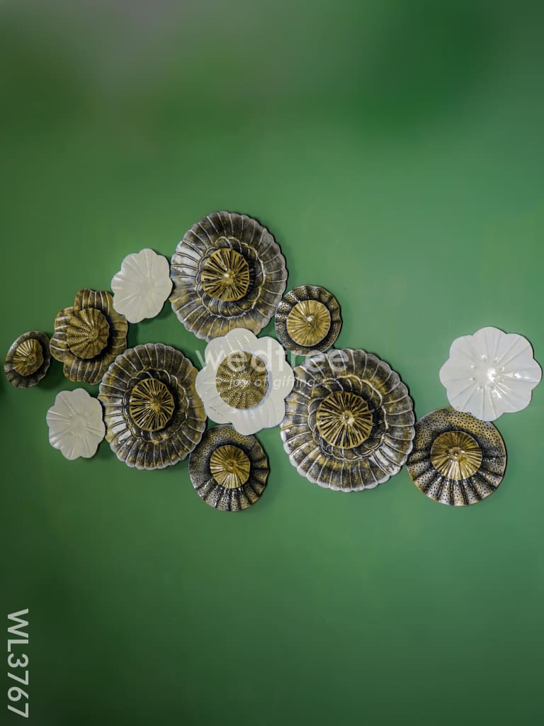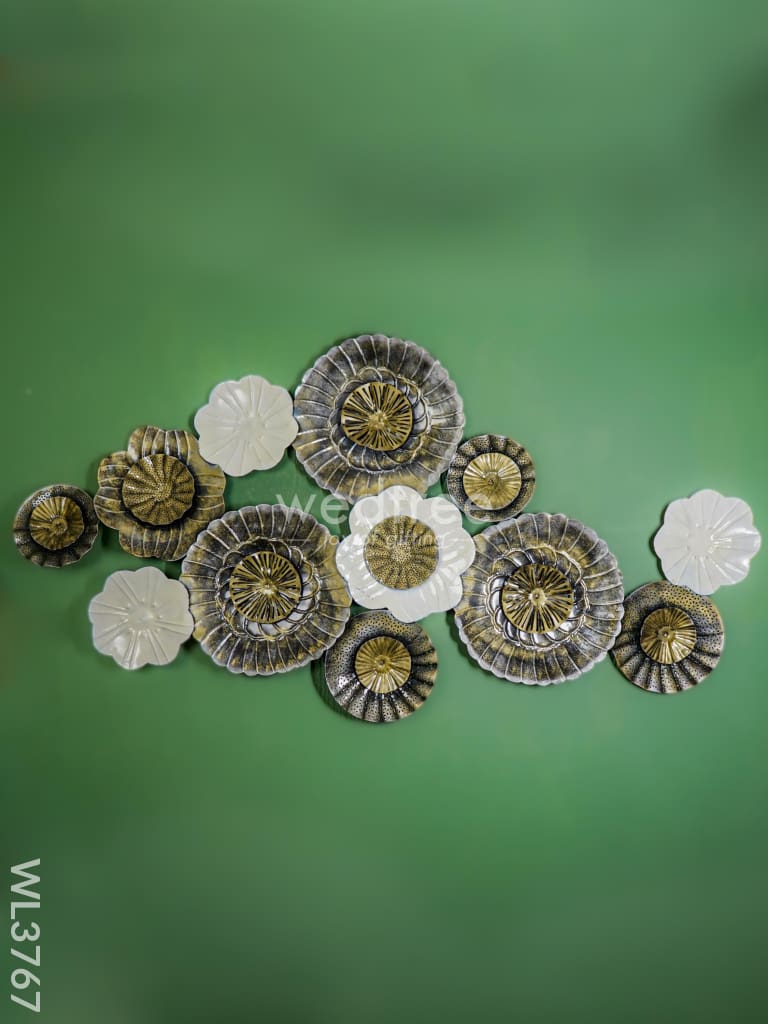 - Add some floral panache to your walls with this eclectic metal wall hanging! The unique art work is crafted with metal and outfitted with white flowers to enhance your living room.