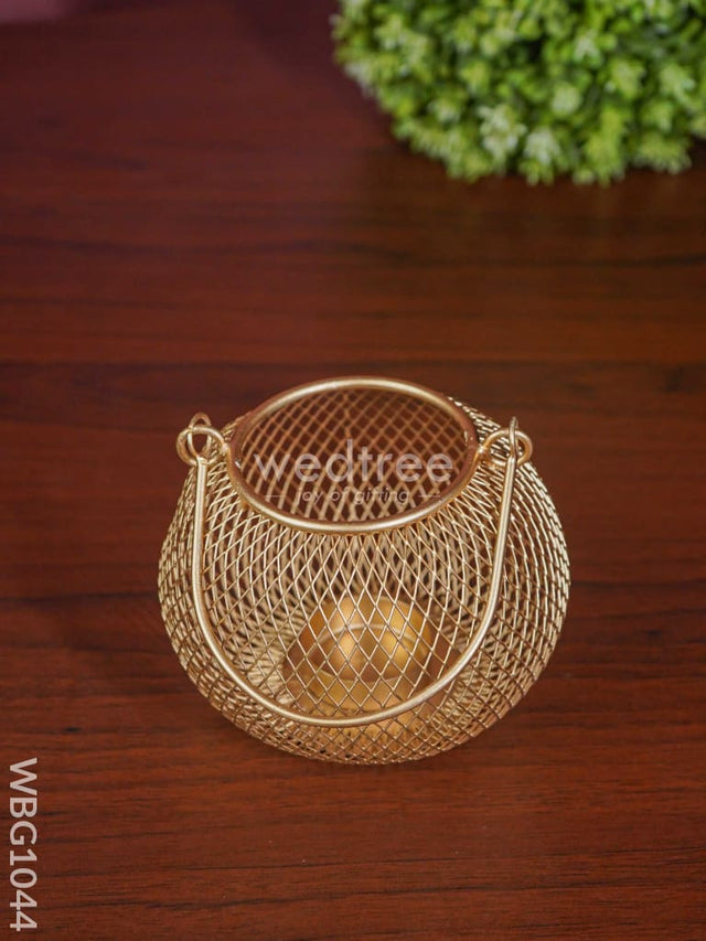 Bowl shaped T Light Holder with Metal Handle - WBG1044