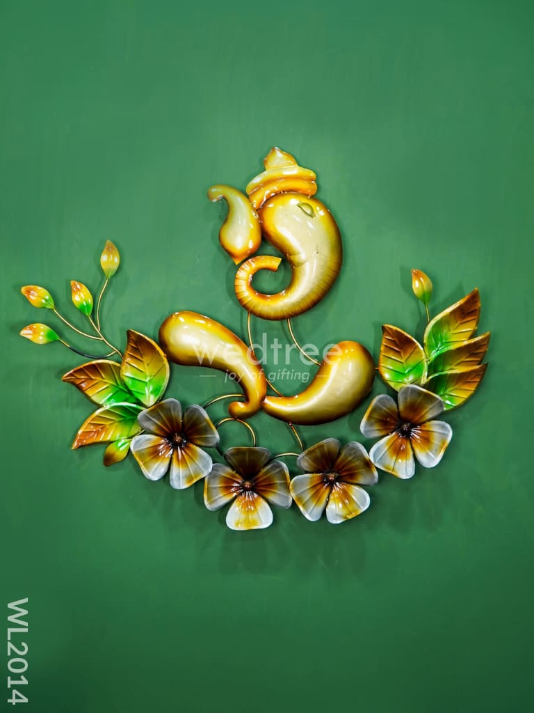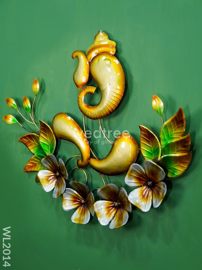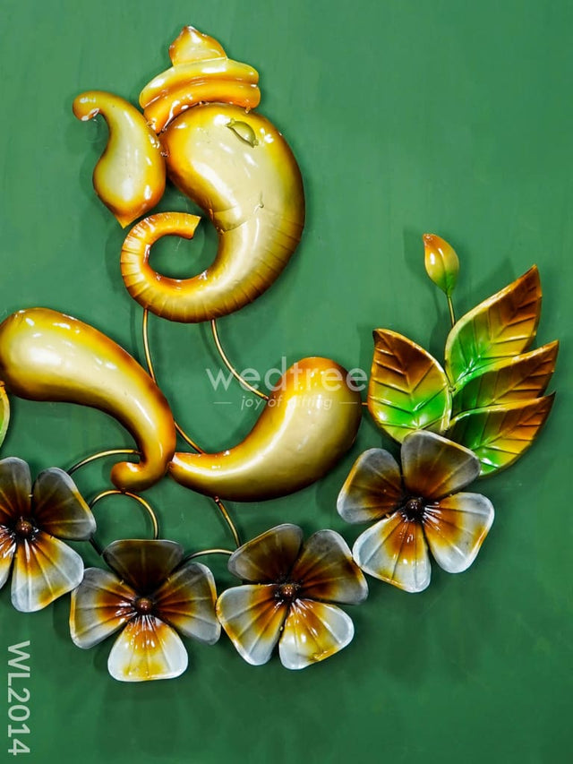 Metal Wall Decor - Golden Ganesha with Flowers - WL2014
