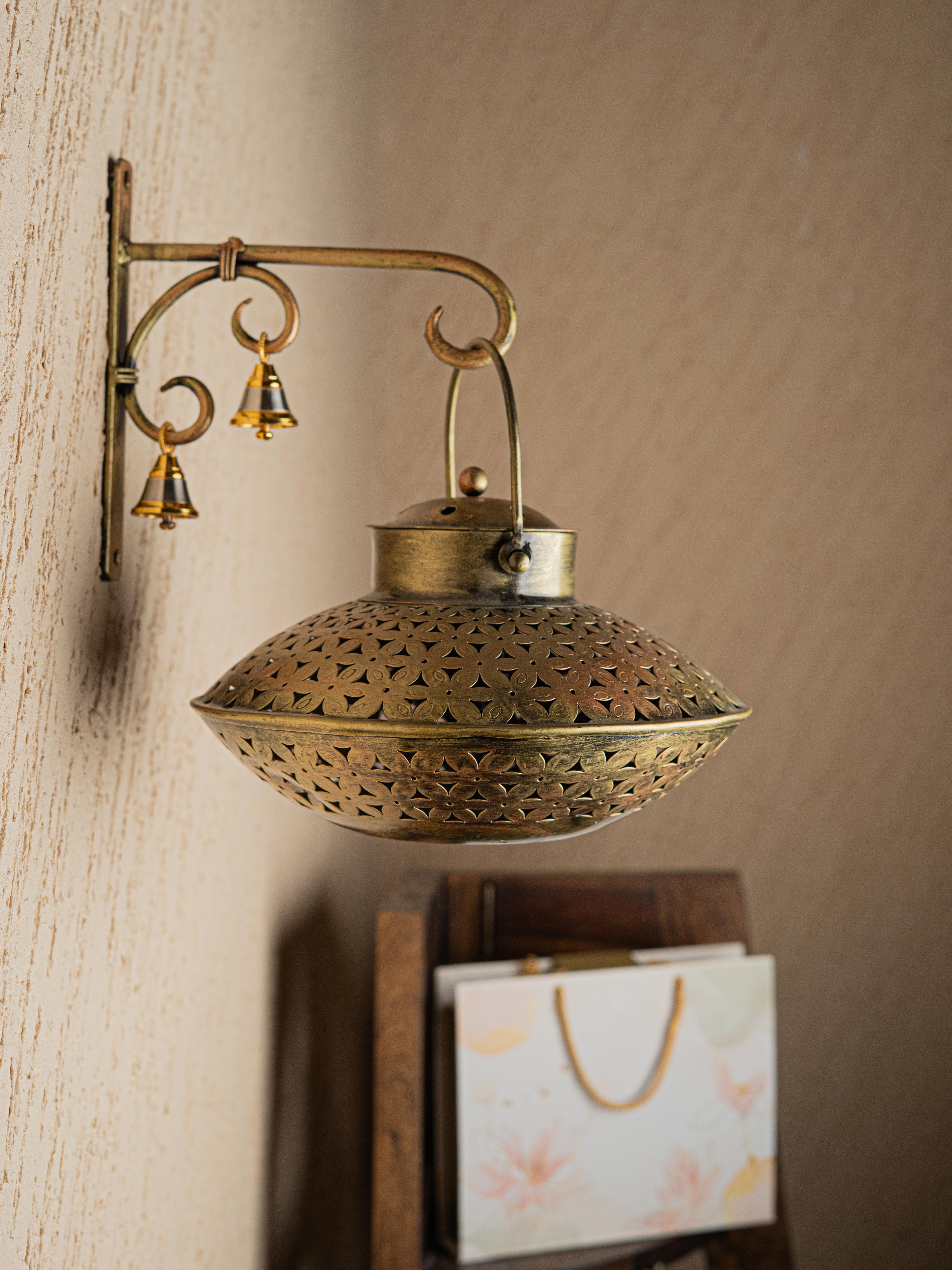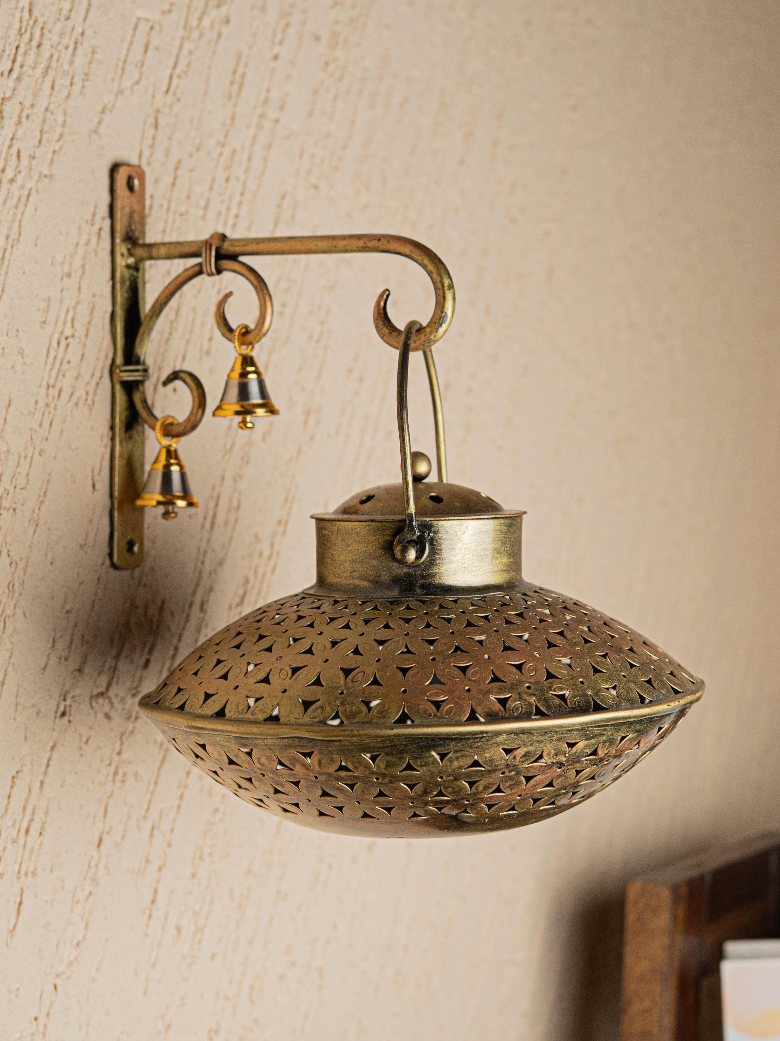 - Add a Touch of Traditional Charm to your Space with this Beautifully Crafted Wall-Mounted T-Light Holder with Bells.