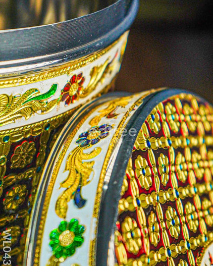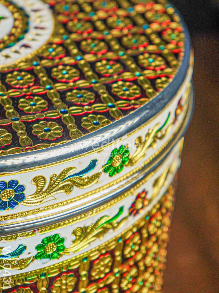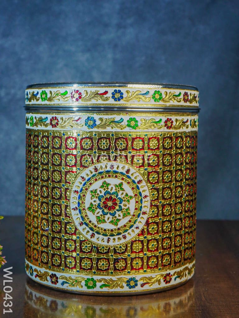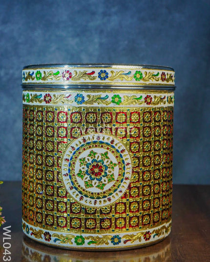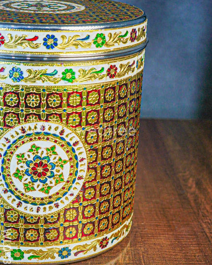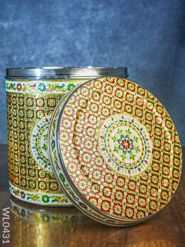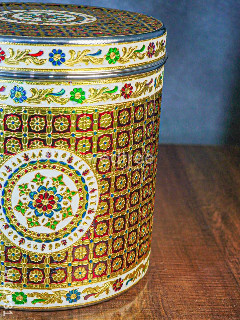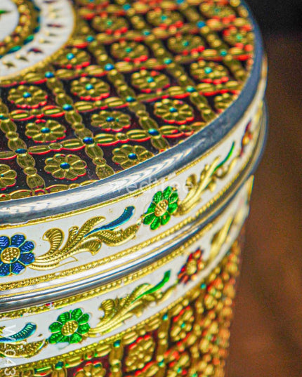 - This dabba is beautifully designed with the traditional meenakari art and technique.