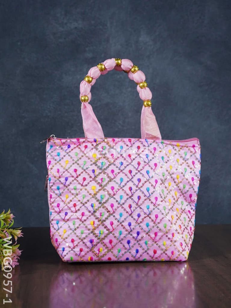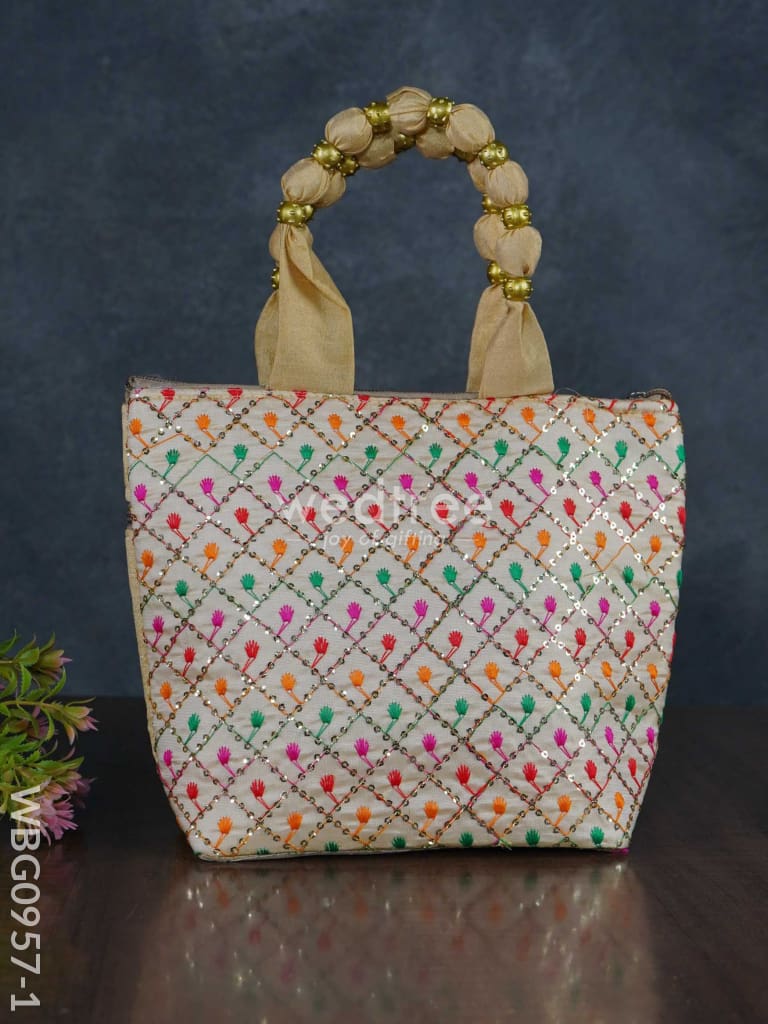 Hand Bag with Allover Thread Embroidery - WBG0957-1