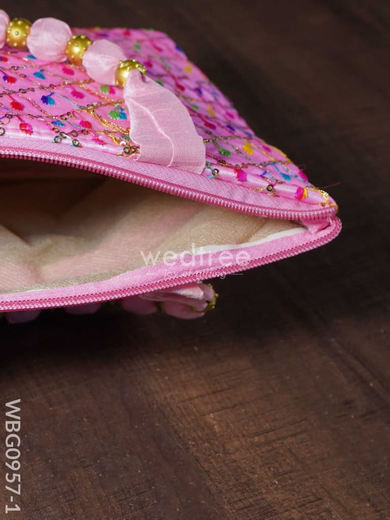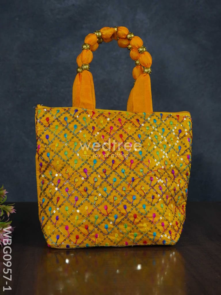 - Check out this beautiful hand bag that carries rich and vibrant embroidery work all throughout.