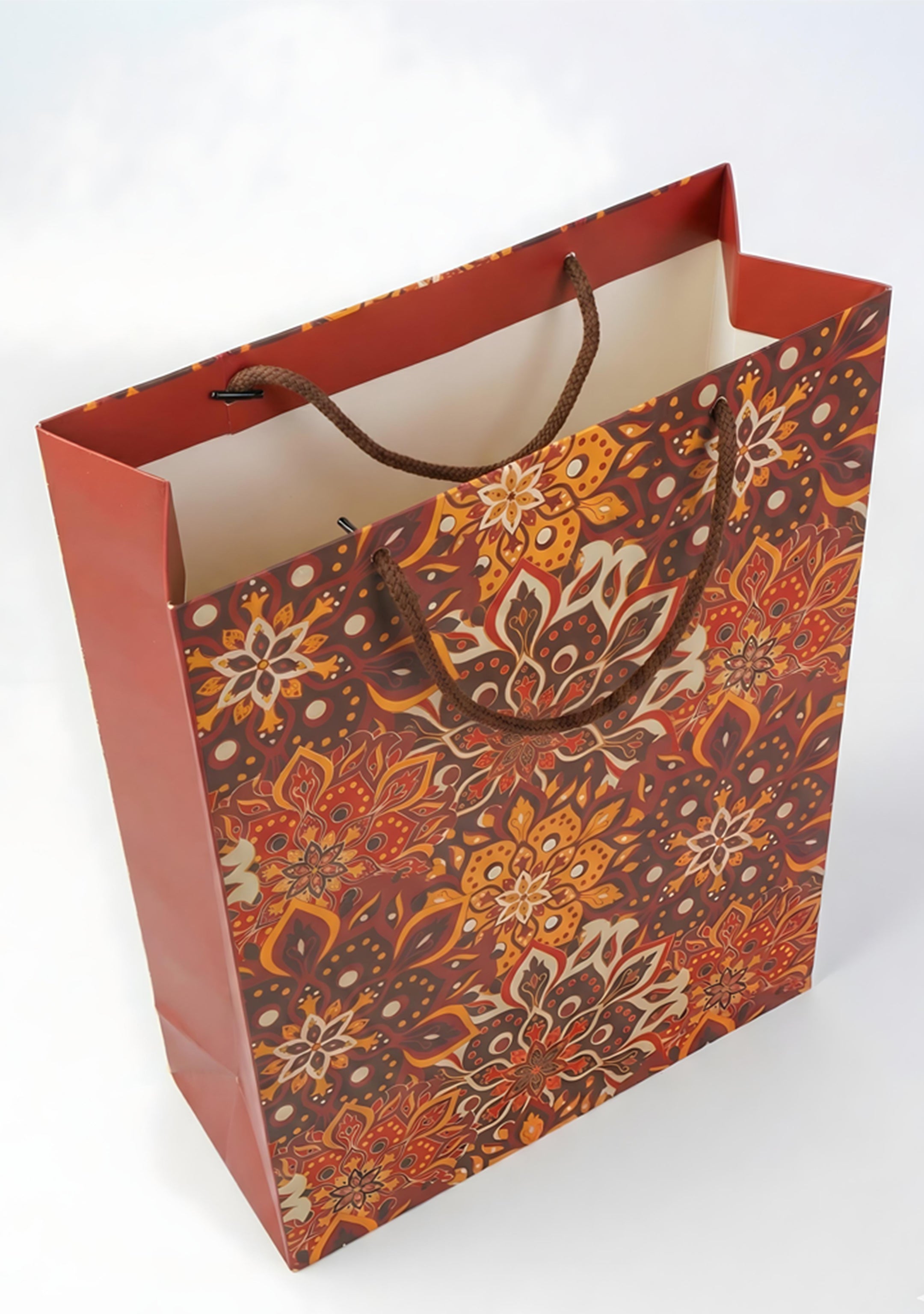 - Designed with interesting floral patterns, the paper bag is both stylish and environment friendly.