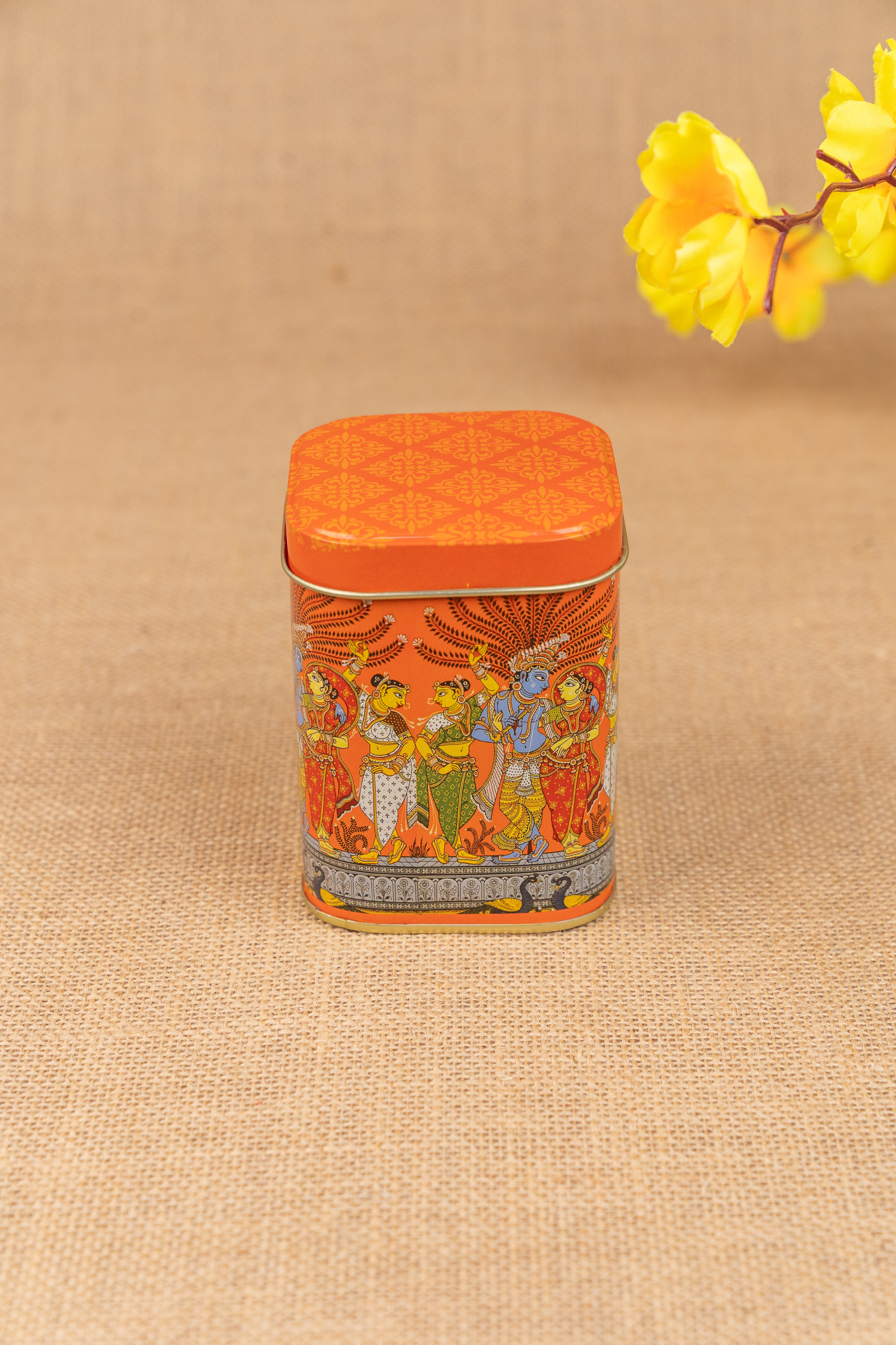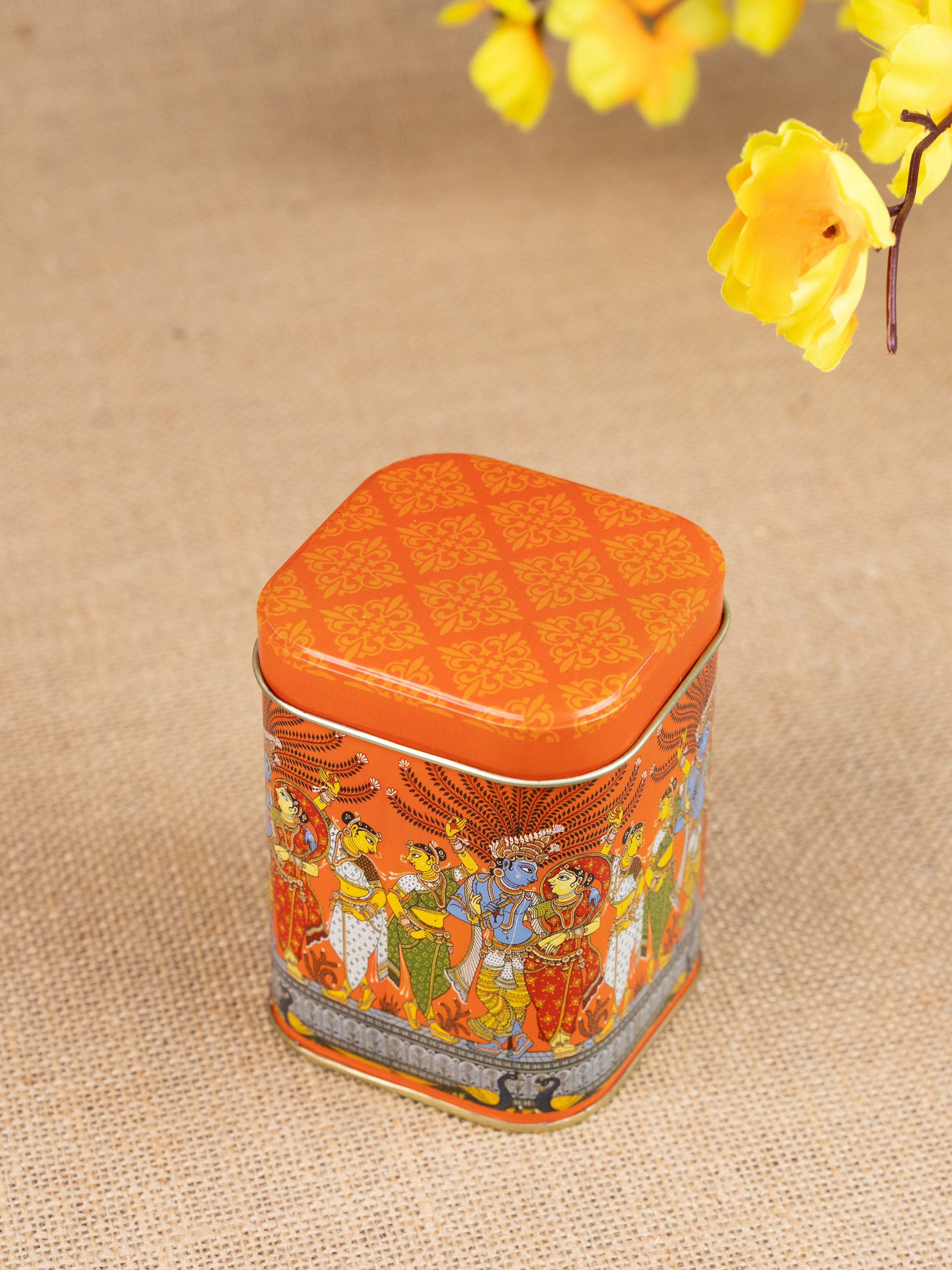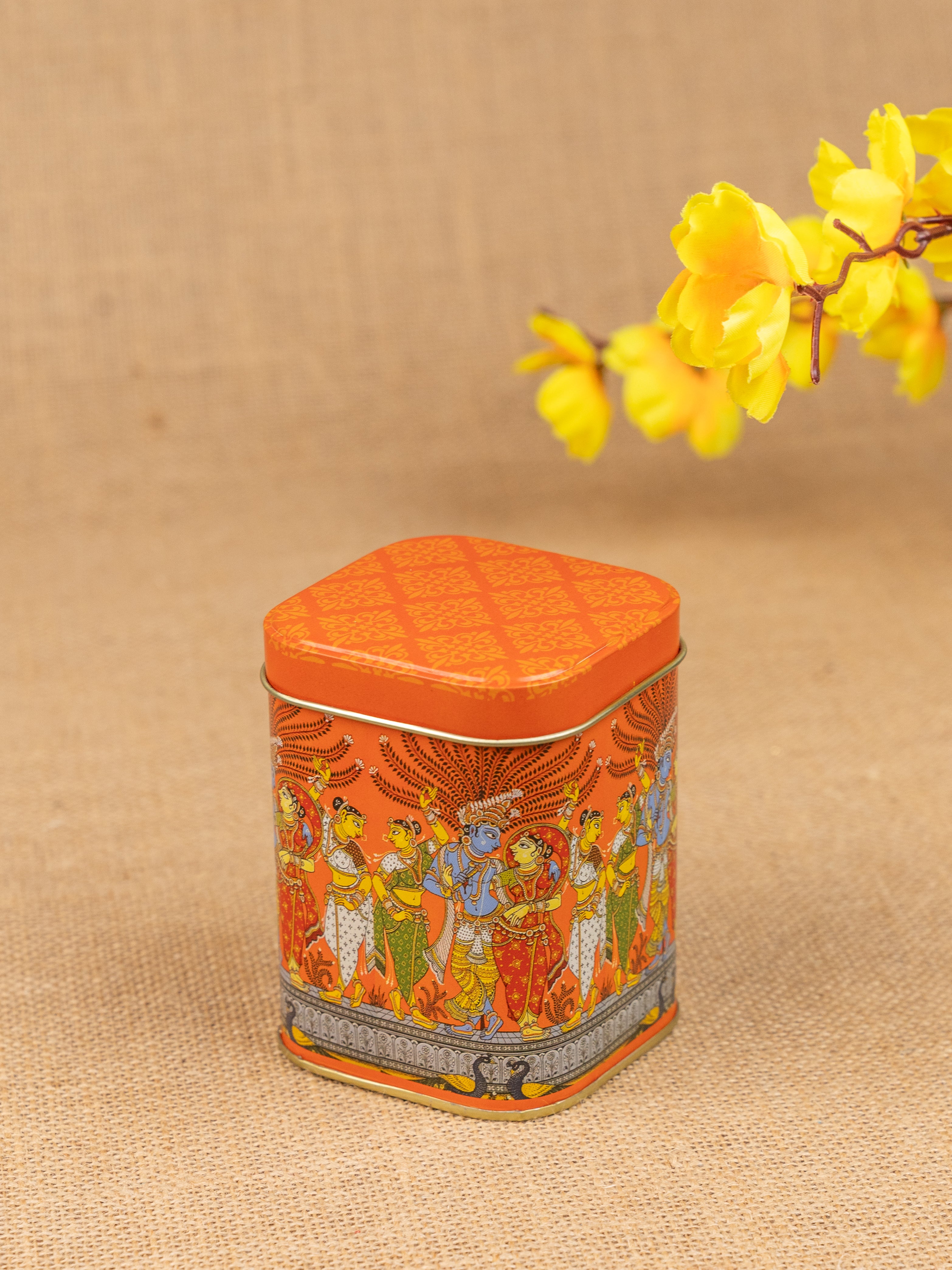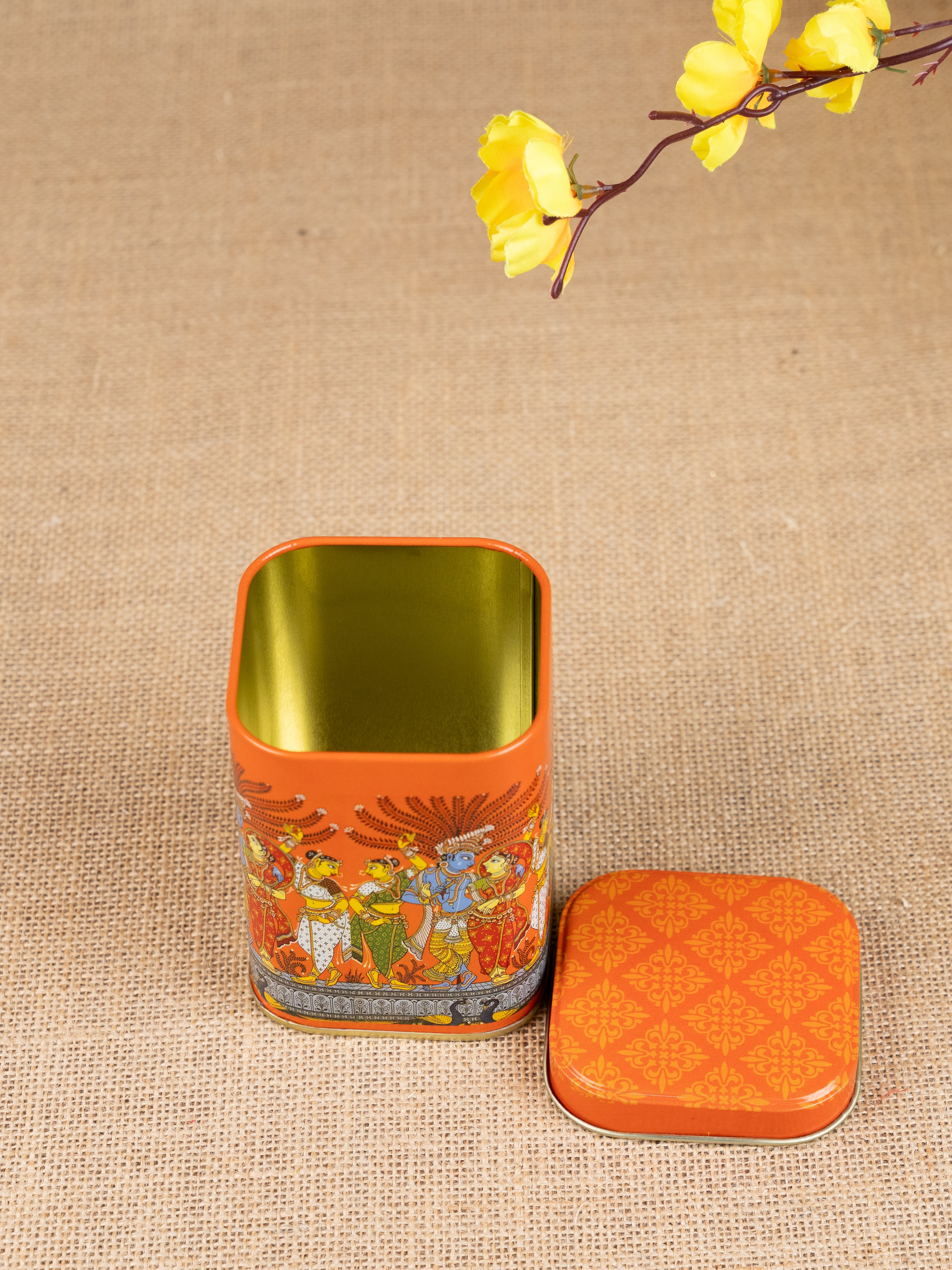 - Mural Digital Printed Tin Jar, Featuring Intricate and Vibrant Traditional Indian Folk Art.