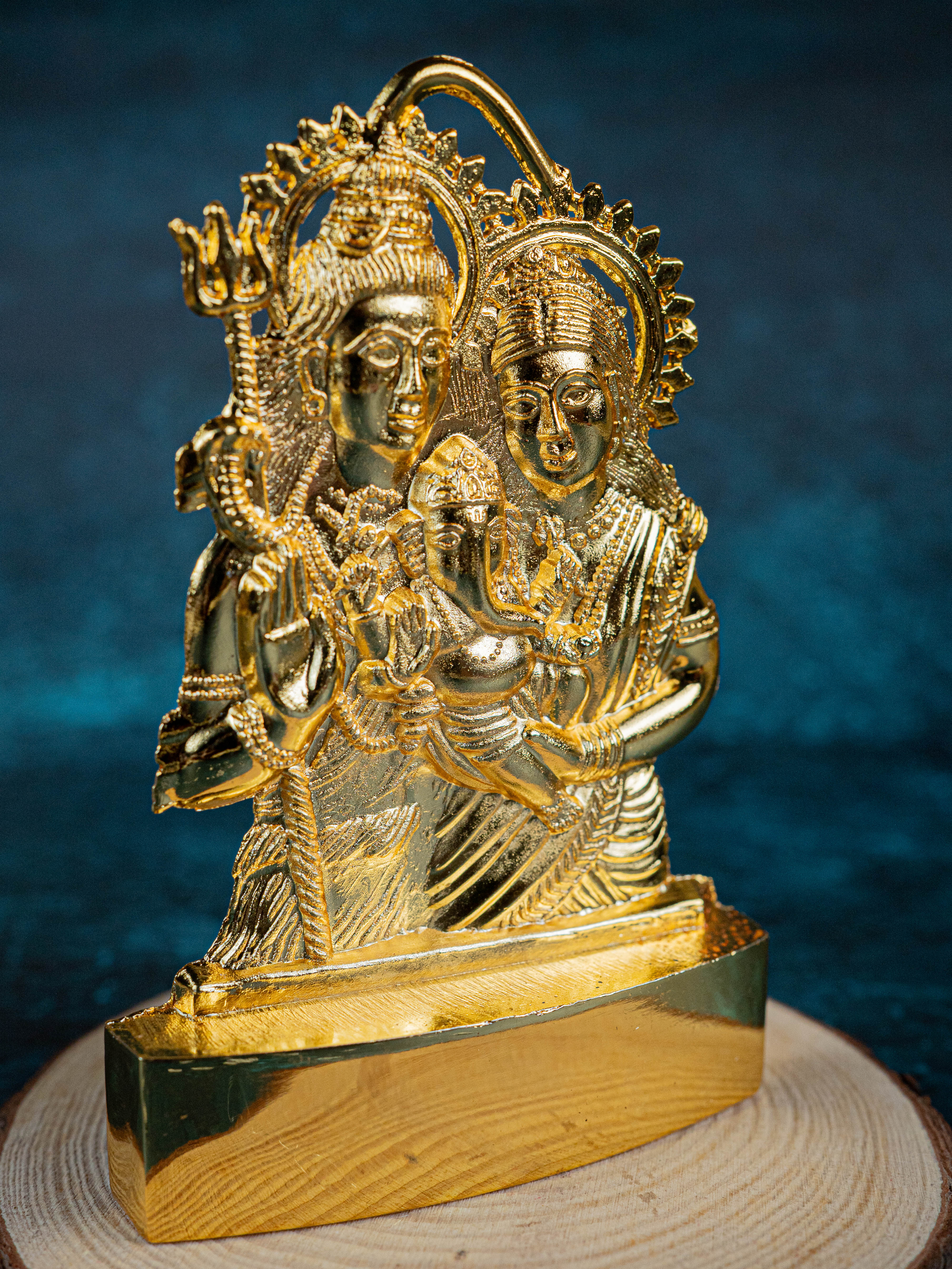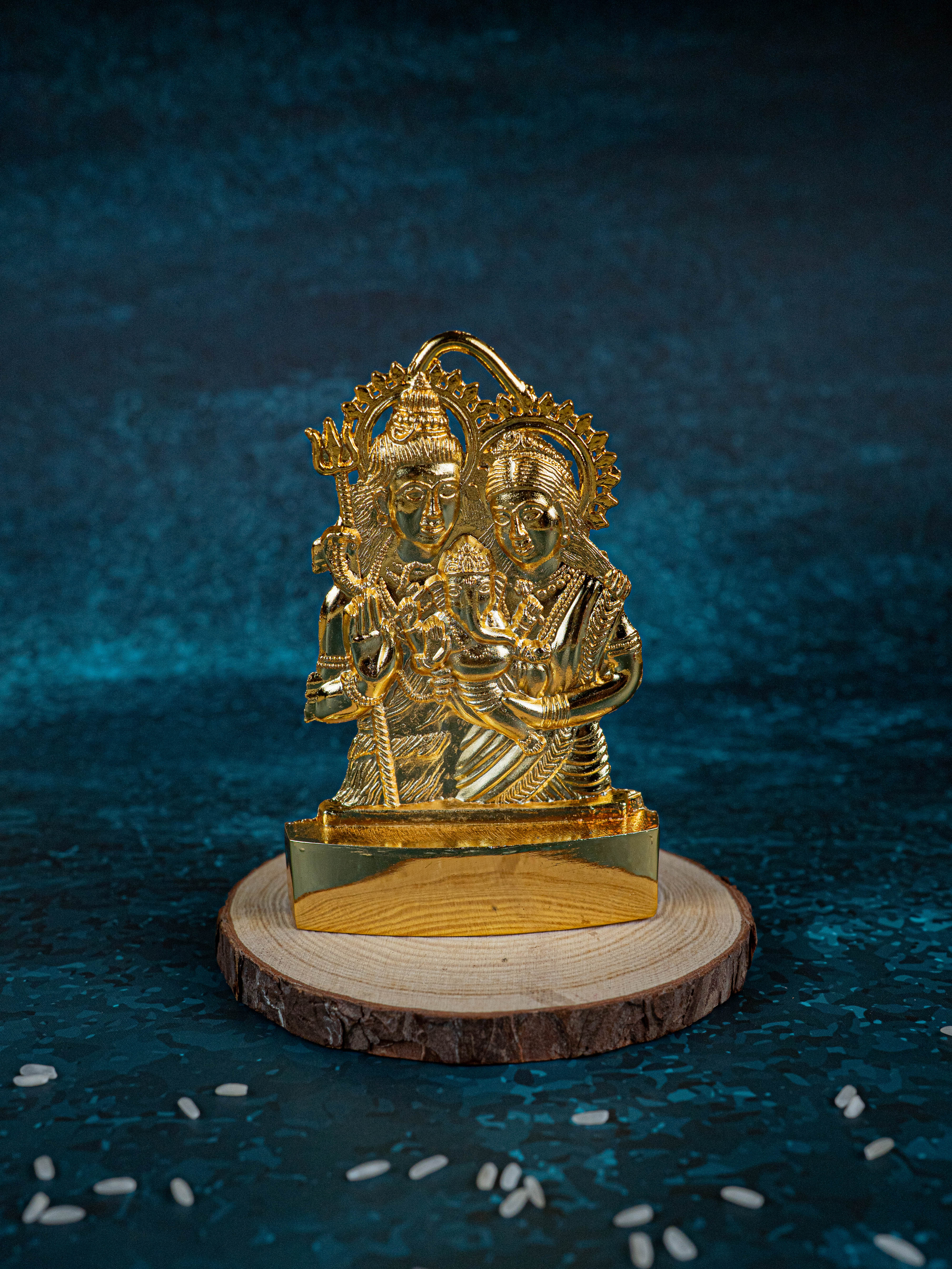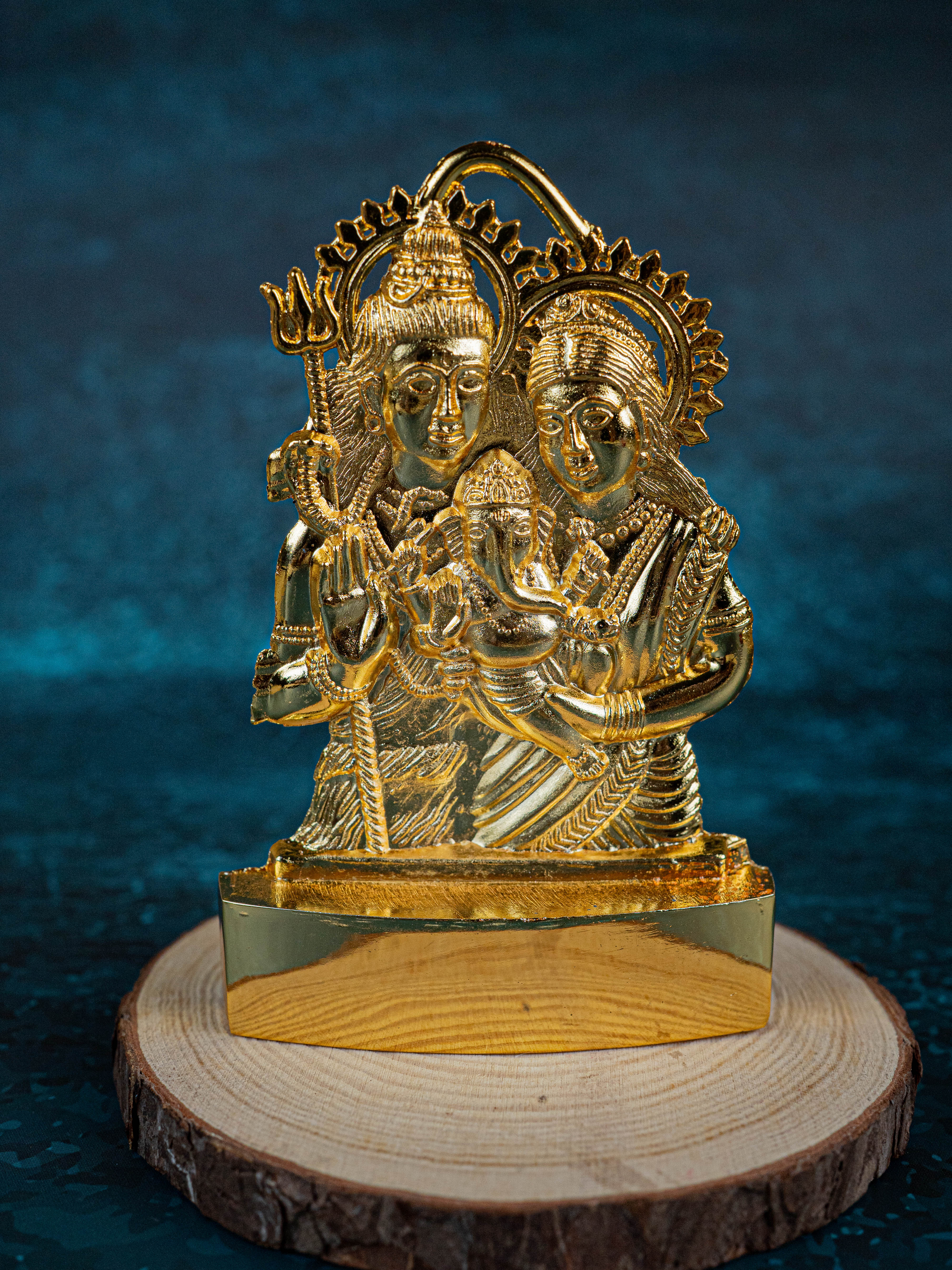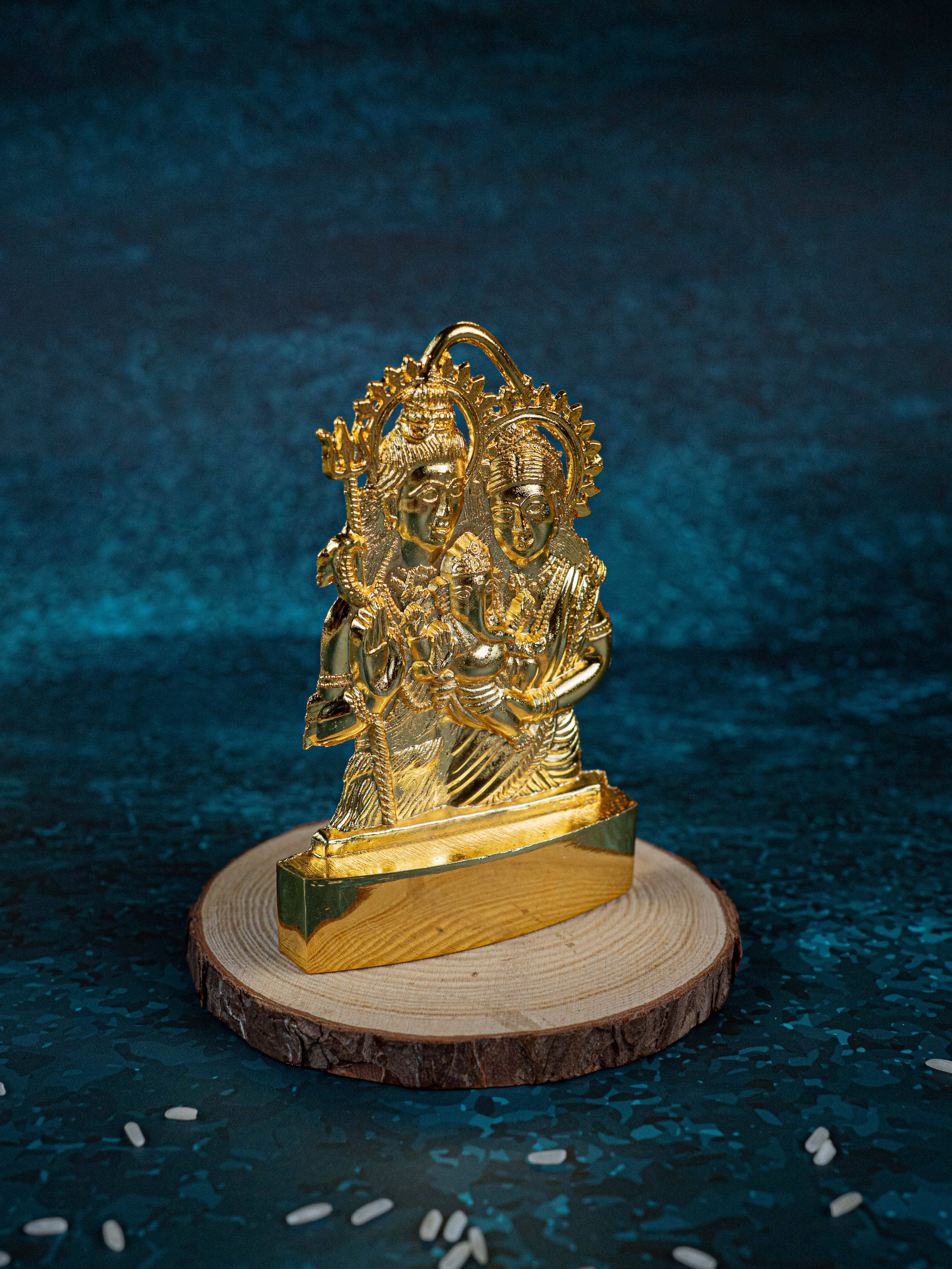 • This is a murthi of Shiv Parivar made of zinc alloy and electroplated with gold finish.