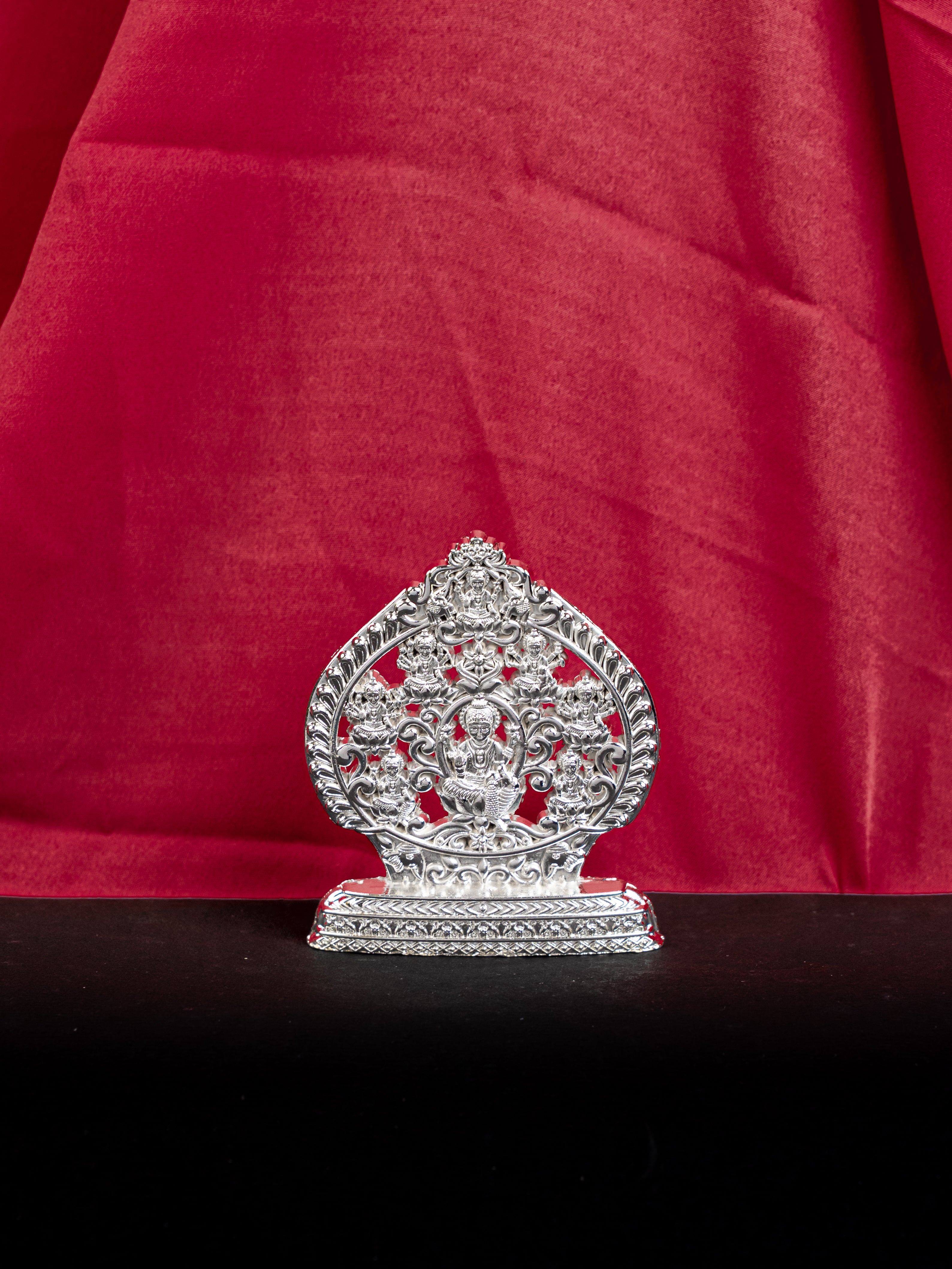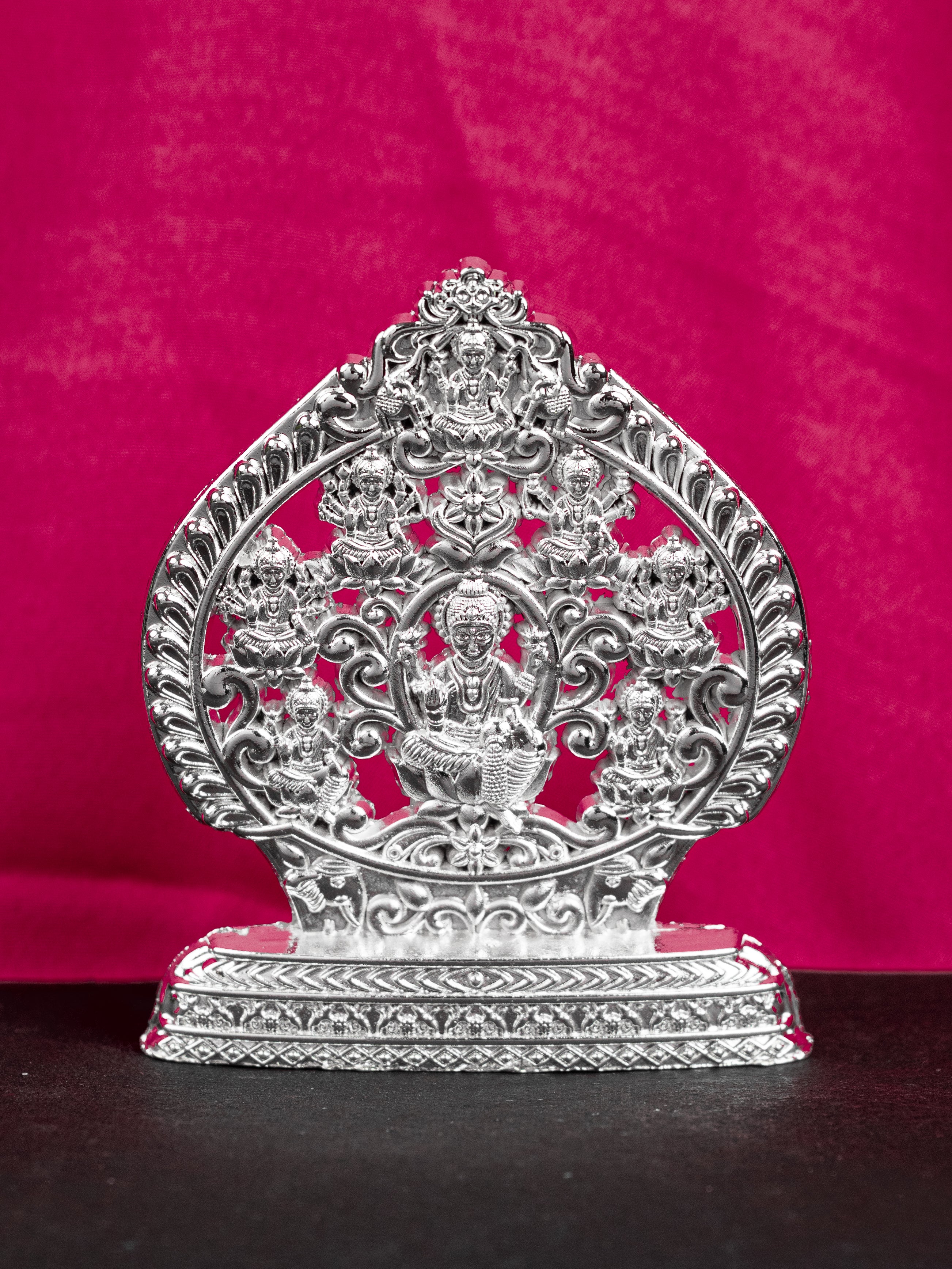 - This intricately detailed Idol features Goddess Ashtalakshmi seated at the center in a Blessing Posture, Surrounded by her Eight Manifestations, each representing Different Facets of Wealth.