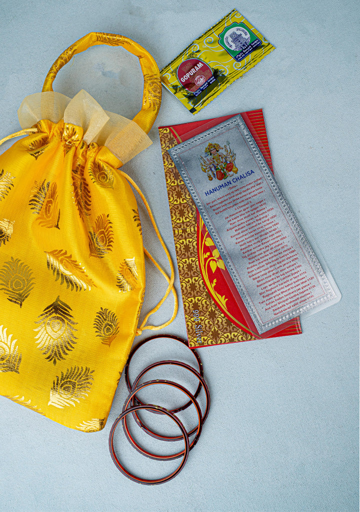 Navaratri Combo - Potli Bag with Hanuman Chalisa Shloka Card & Manjal Kumkum Bangle - WGC0090