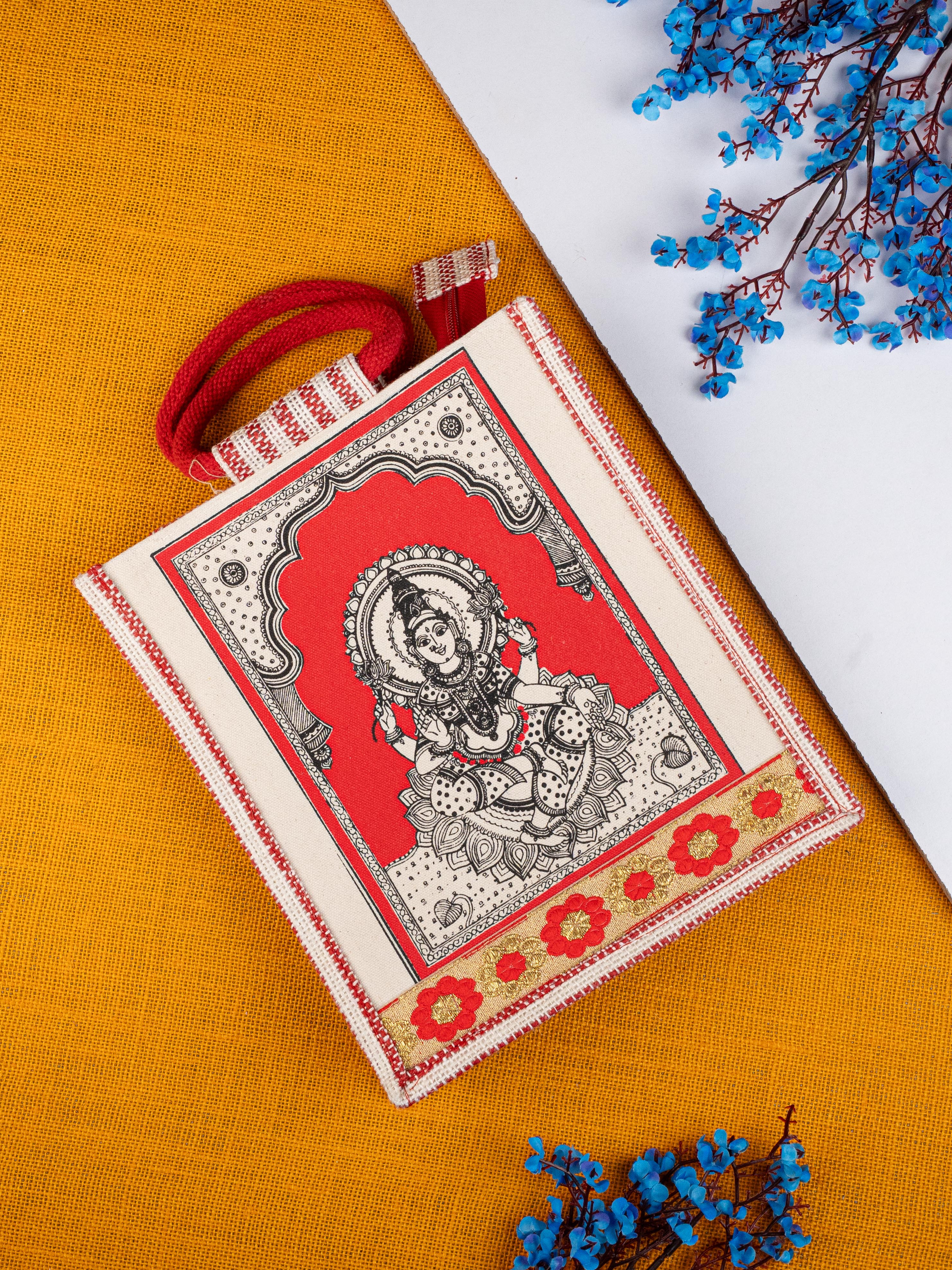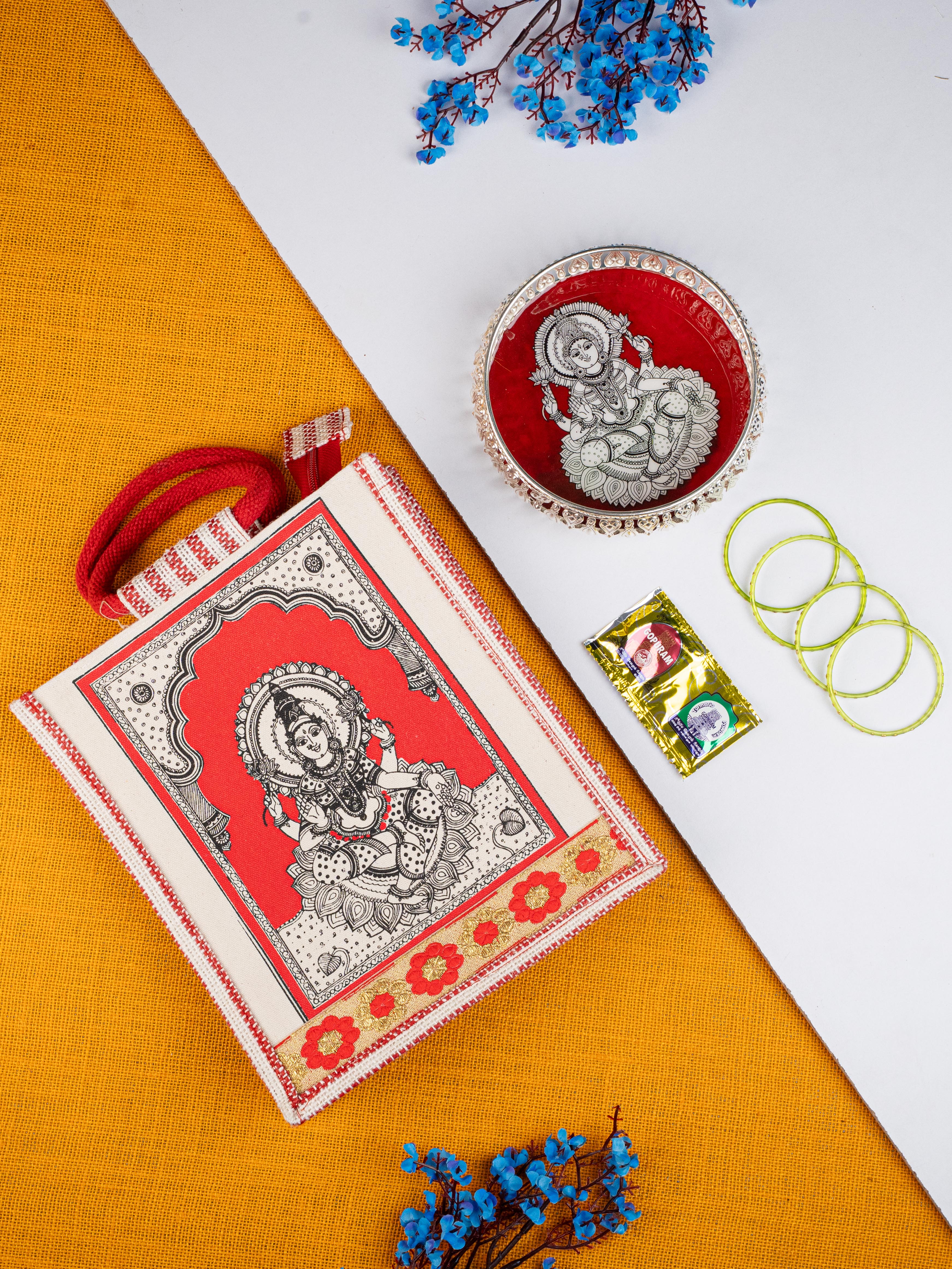 Navratri Combo: Jute Bag with Madhubani German Silver Tray & Haldi Kumkum Bangles - WGC0077