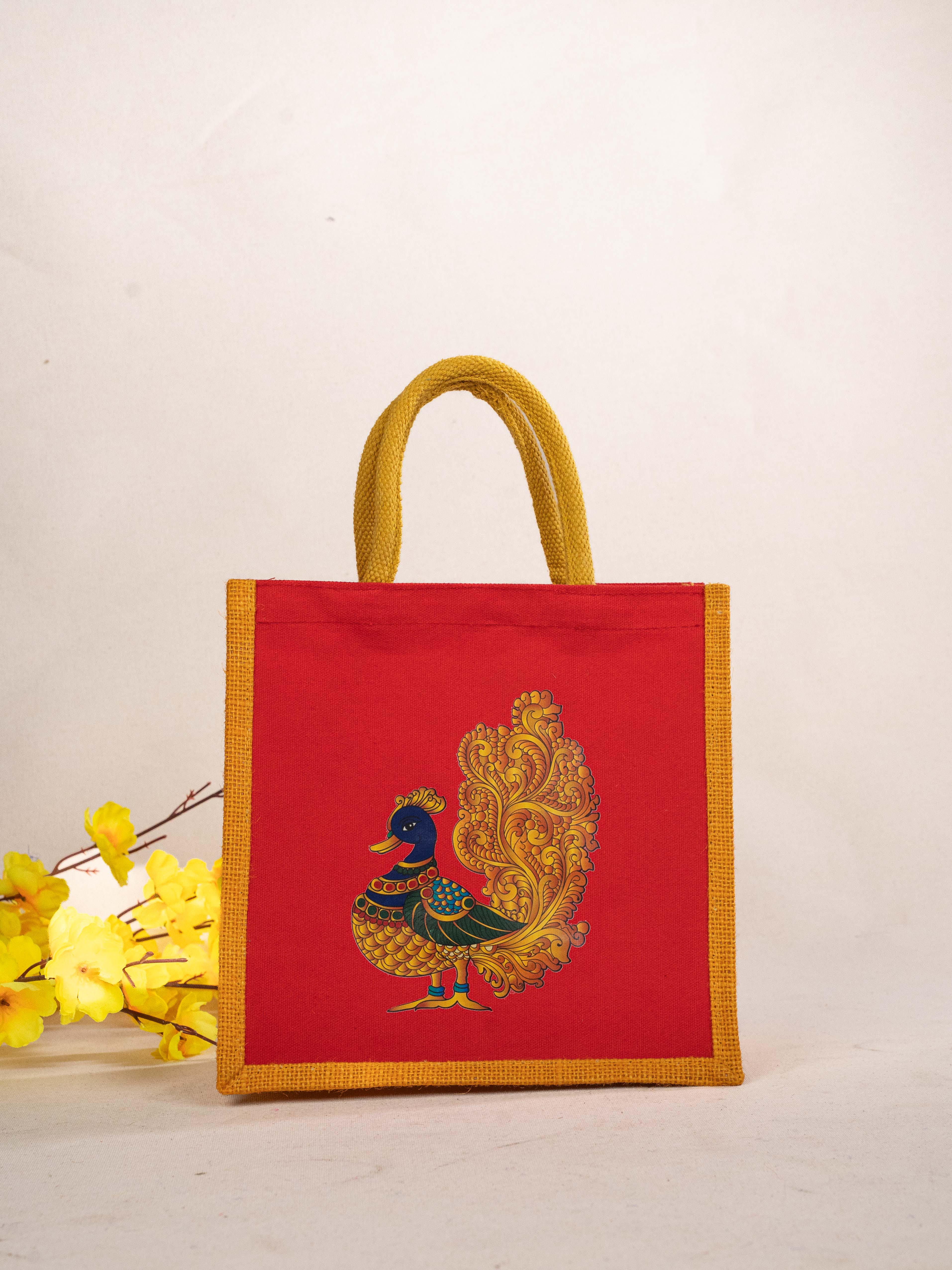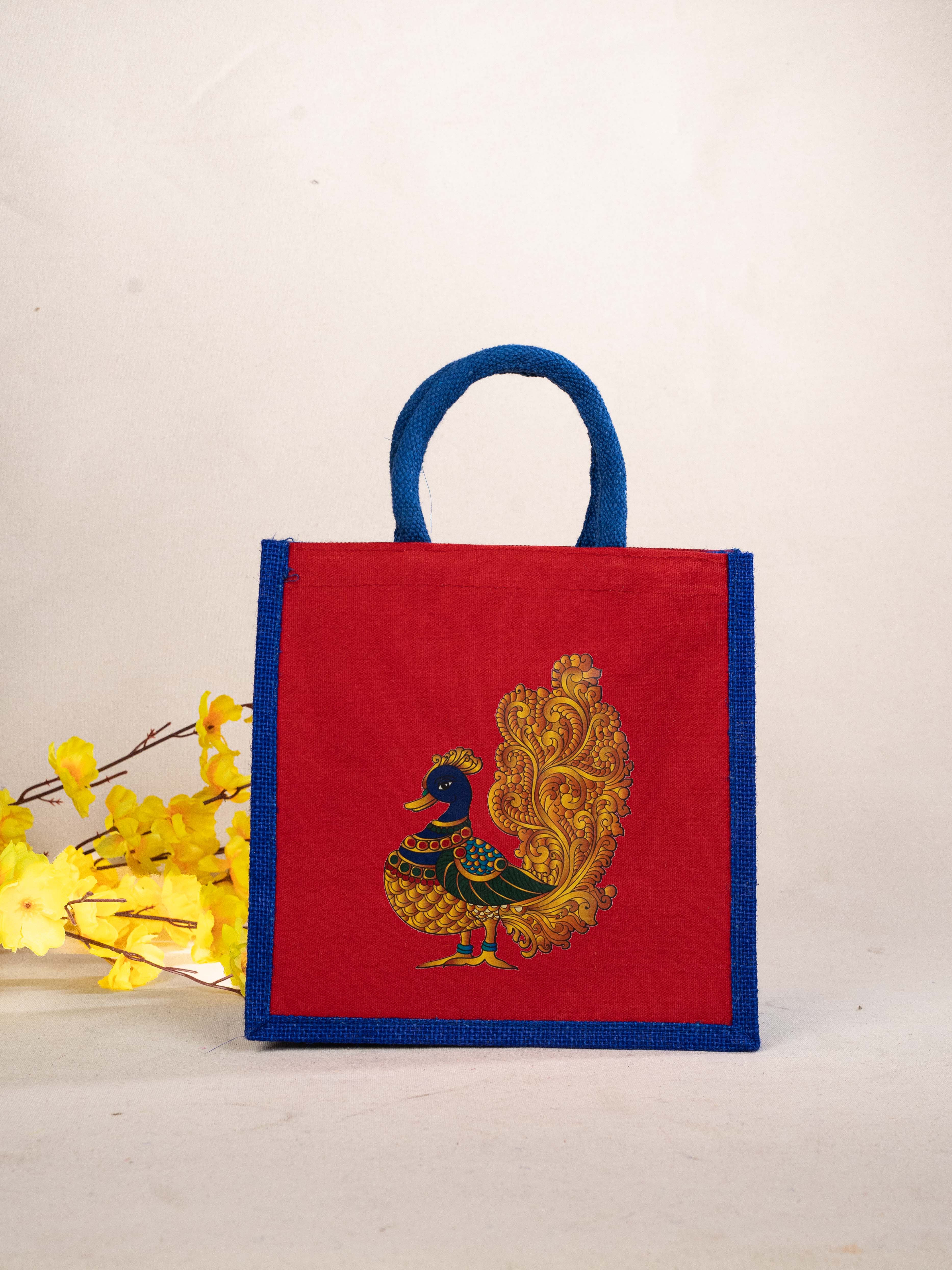 Add a Touch of Cultural Elegance to your Packaging & Decor with Our Premium Non-Woven Fabric Featuring the Intricate Annapakshi Design.