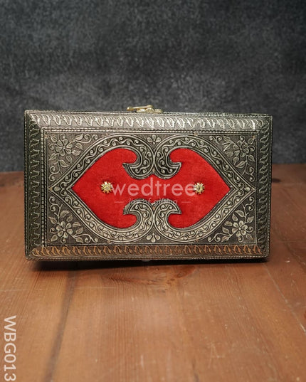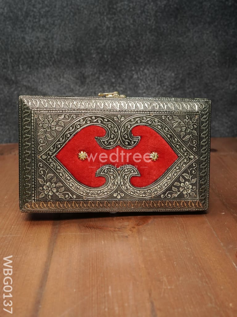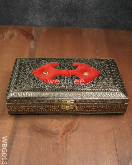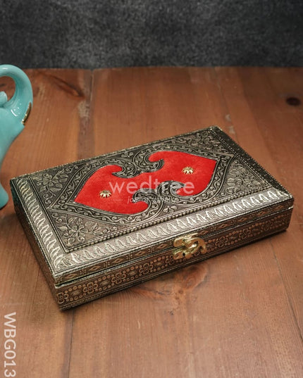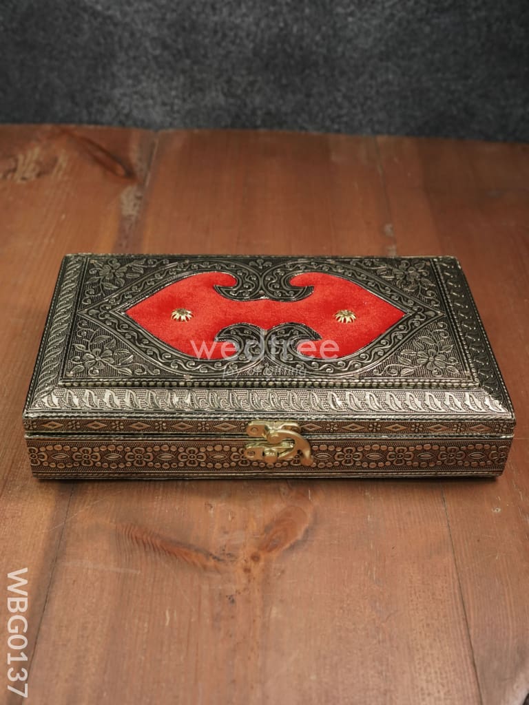 Oxidised Red Velvet Dry Fruit Box with Floral Design - 10X6Inches - WBG0137