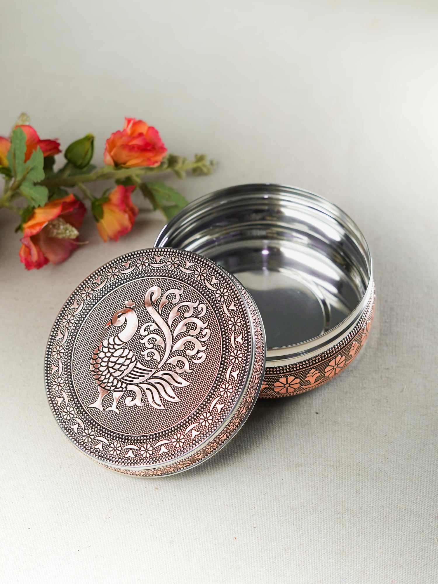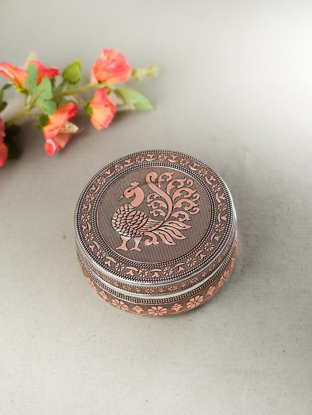 Oxidized Annapakshi Poori Box - Copper - WBG1591-3