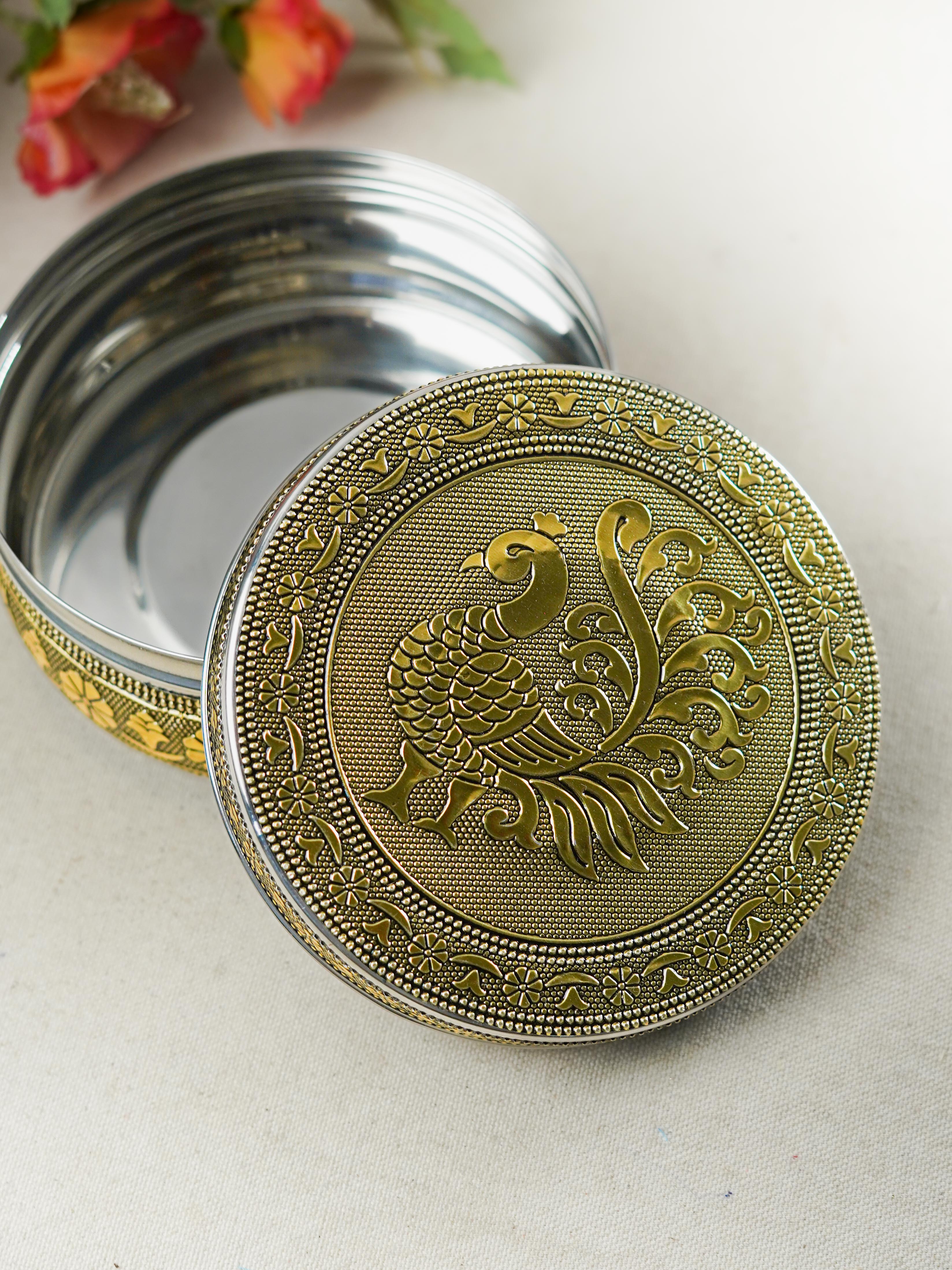 - Oxidized Annapakshi Poori Box is a Stunning Piece of Traditional Indian Craftsmanship, Designed to Store and Serve Other Delicacies in an Elegant Manner.