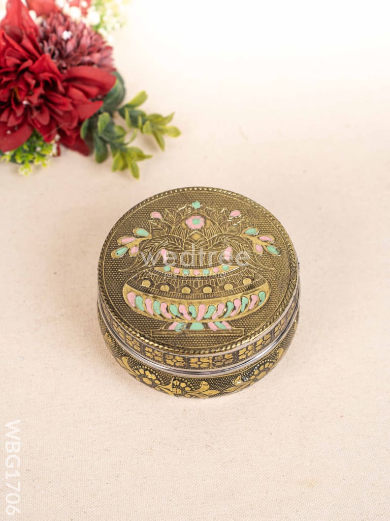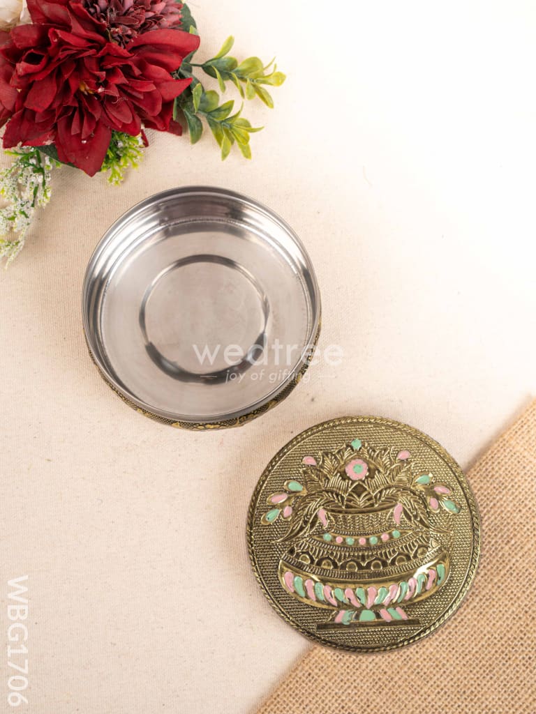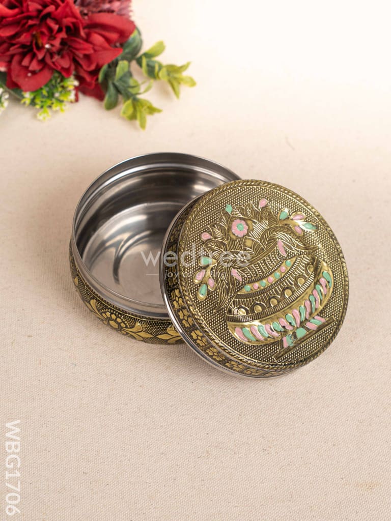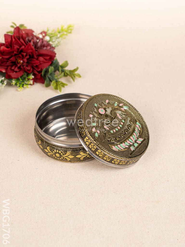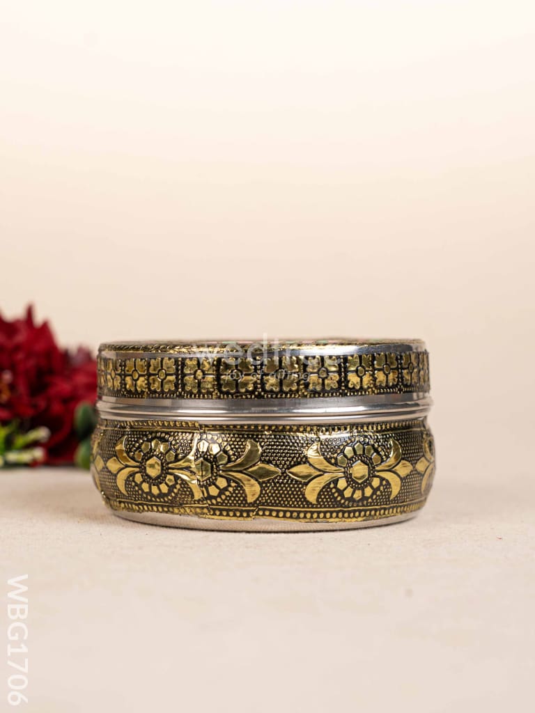 - Add a Touch of Vintage Charm to your Dining or Gifting Experience with this Beautifully Crafted 4-inch Oxidized Poori Box.
