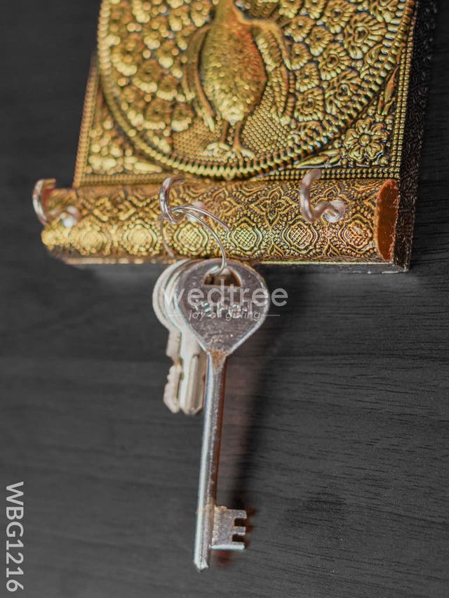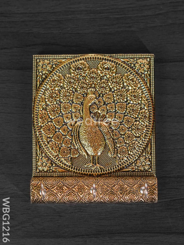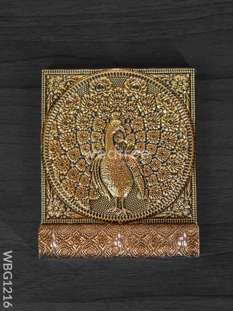 - Meticulously crafted from wood and covered in an elegant and eye-catching oxidised foil sheet, this key hanger features a sophisticated peacock design in a beautiful gold finish.