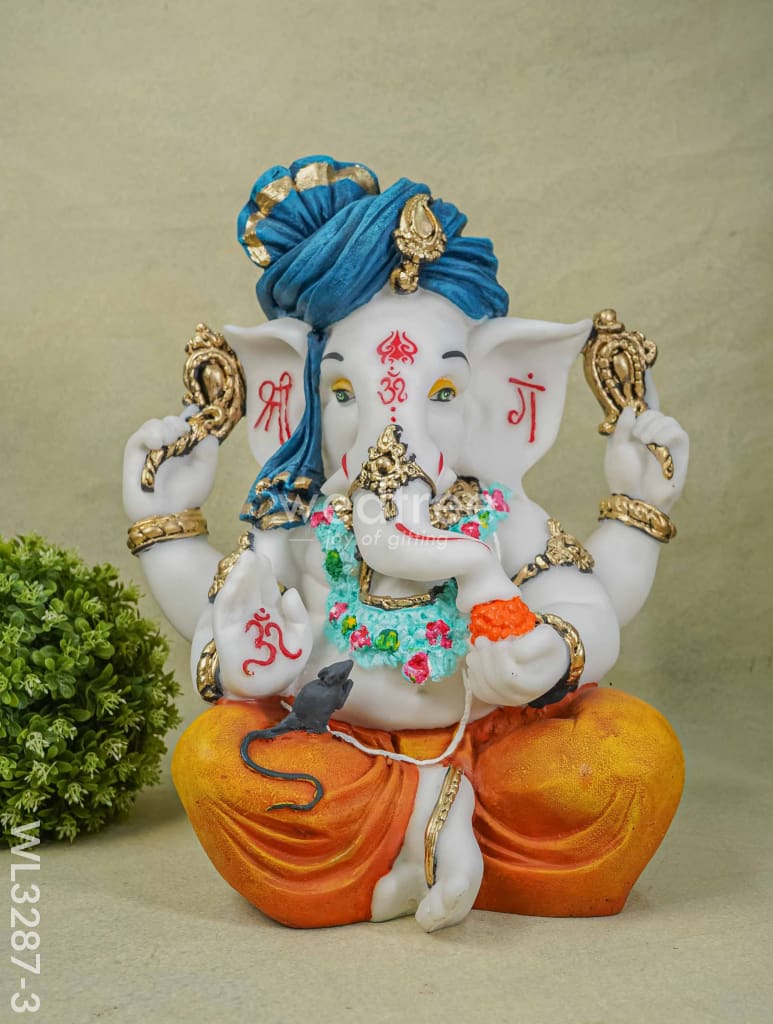 - Crafted from durable Polyresin, this colorful idol of Ganesha is sure to make a cherished gift.