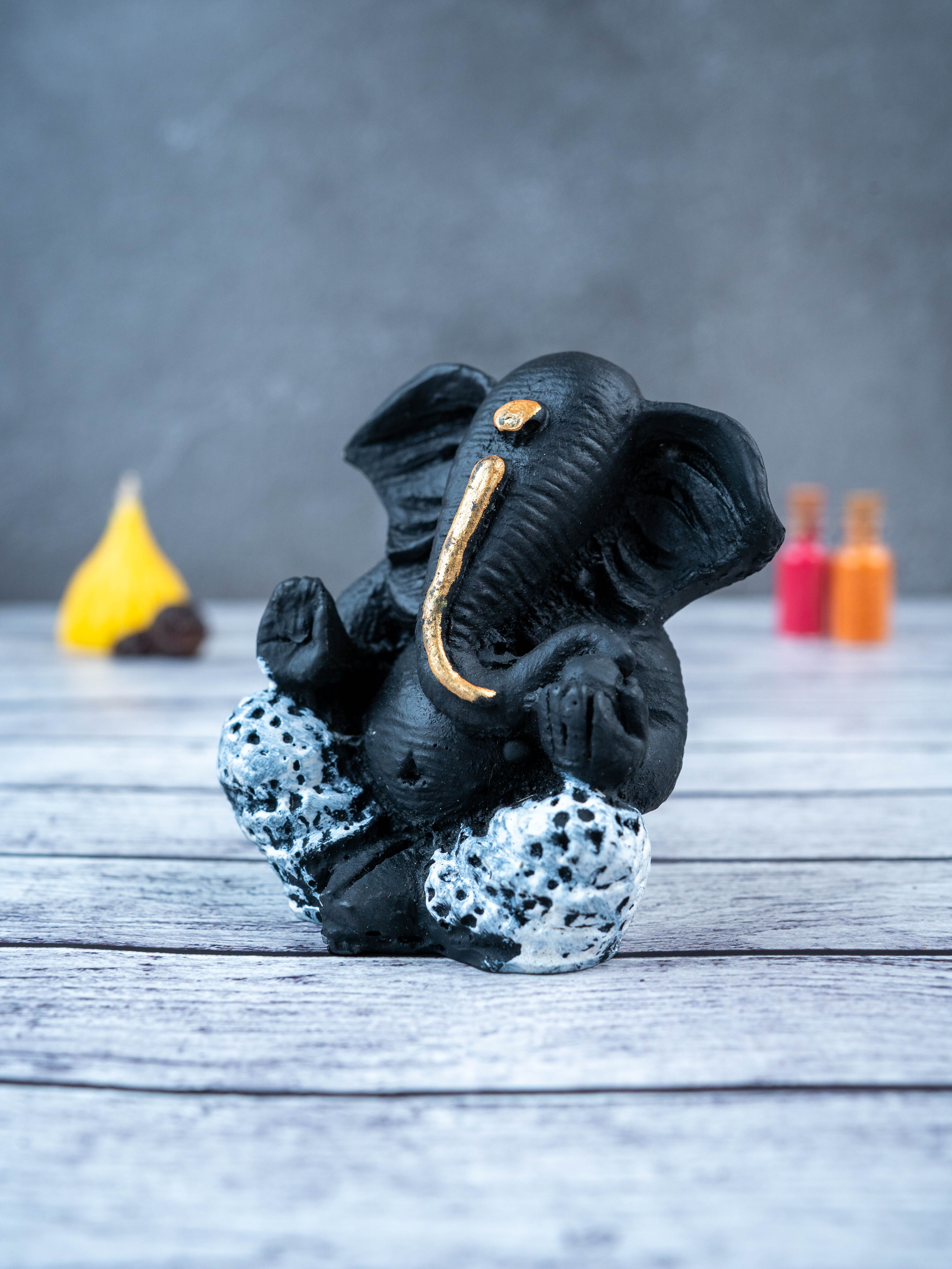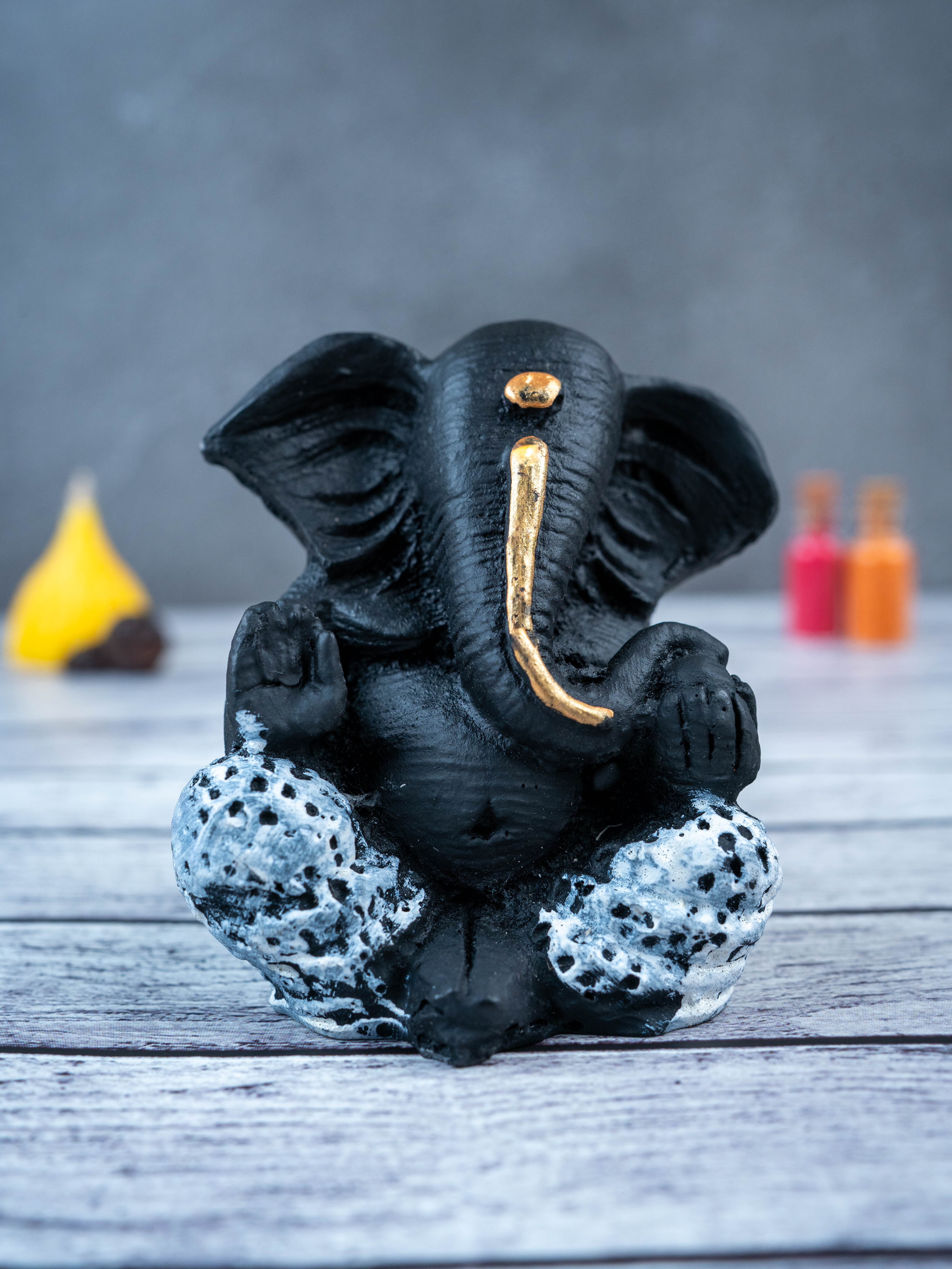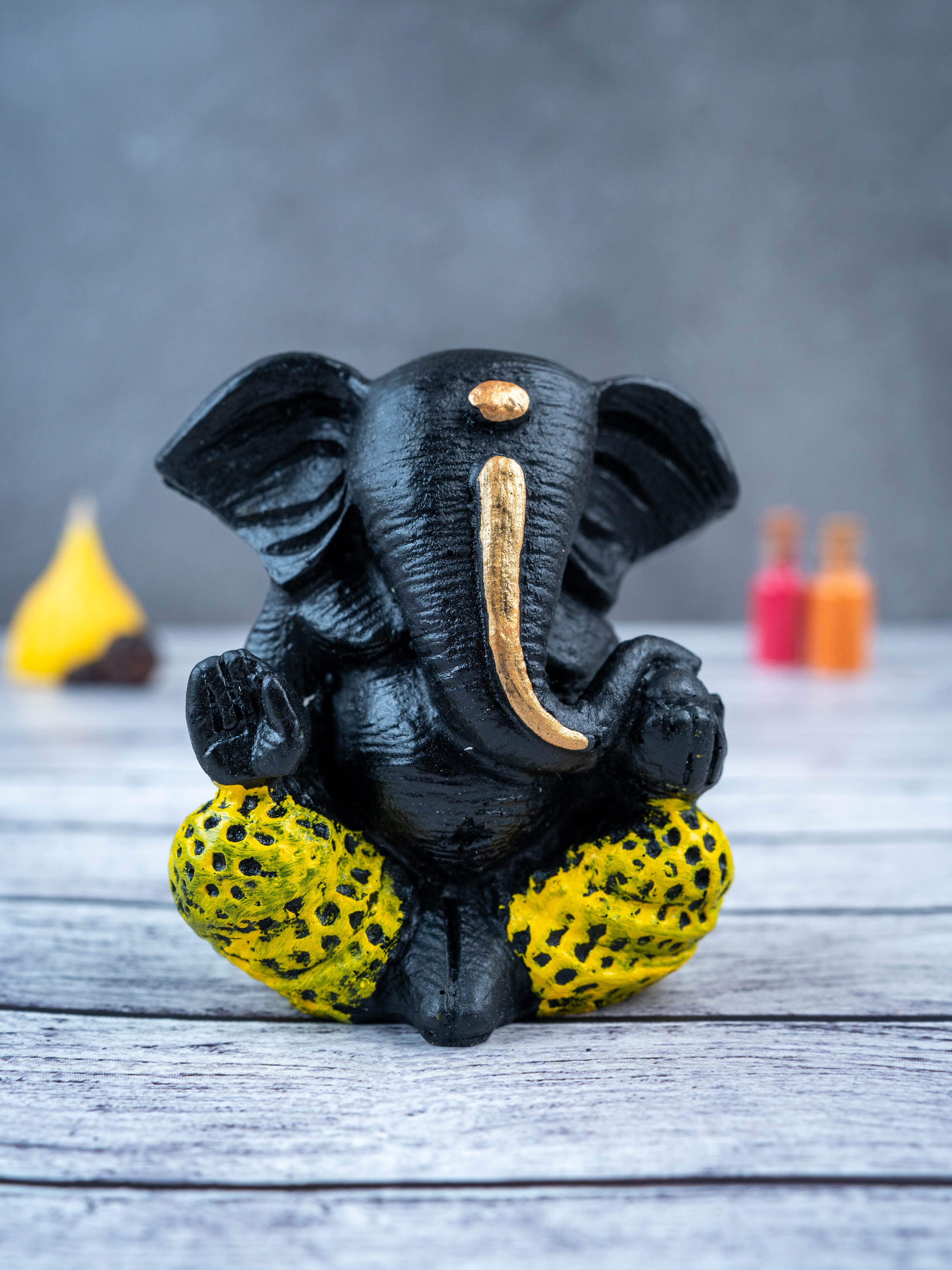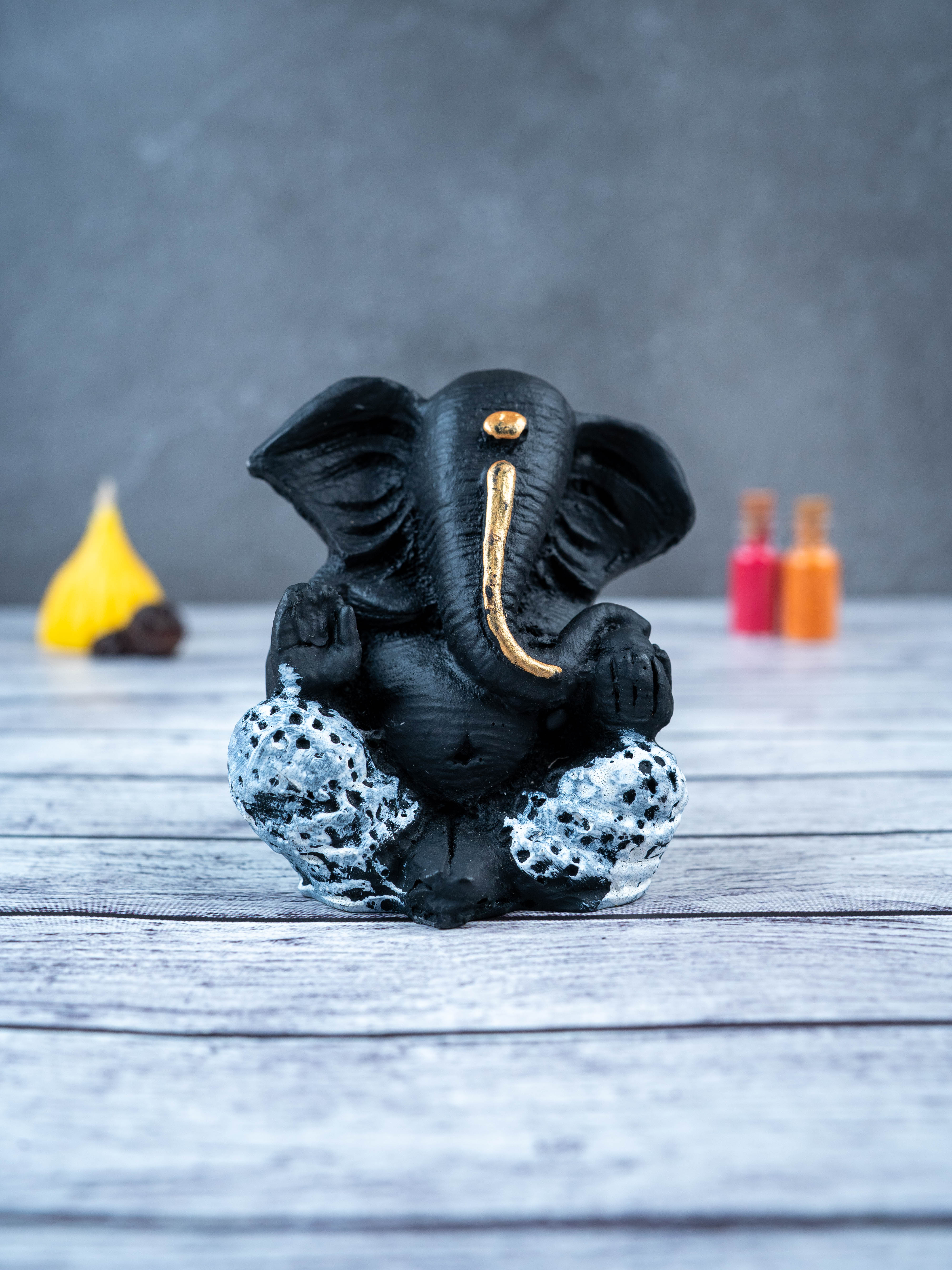 - This beautiful and intricately designed Polyresin Ganesha Idol, in a sleek black color, is the perfect addition to any home.