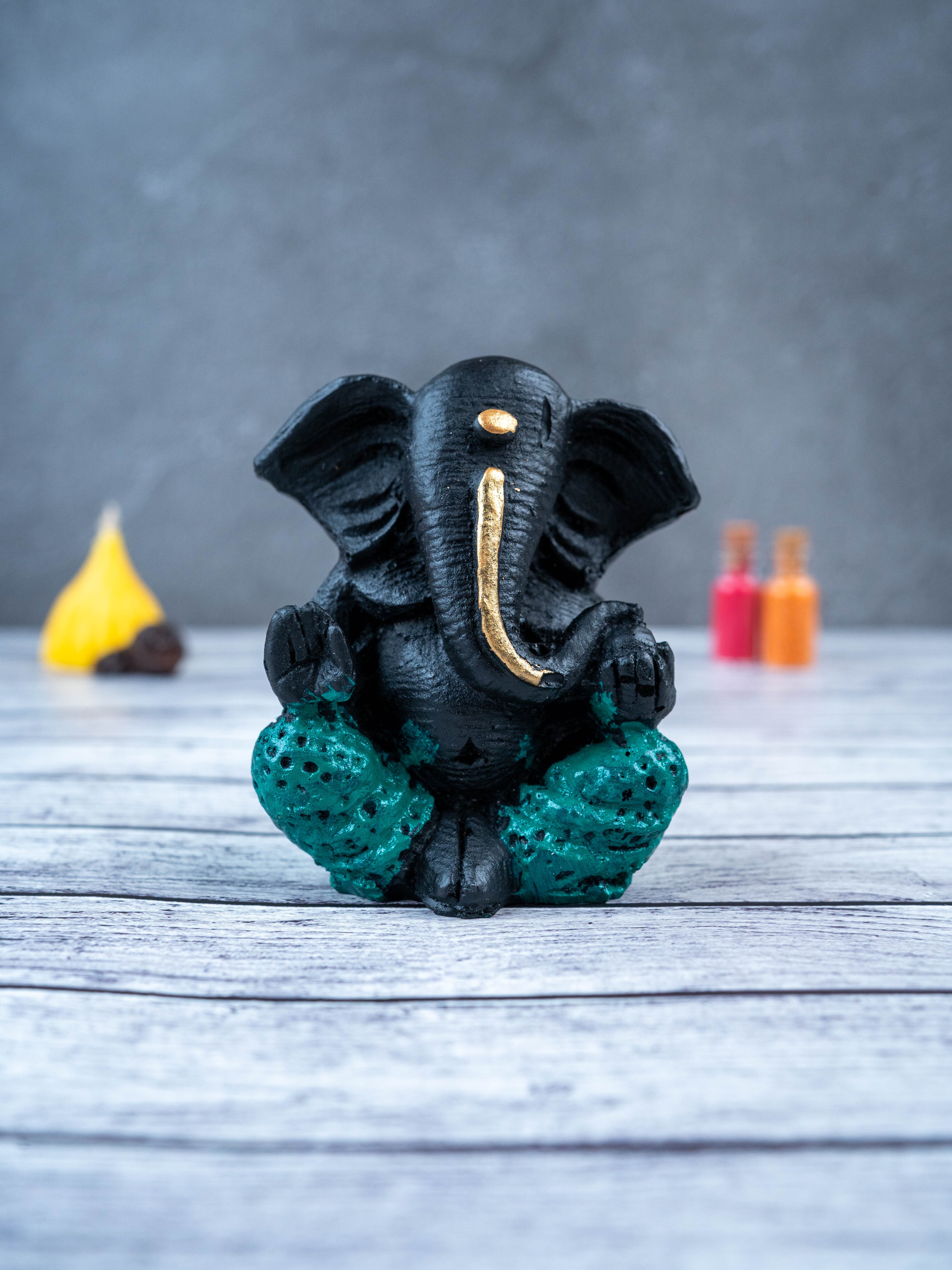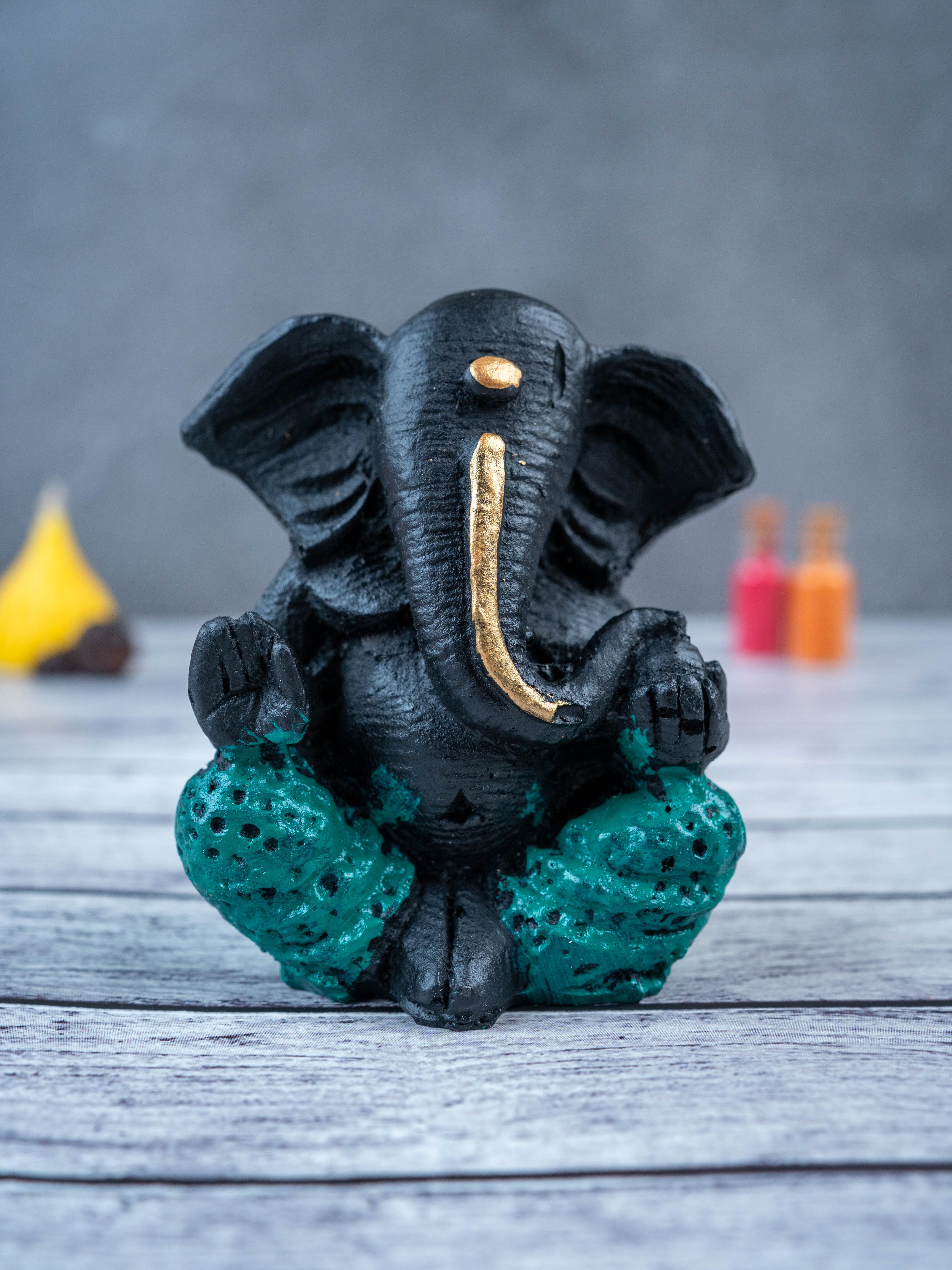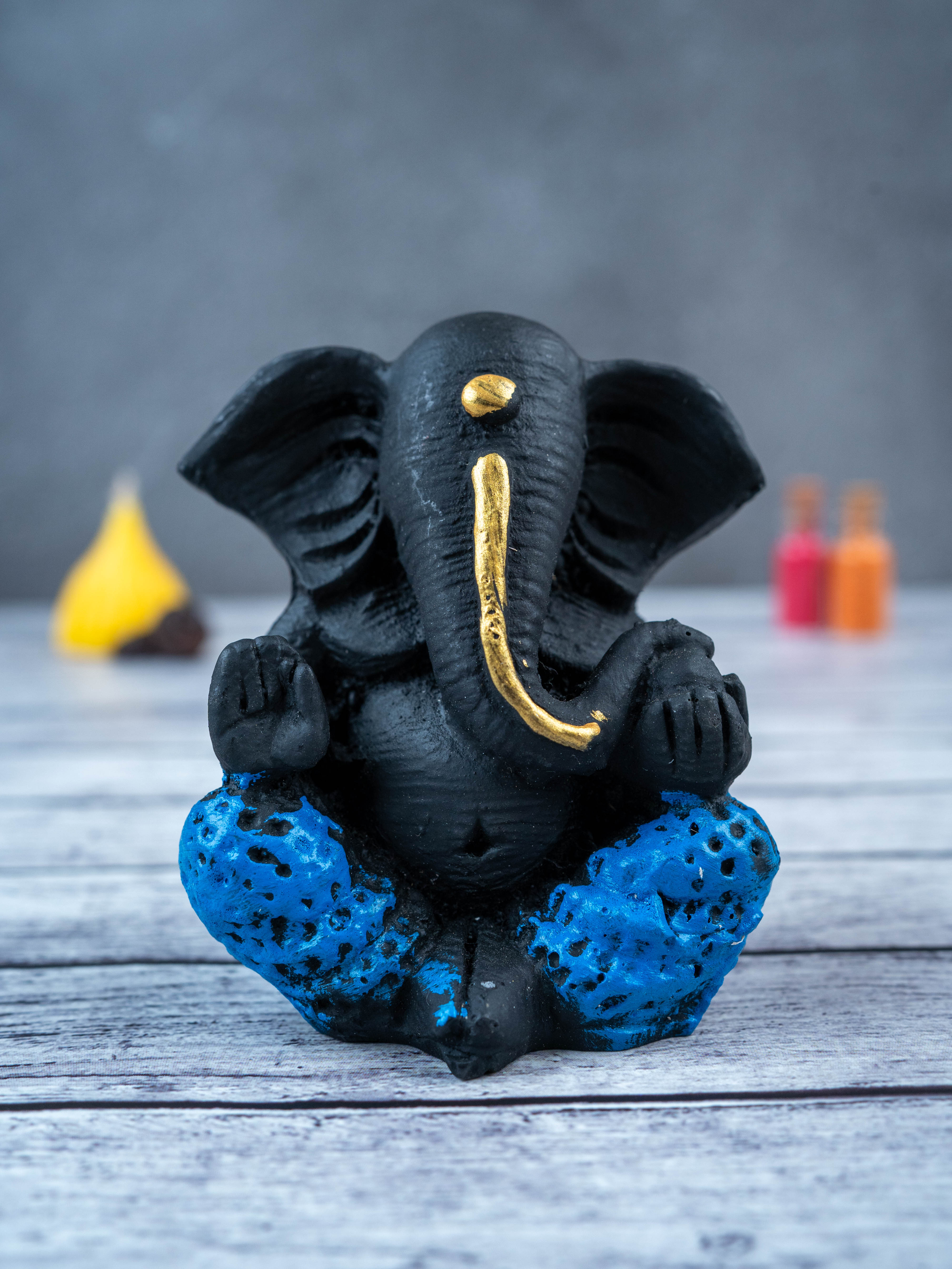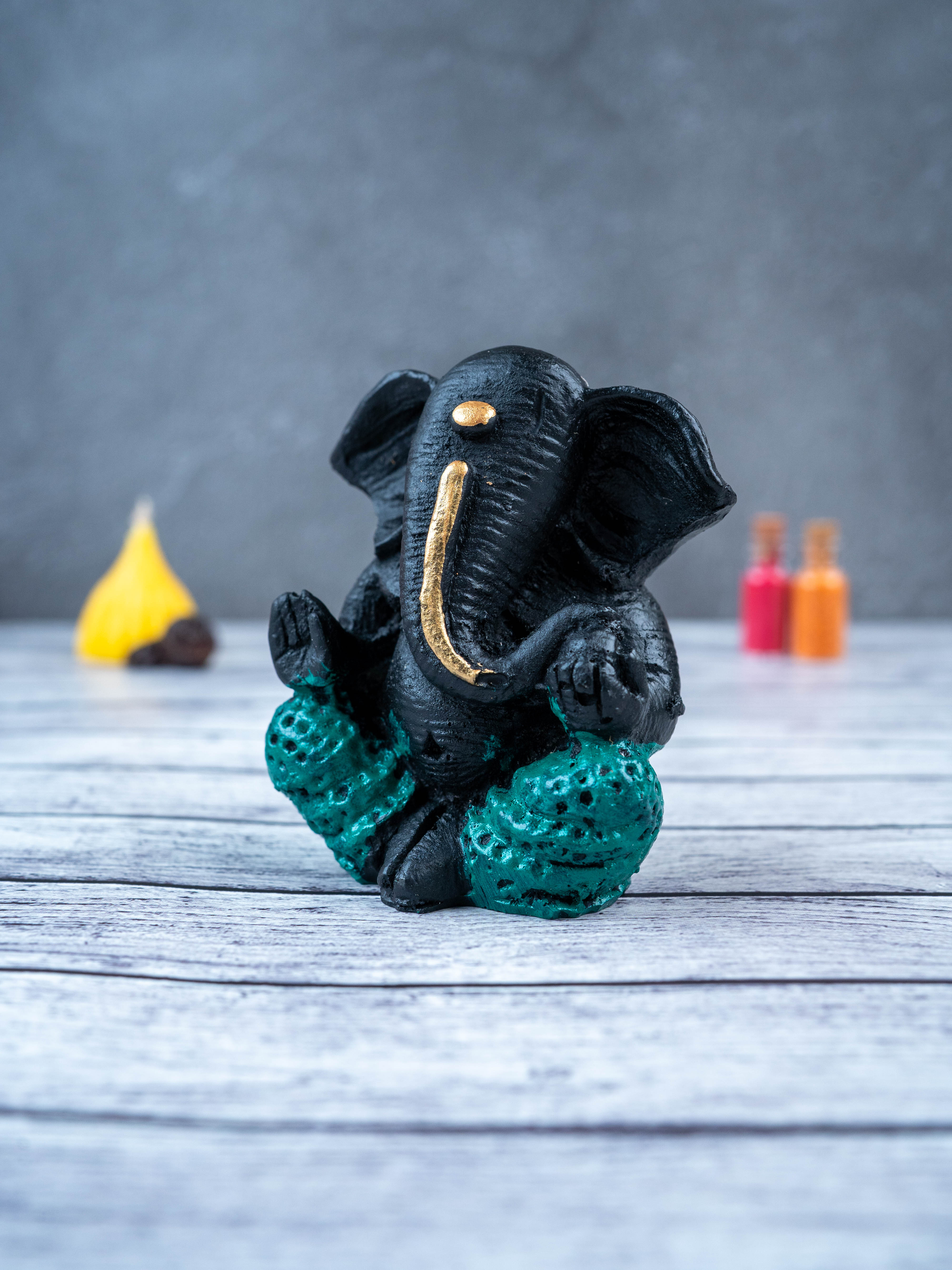 - This beautiful and intricately designed Polyresin Ganesha Idol, in a sleek black color, is the perfect addition to any home.