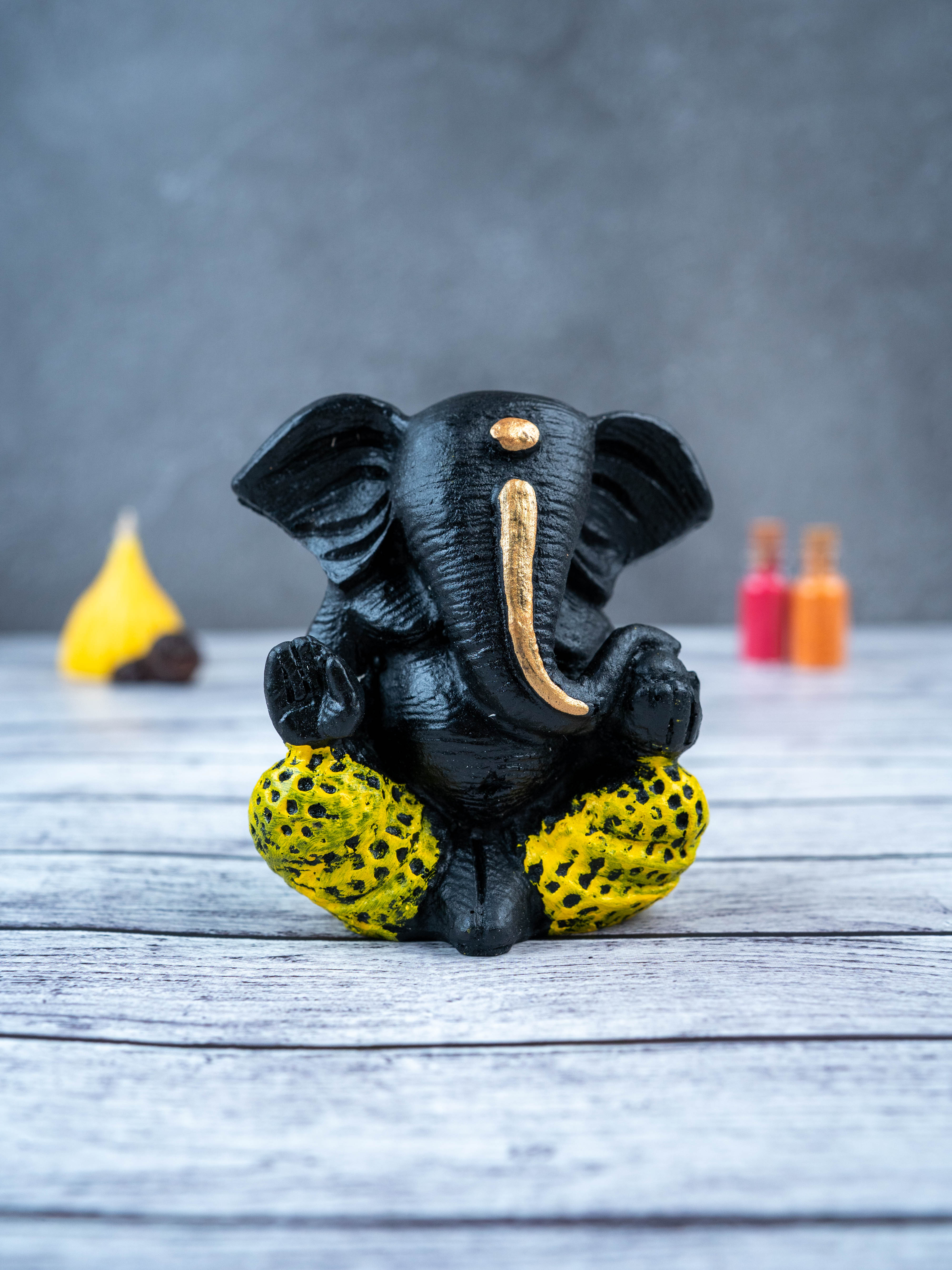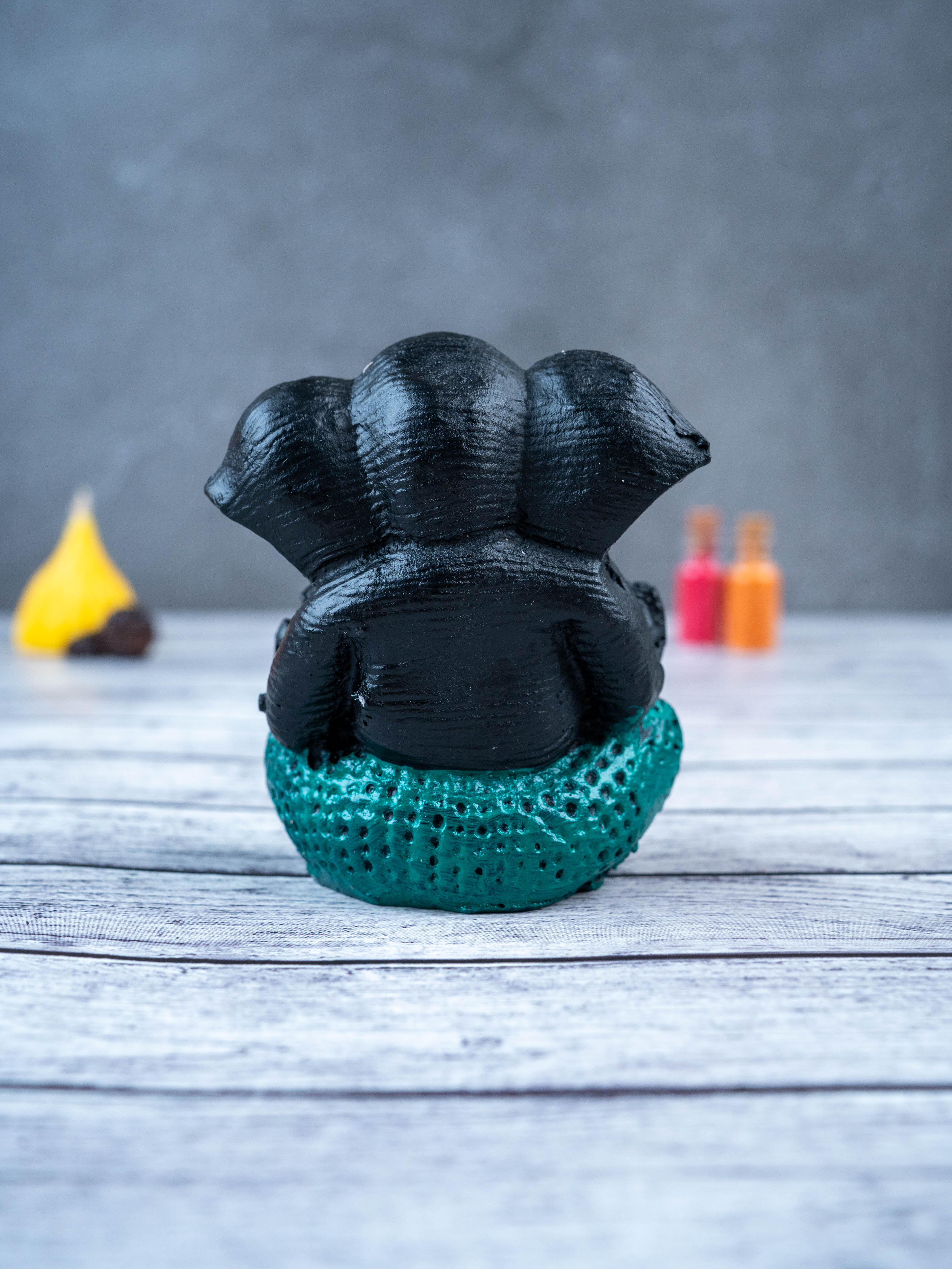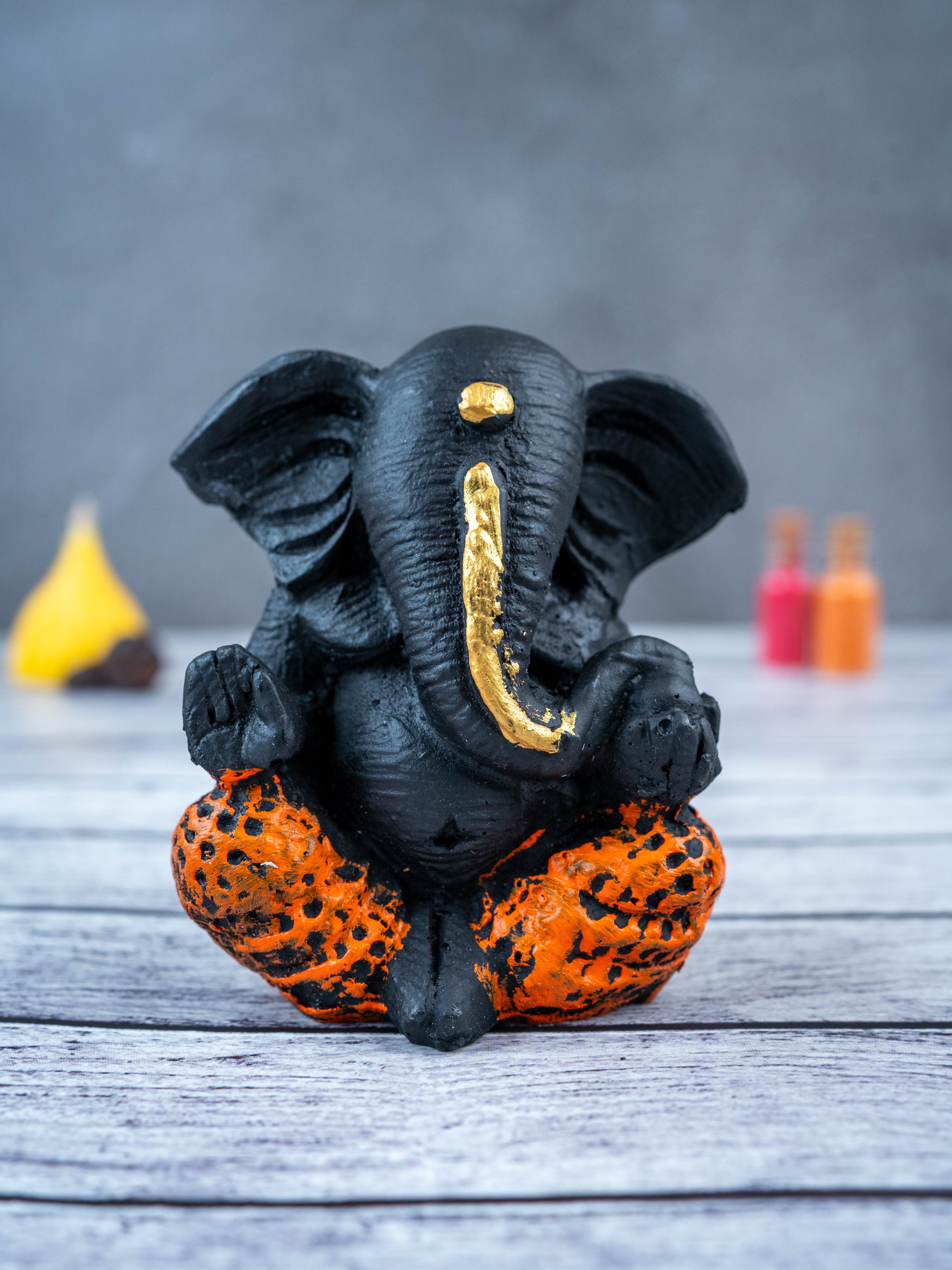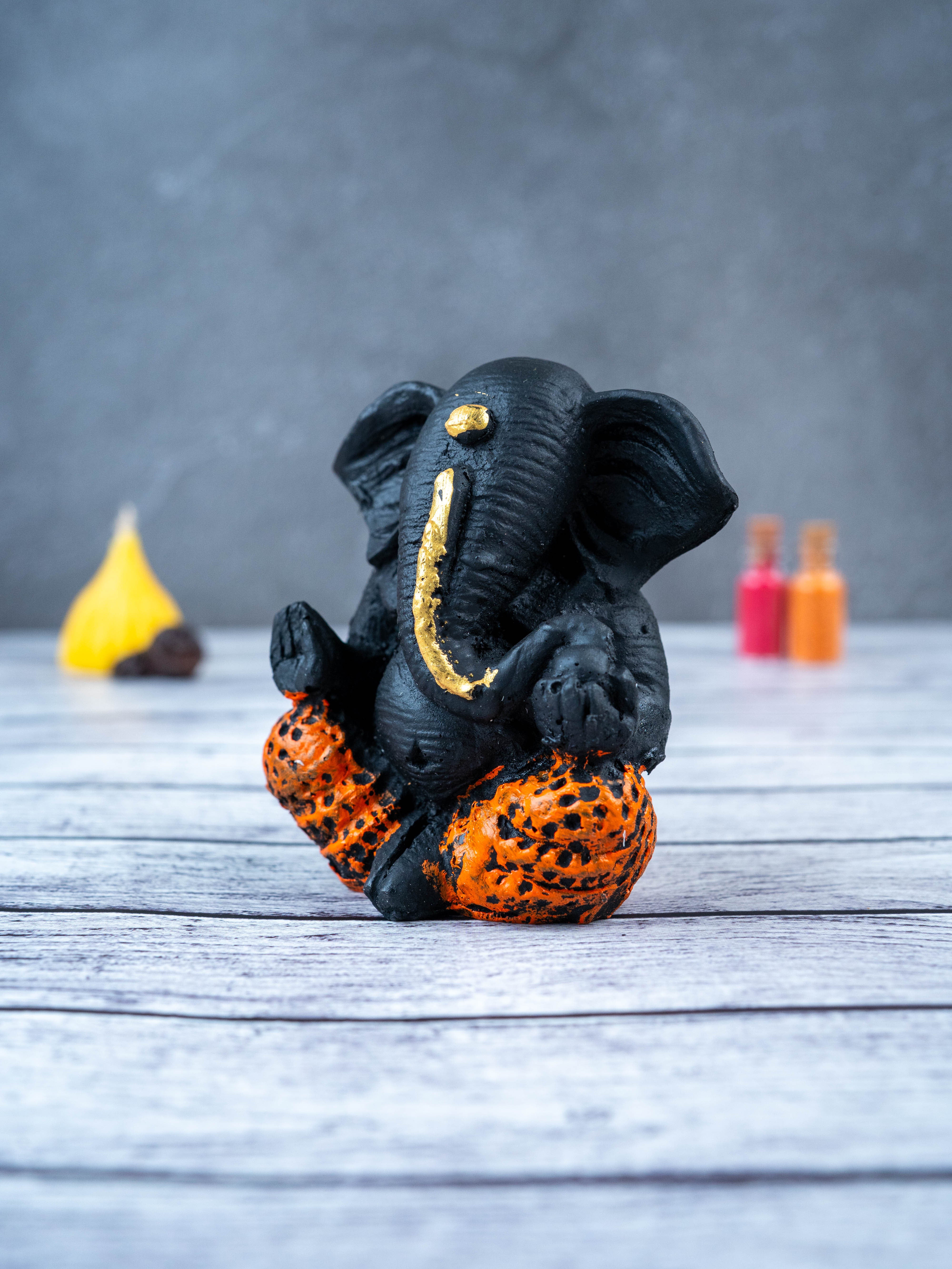 - This beautiful and intricately designed Polyresin Ganesha Idol, in a sleek black color, is the perfect addition to any home.