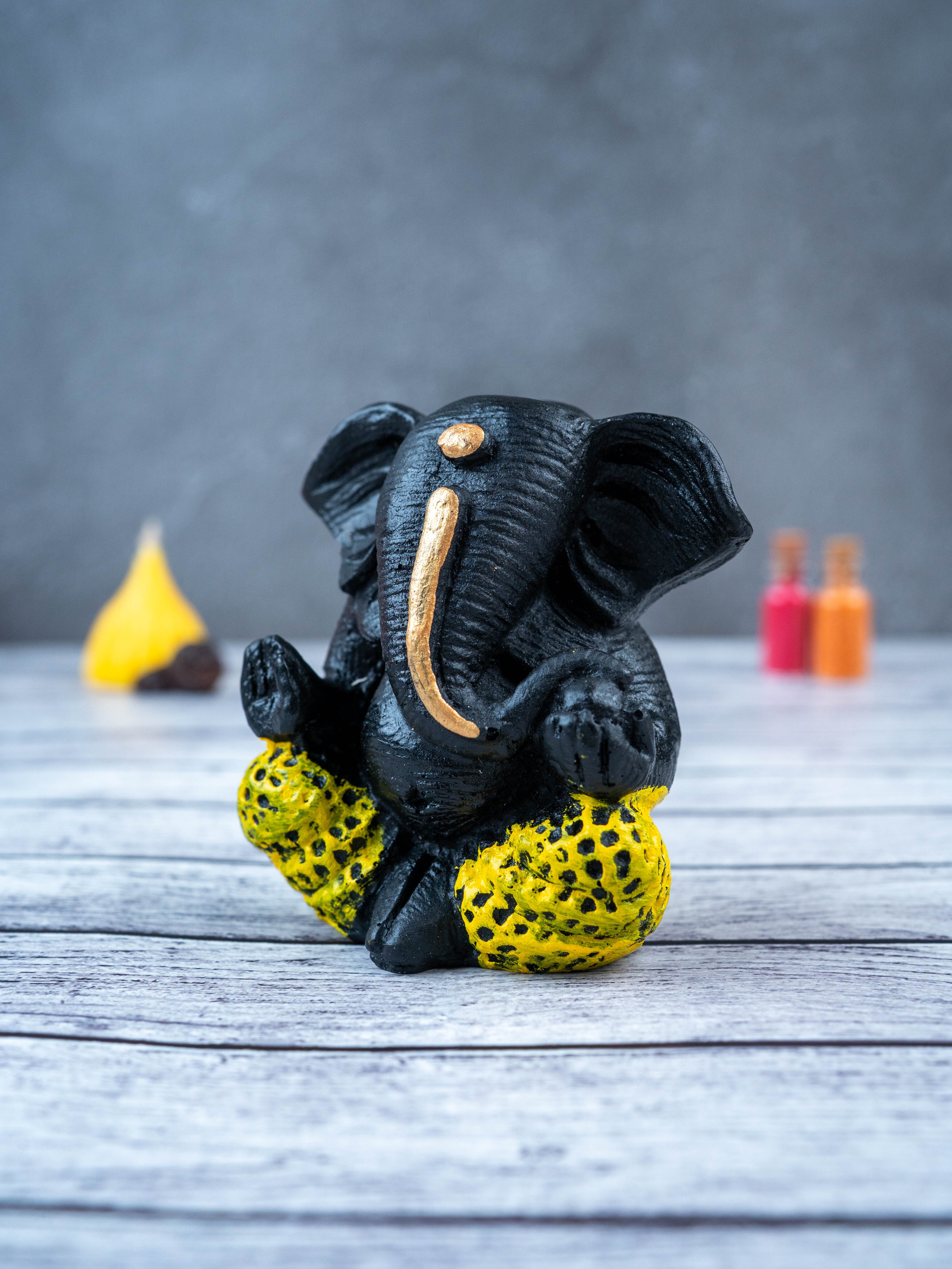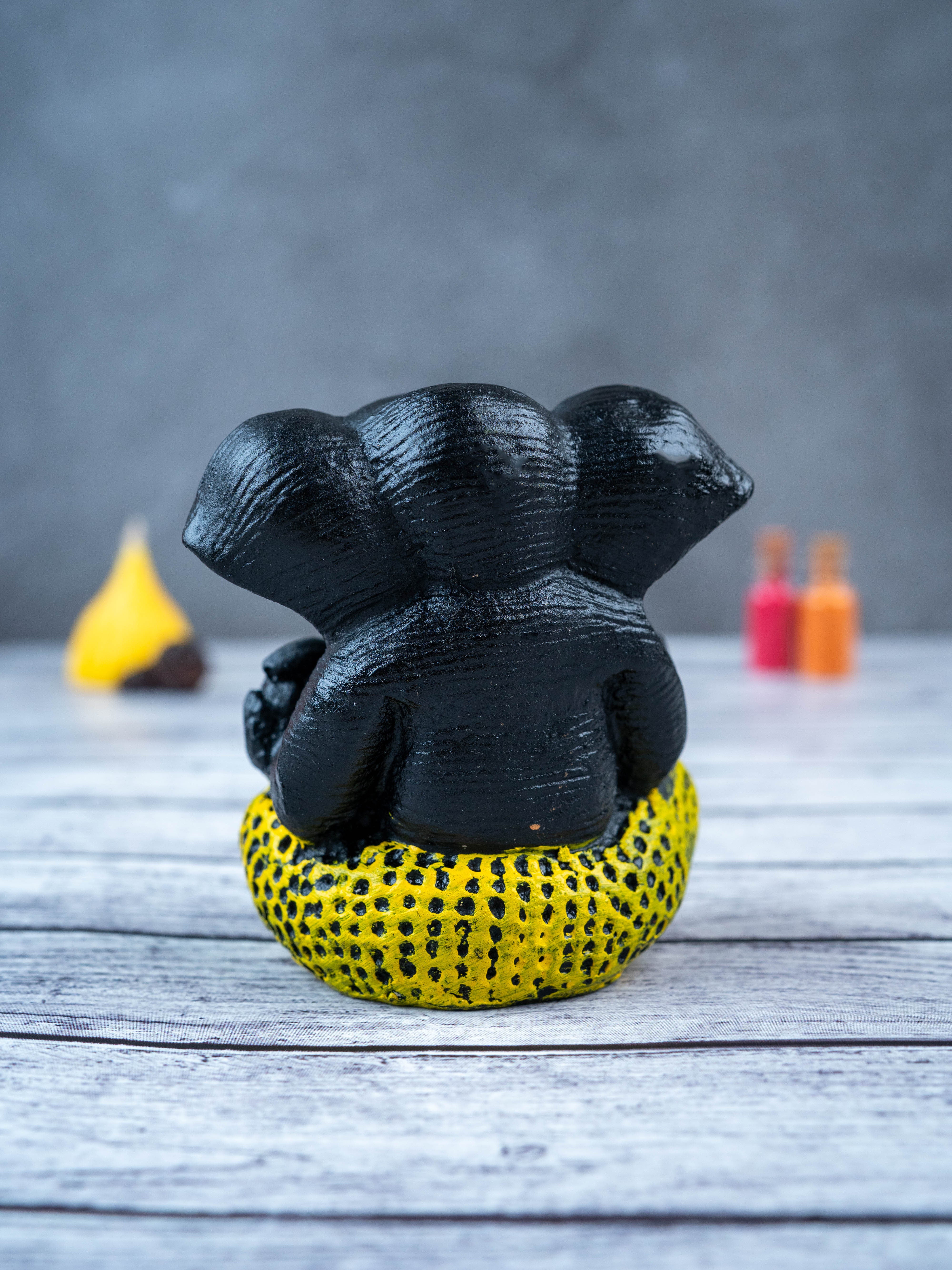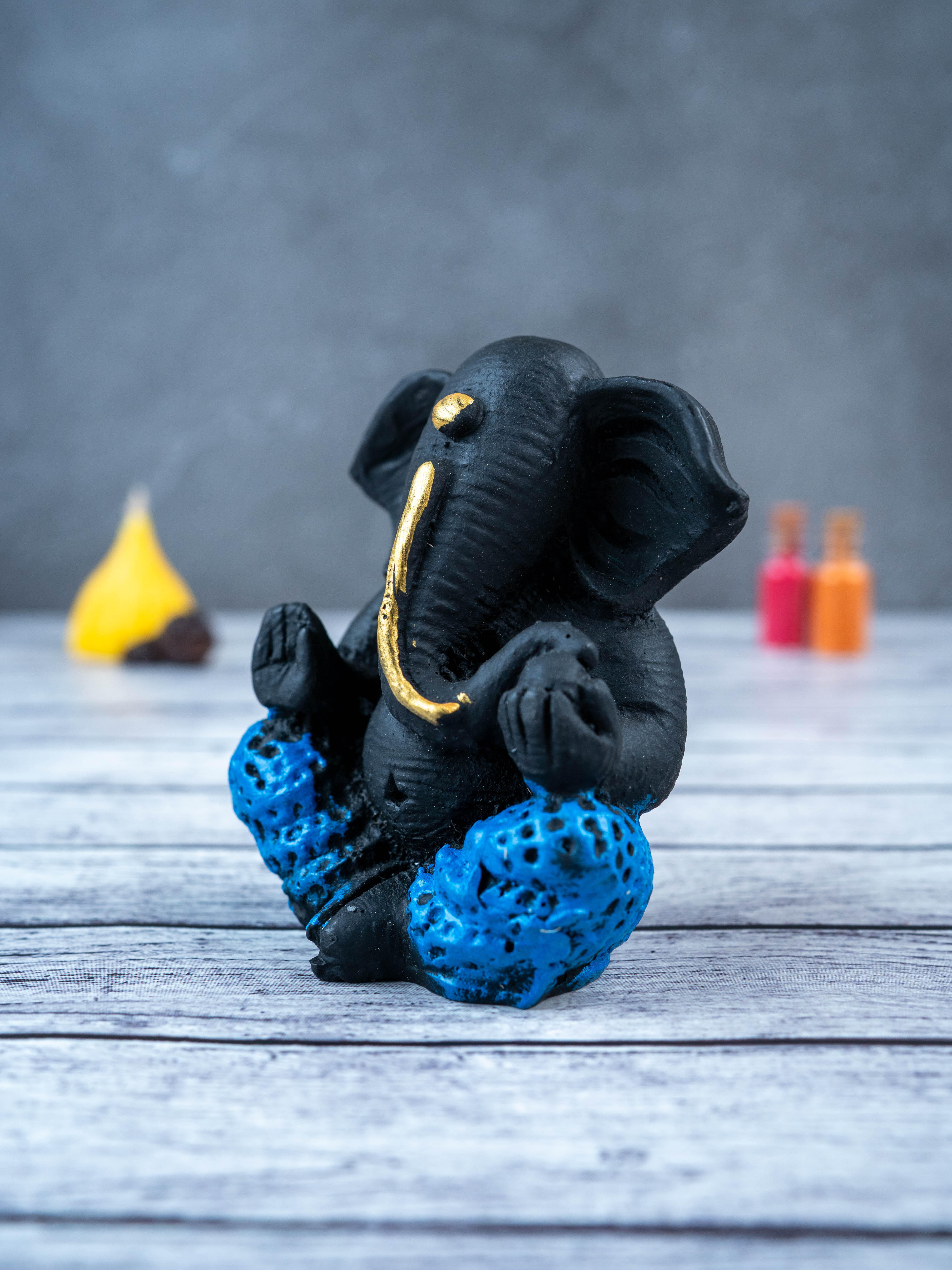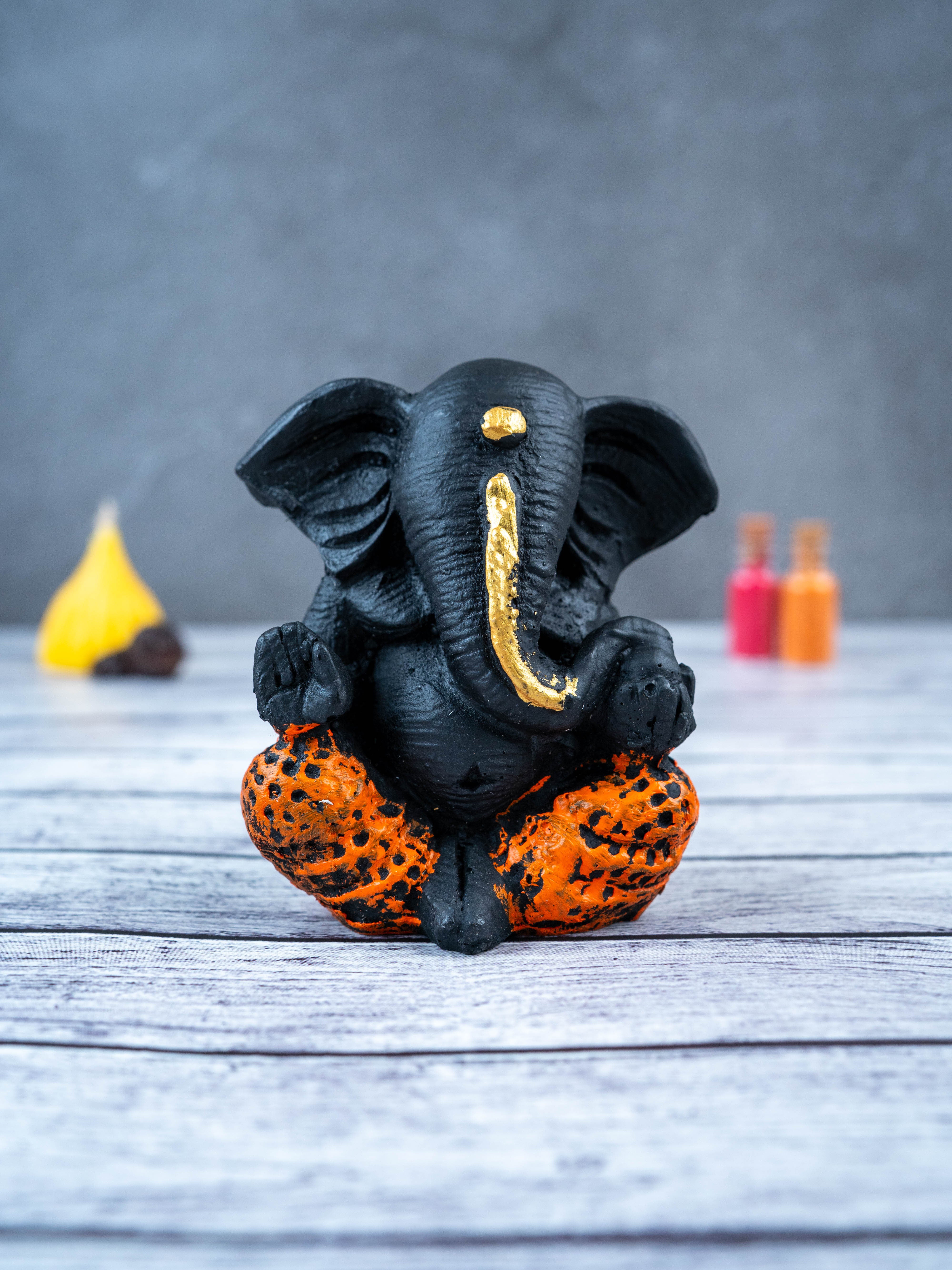 - This beautiful and intricately designed Polyresin Ganesha Idol, in a sleek black color, is the perfect addition to any home.