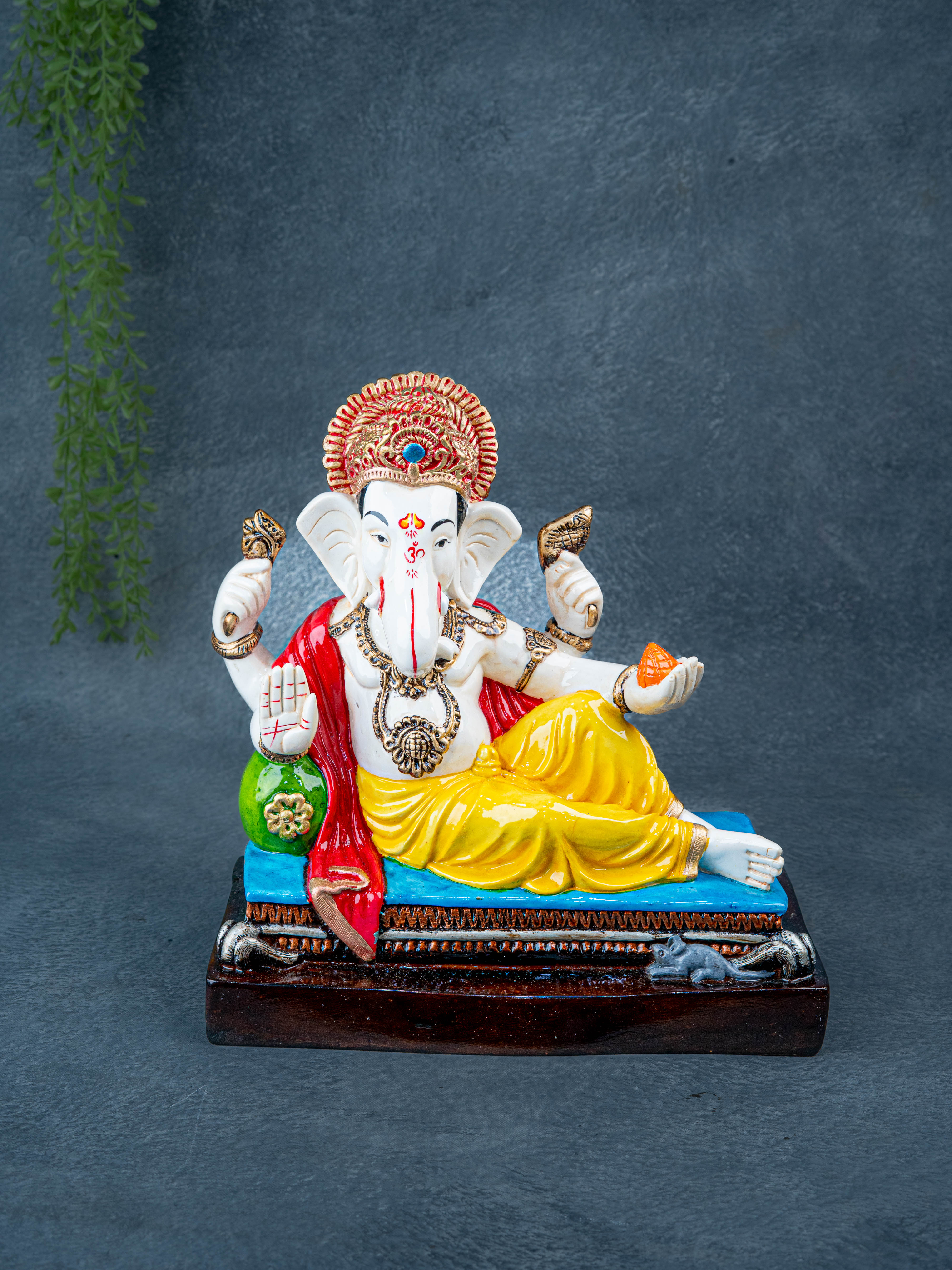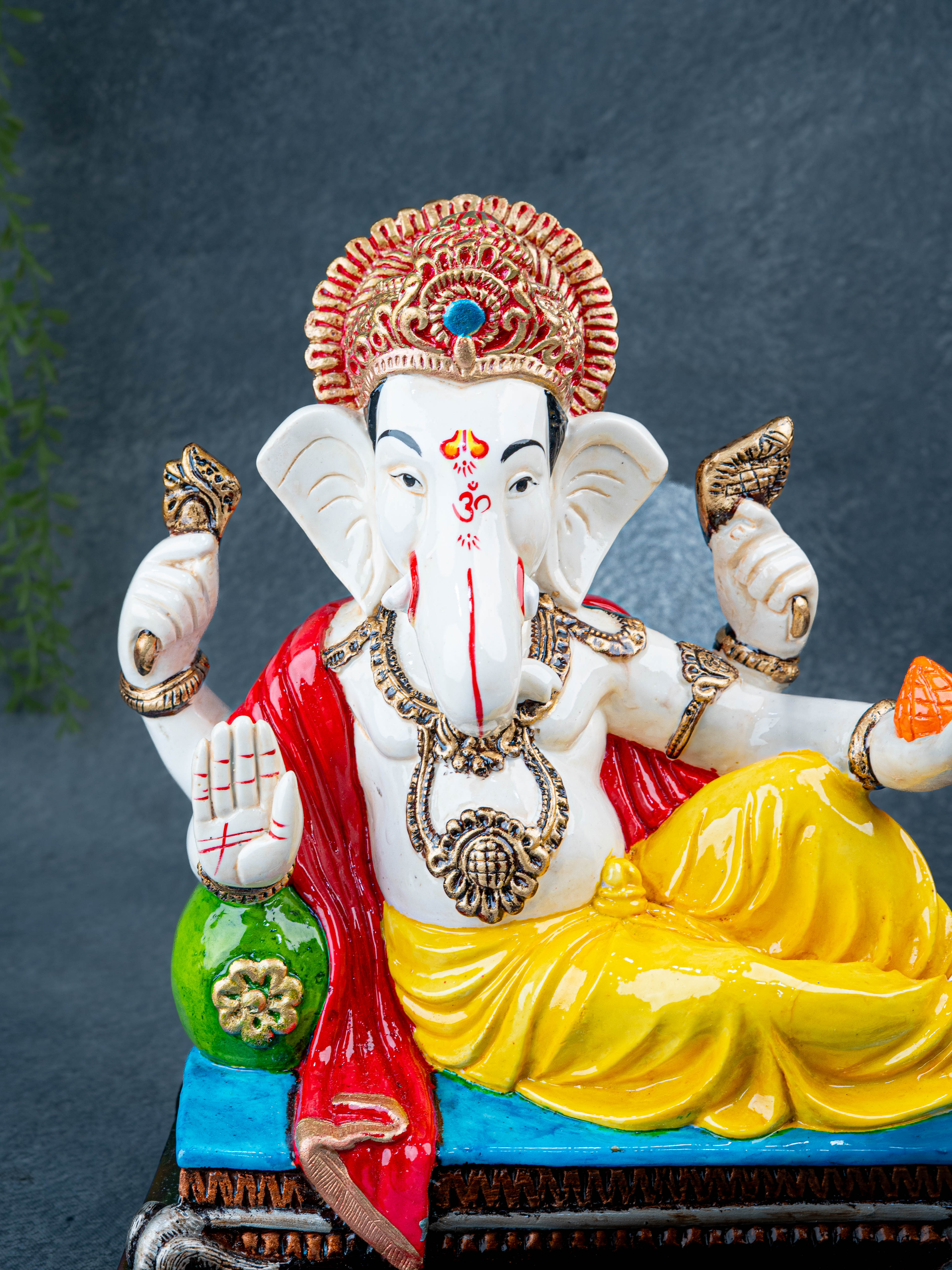 - Beautifully Crafted Polystone Ganesha Idol, Depicting Lord Ganesha Seated Gracefully on a Decorative Base.