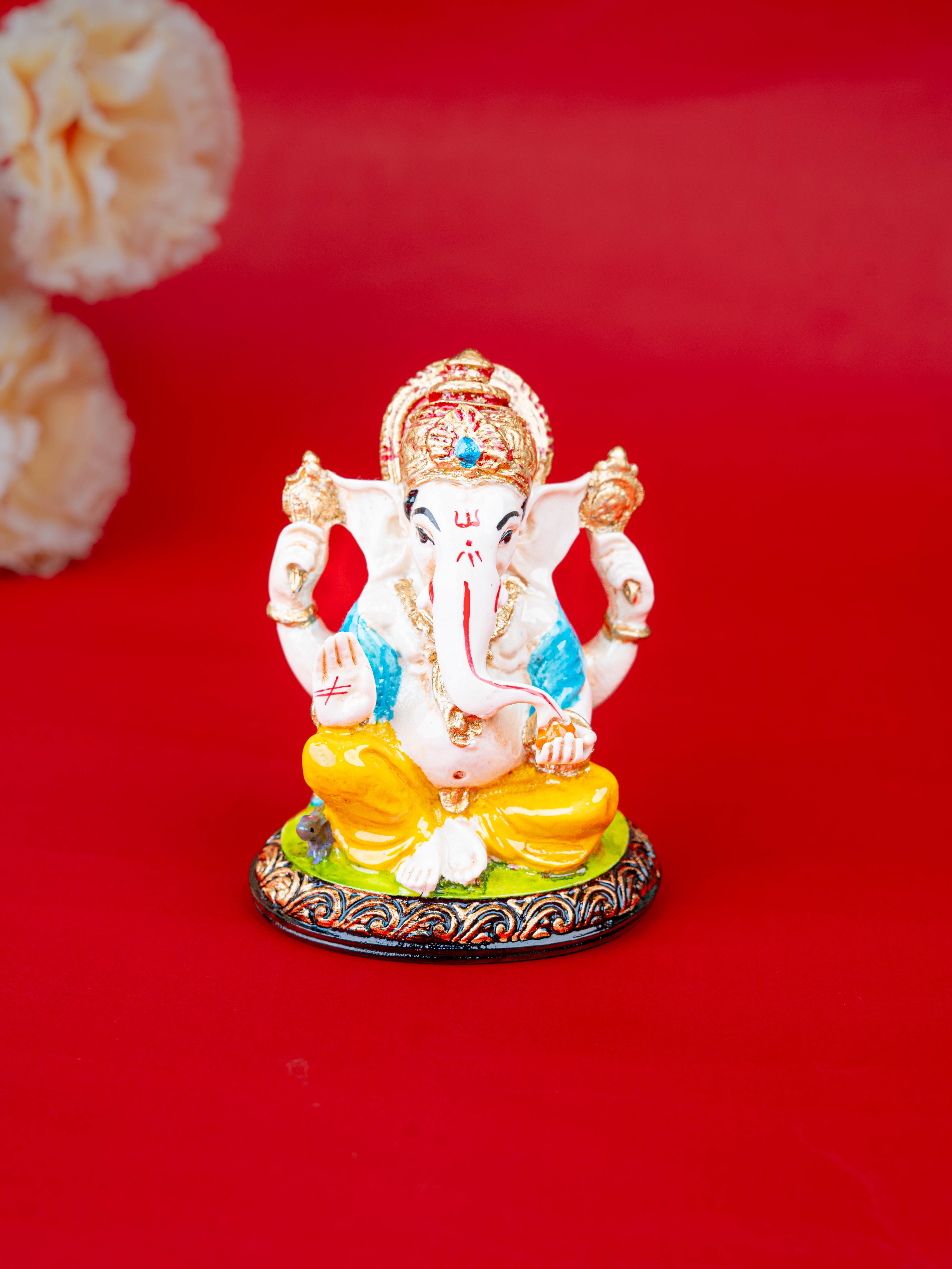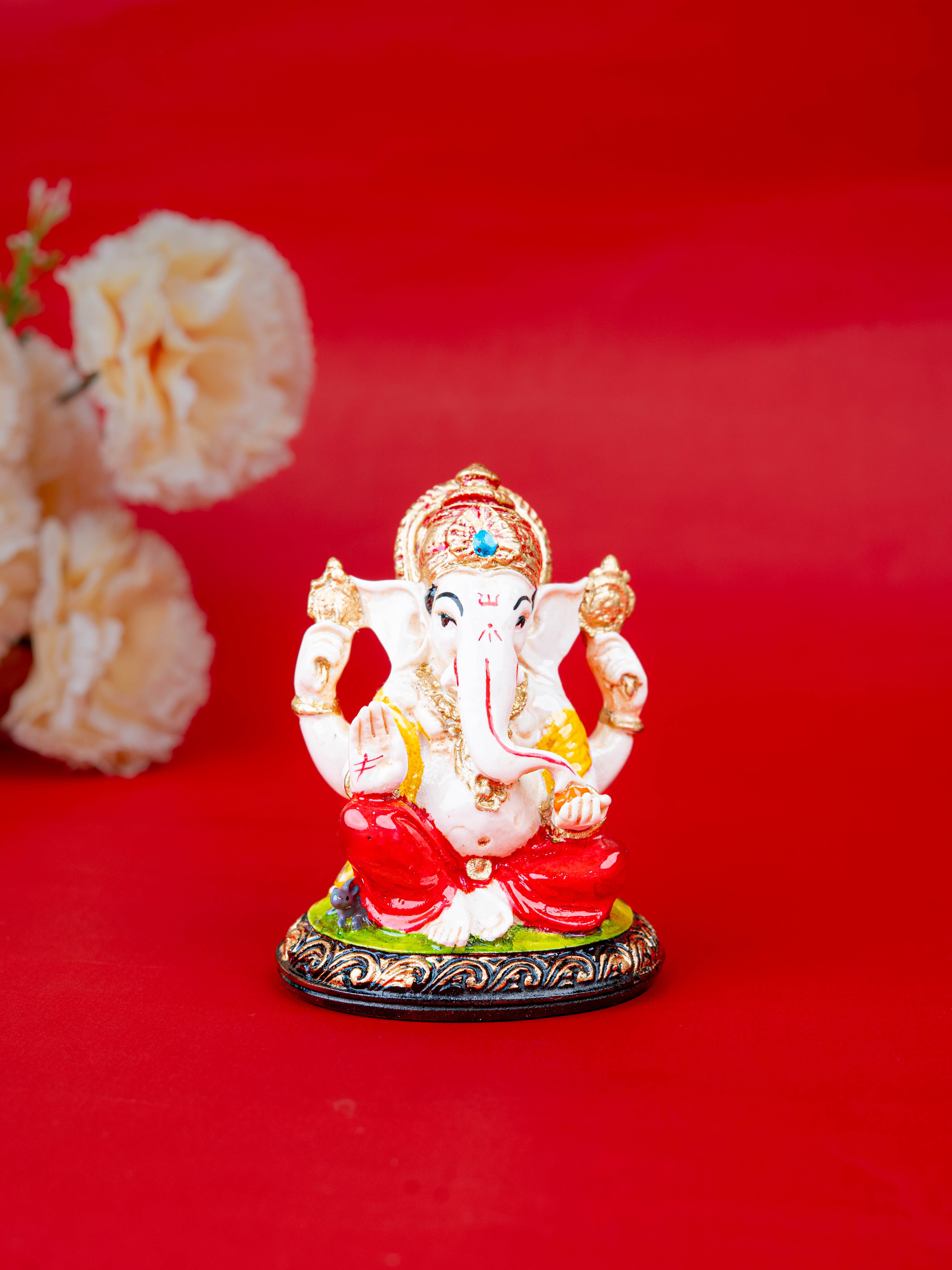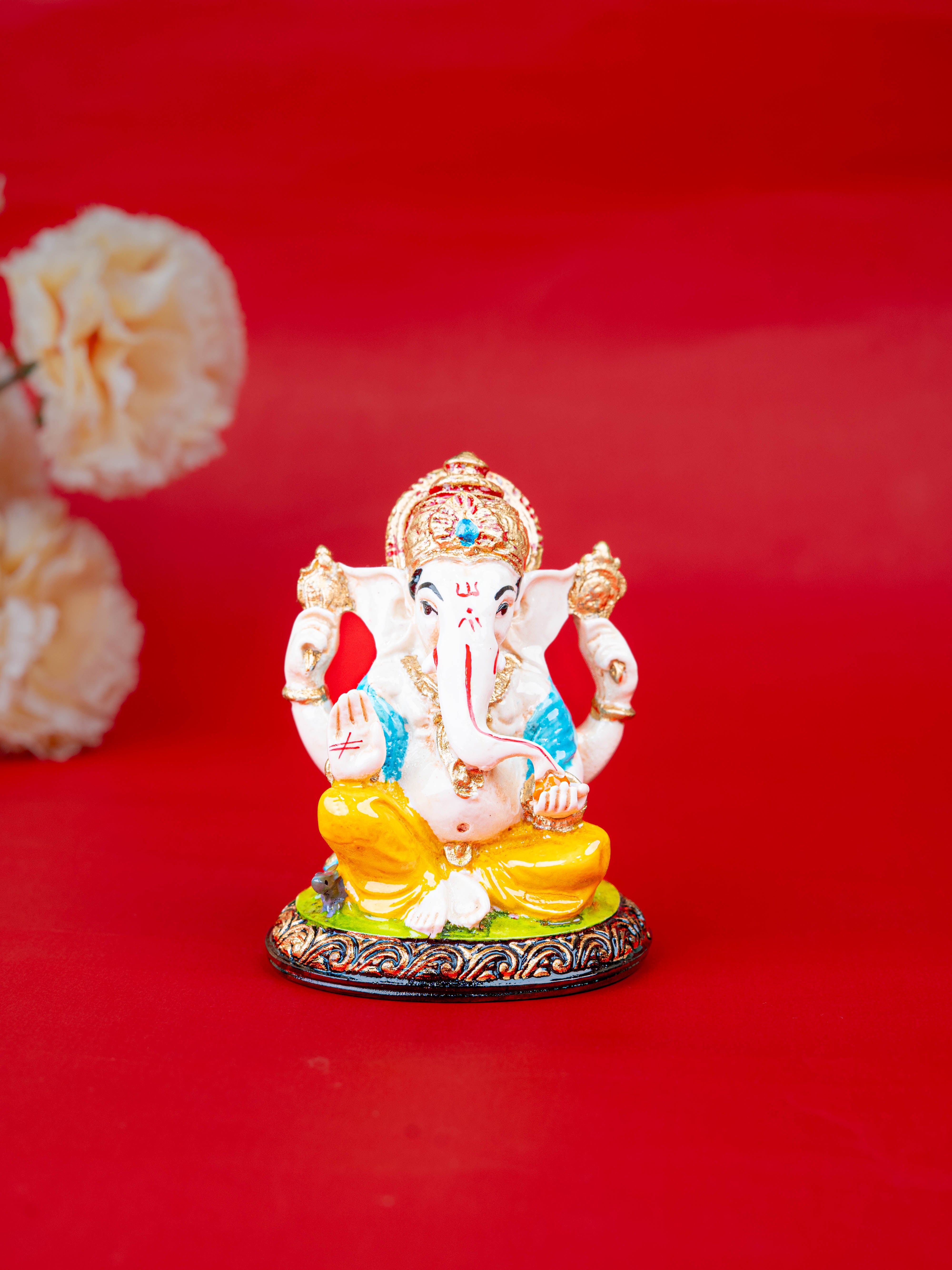 - Beautifully Crafted Polystone Ganesha Idol, Depicting Lord Ganesha Seated Gracefully on a Decorative Base.