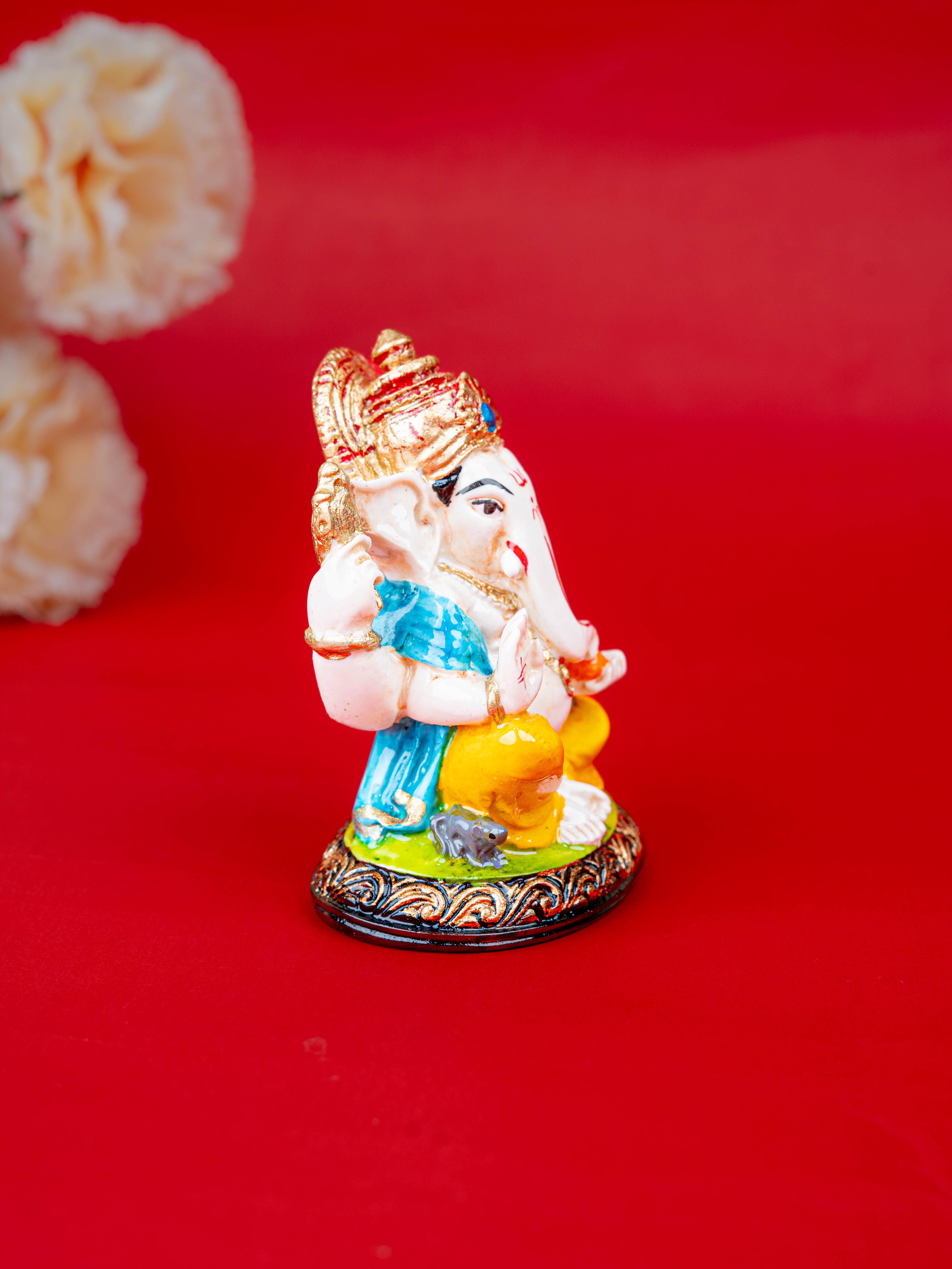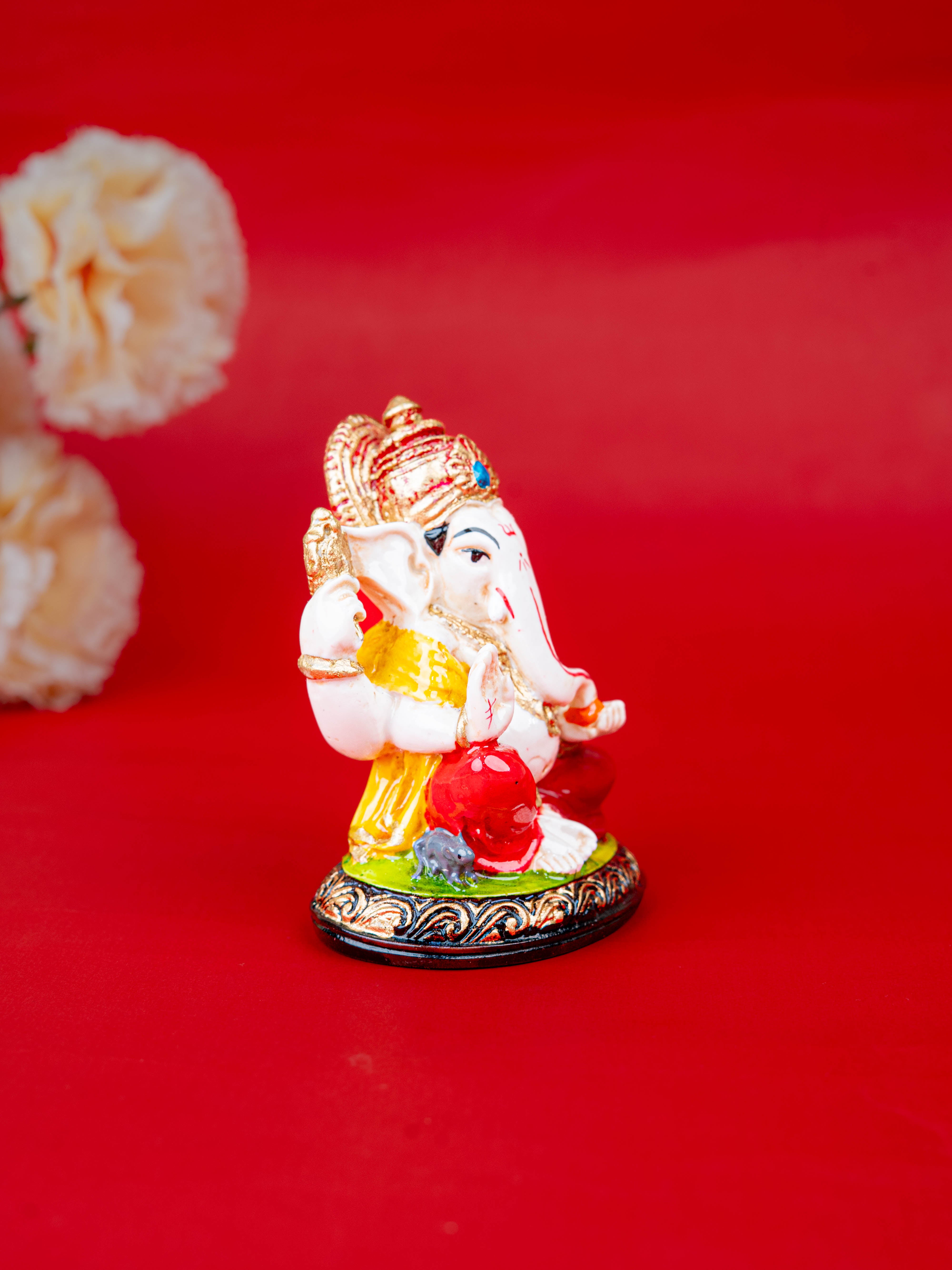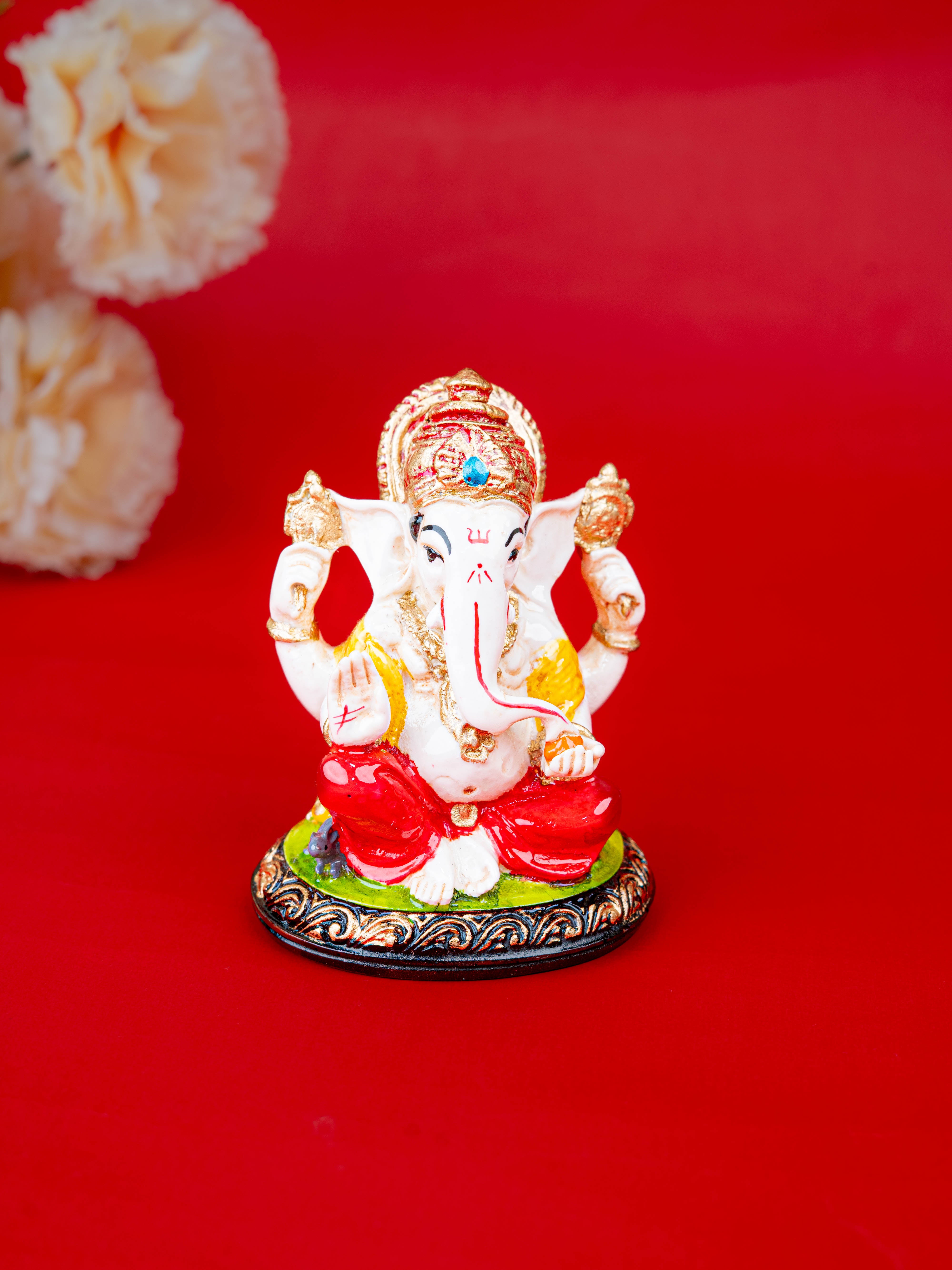 - Beautifully Crafted Polystone Ganesha Idol, Depicting Lord Ganesha Seated Gracefully on a Decorative Base.