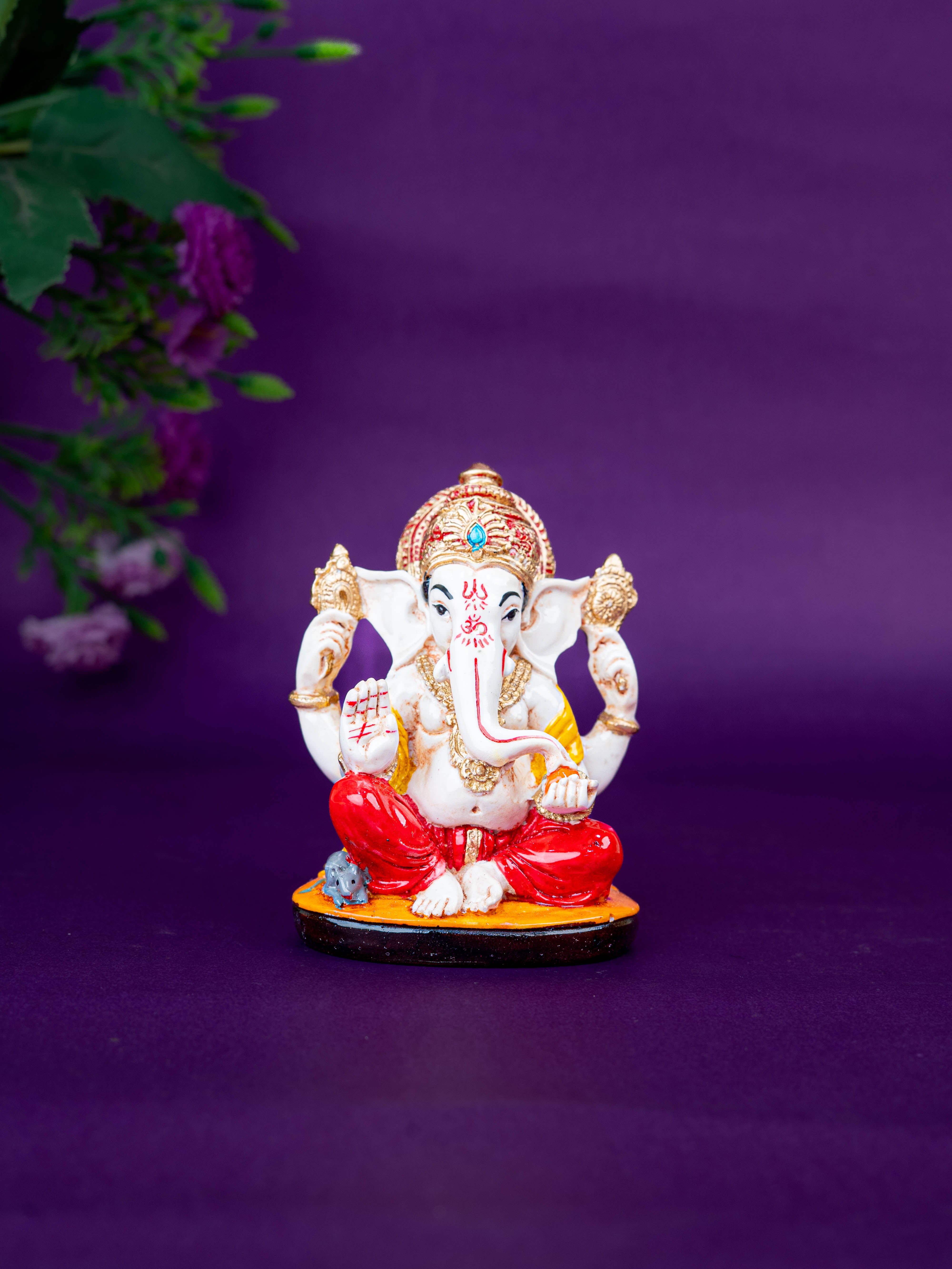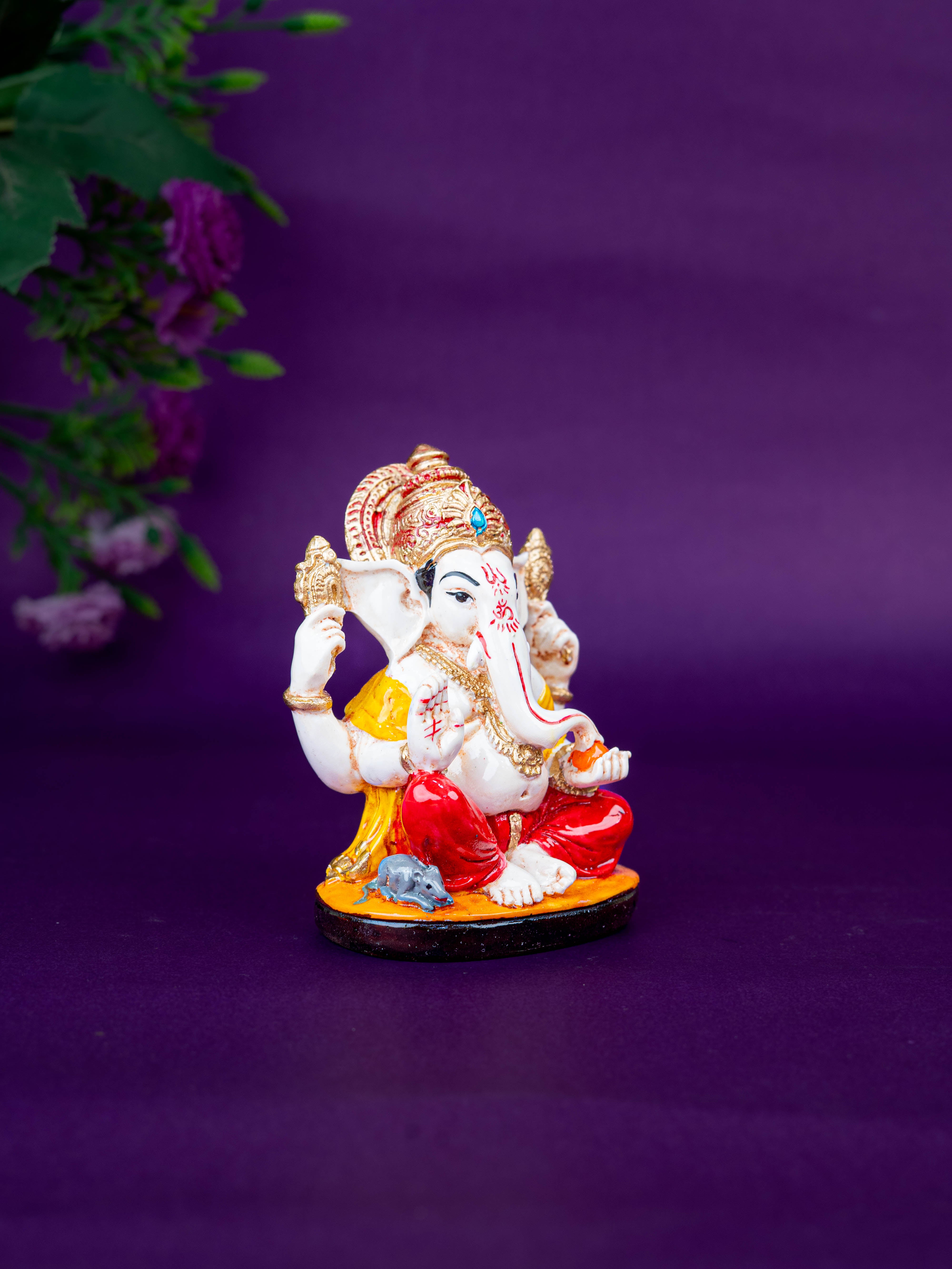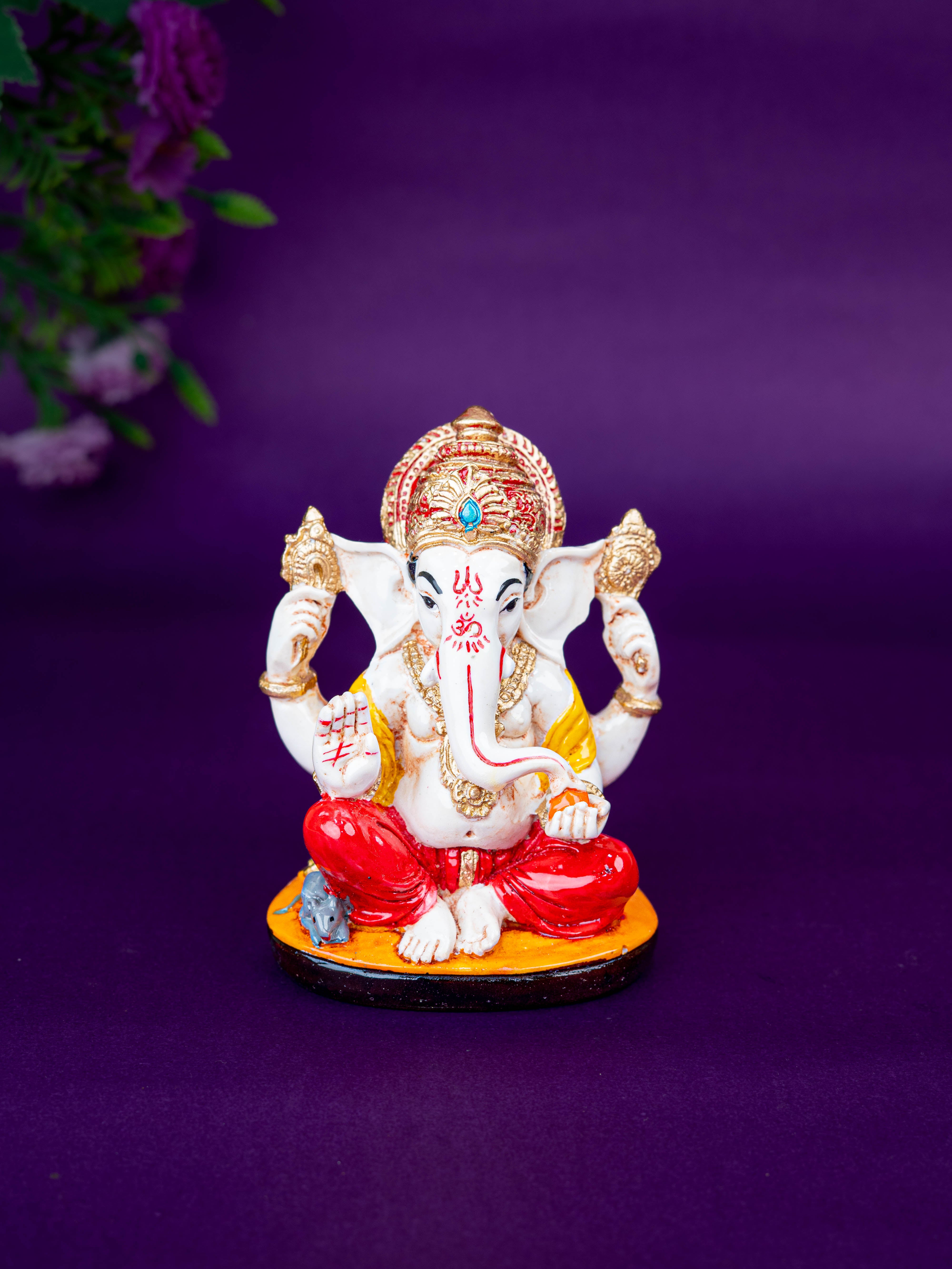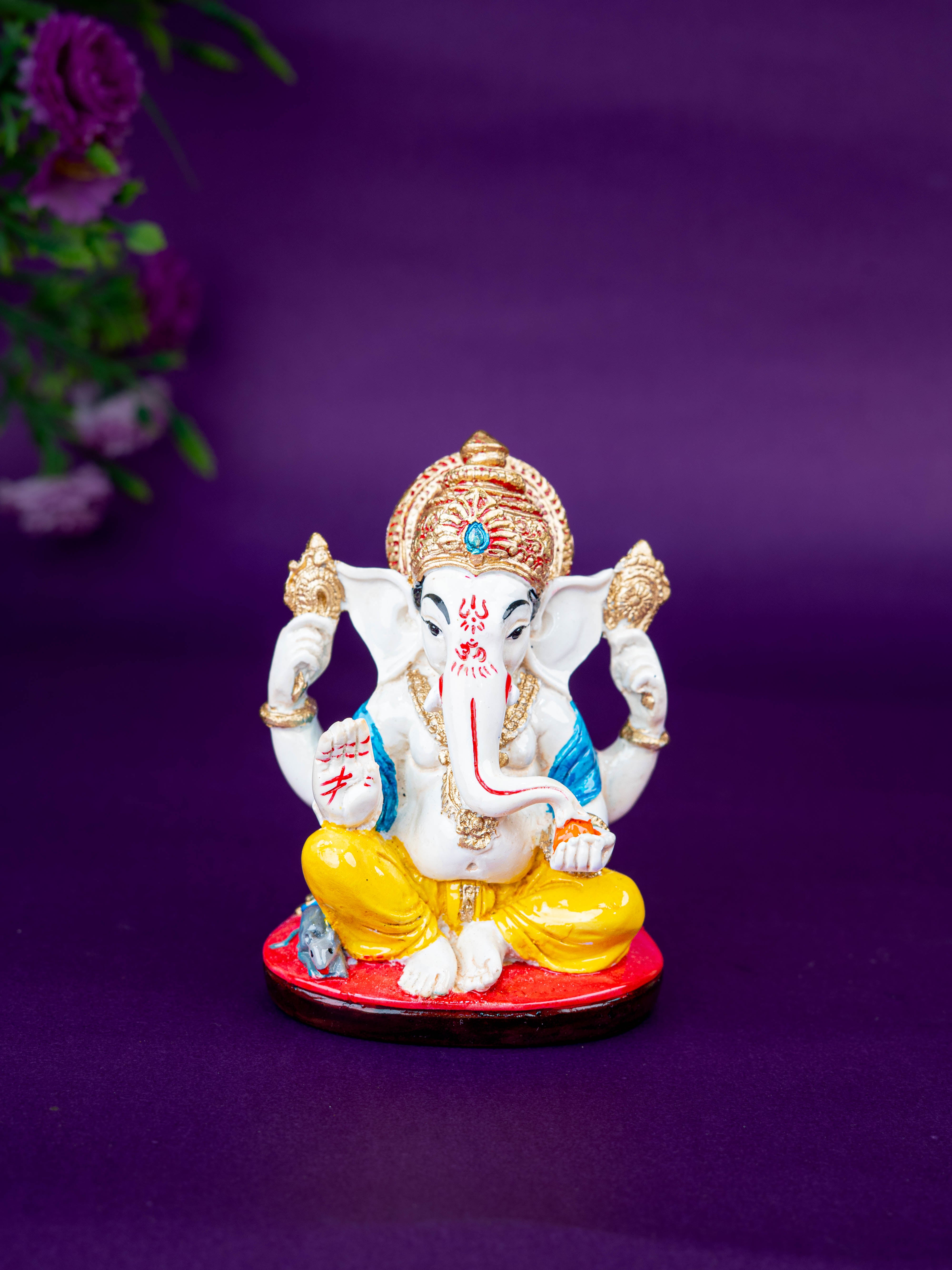 - Beautifully Crafted Polystone Ganesha Idol, Depicting Lord Ganesha Seated Gracefully on a Decorative Base.