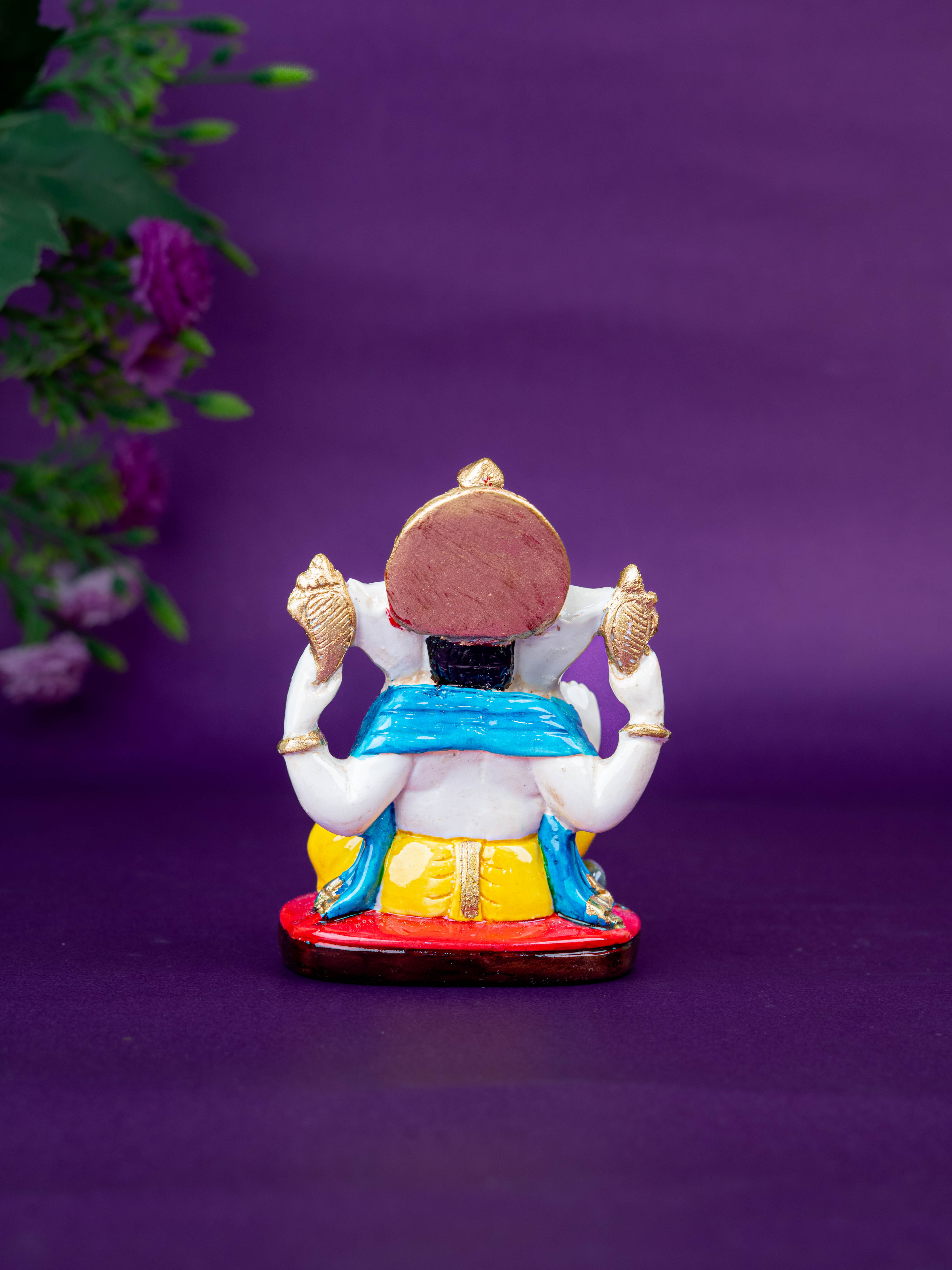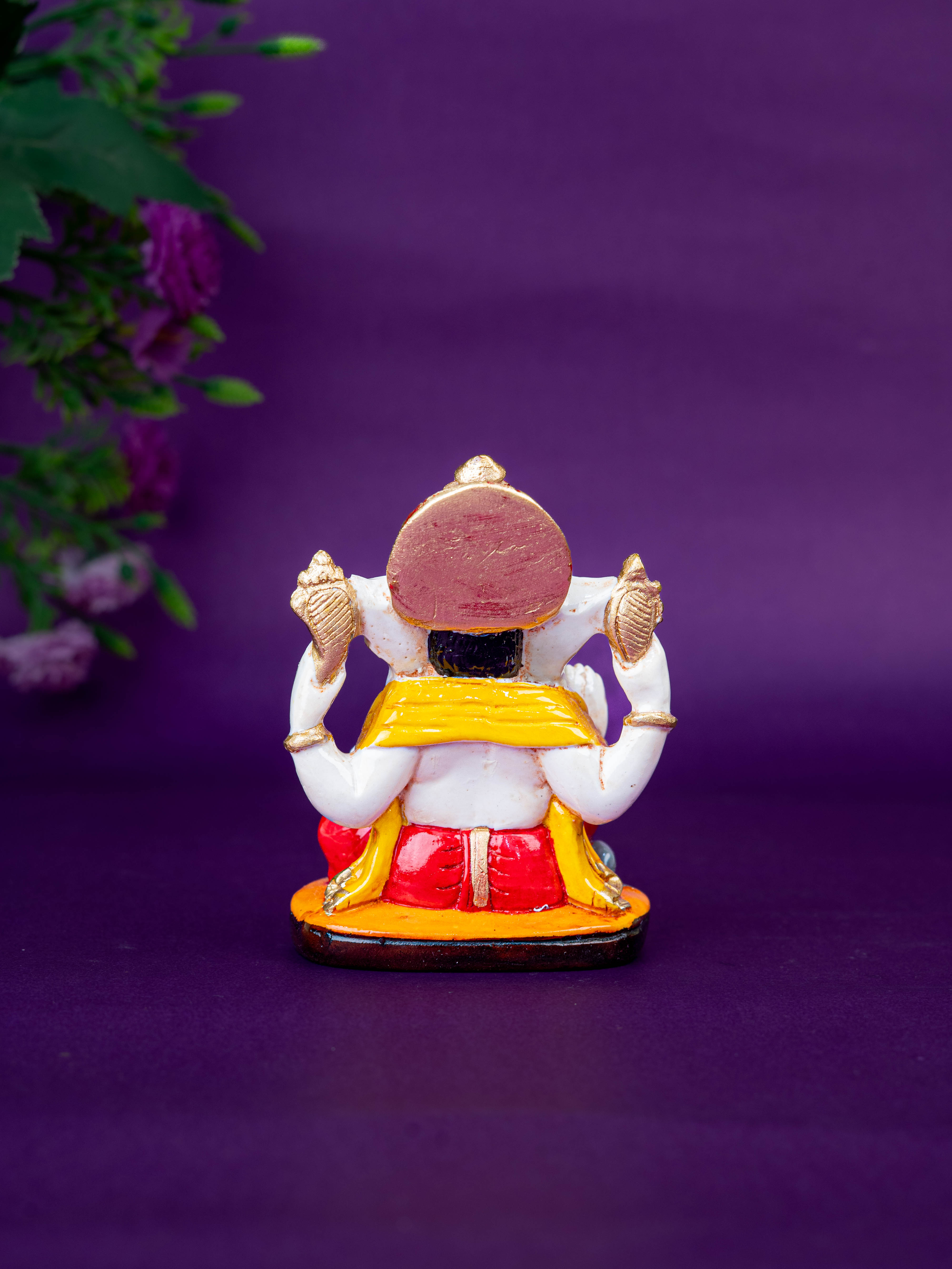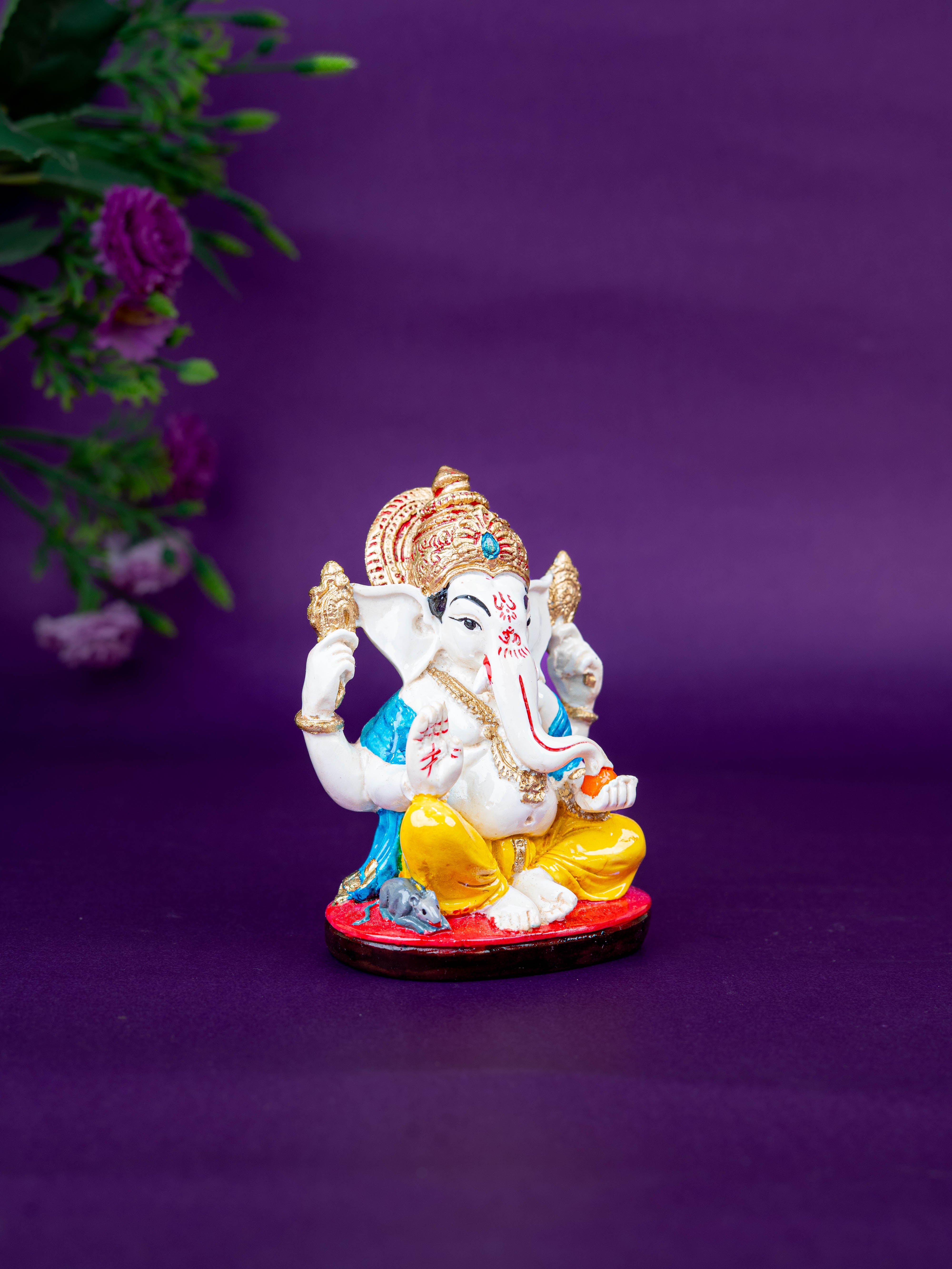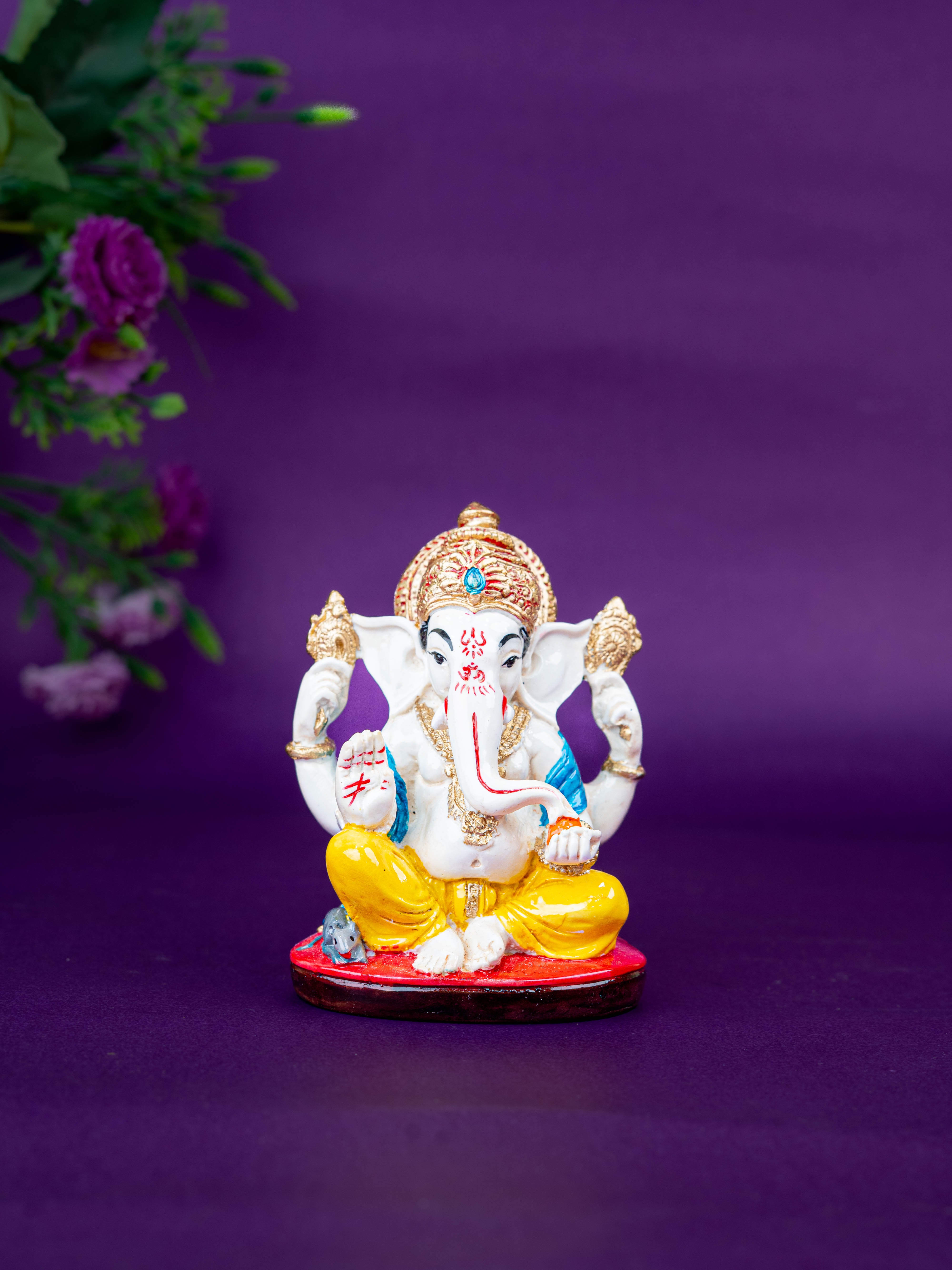 - Beautifully Crafted Polystone Ganesha Idol, Depicting Lord Ganesha Seated Gracefully on a Decorative Base.