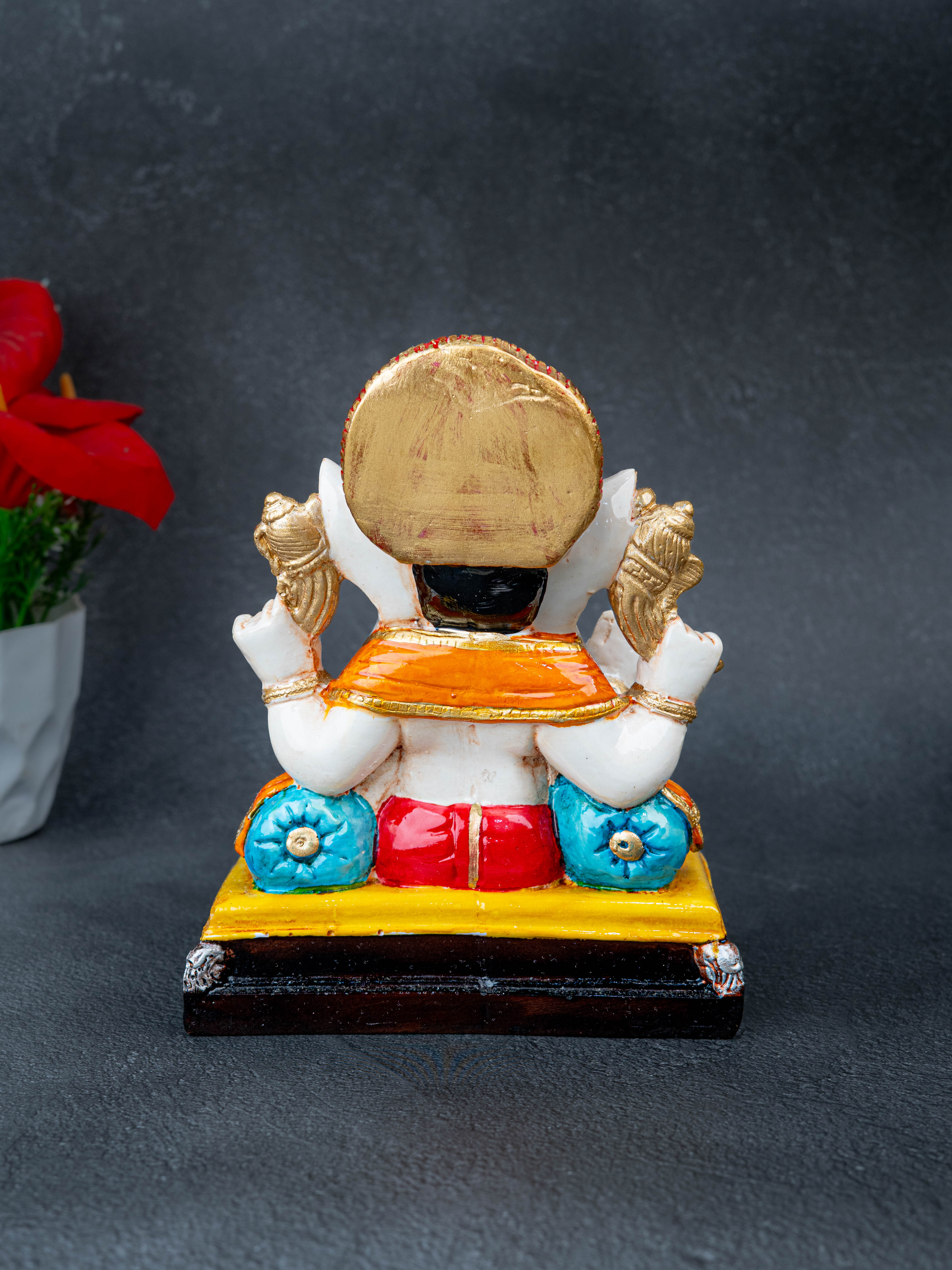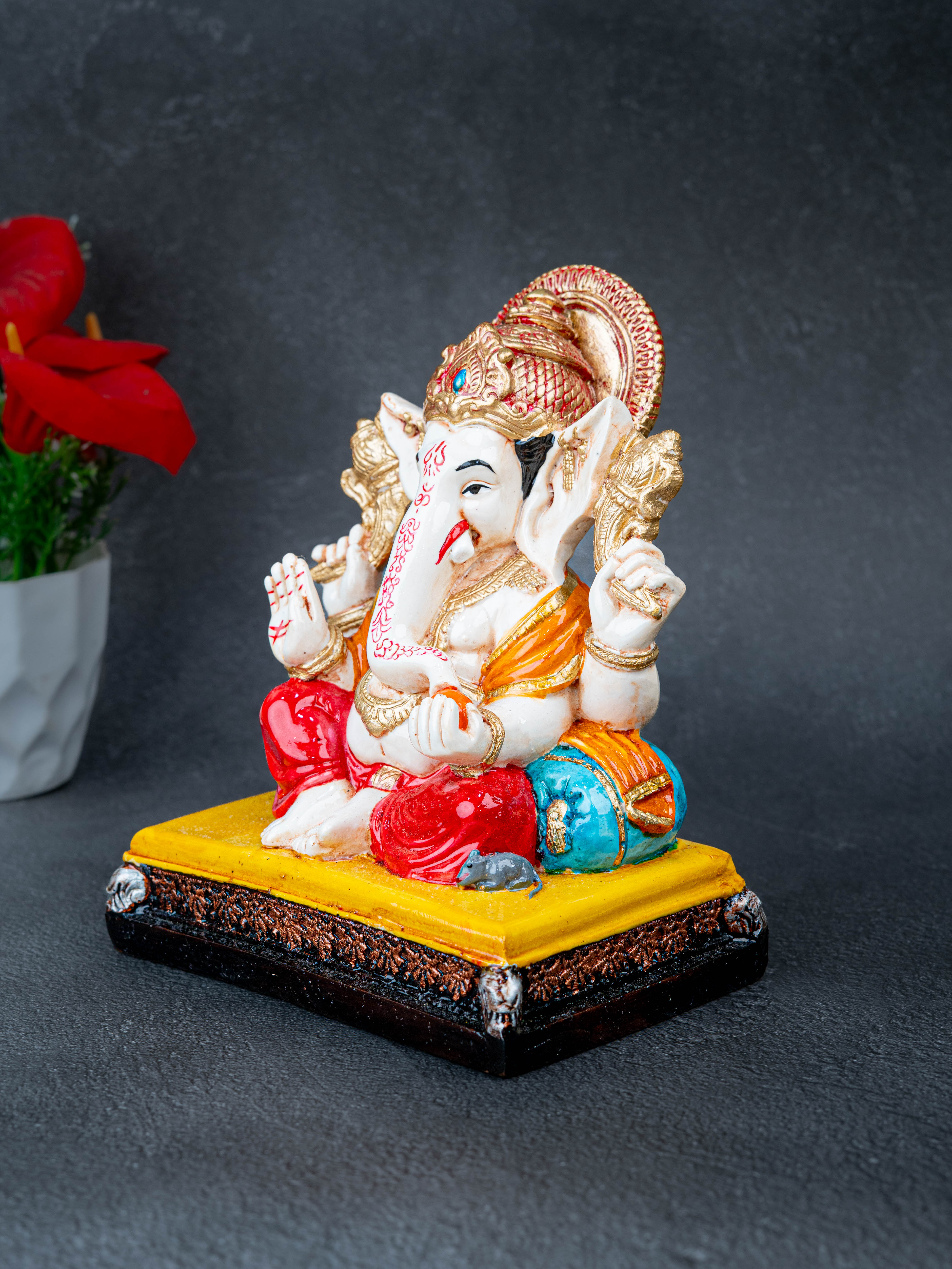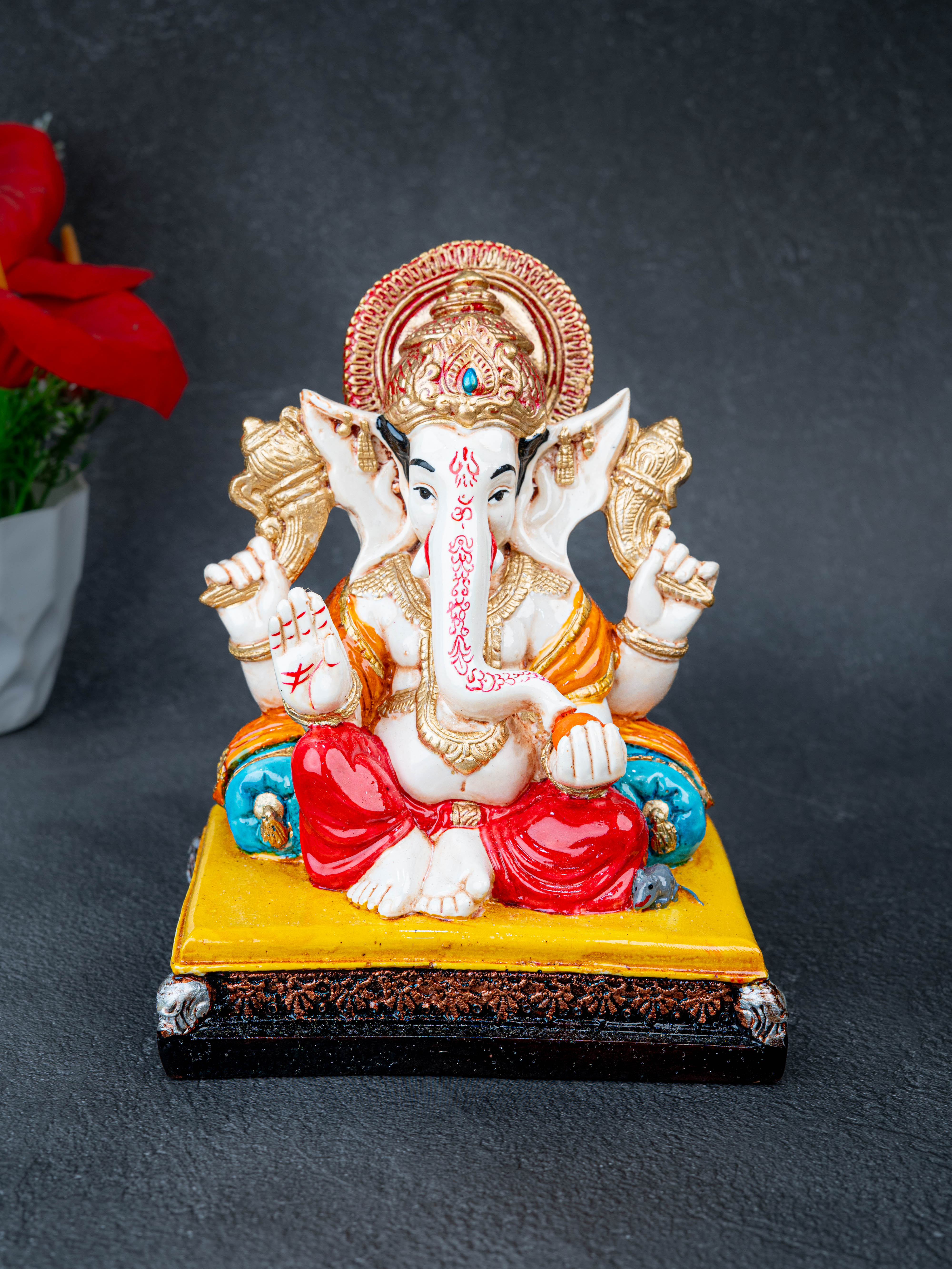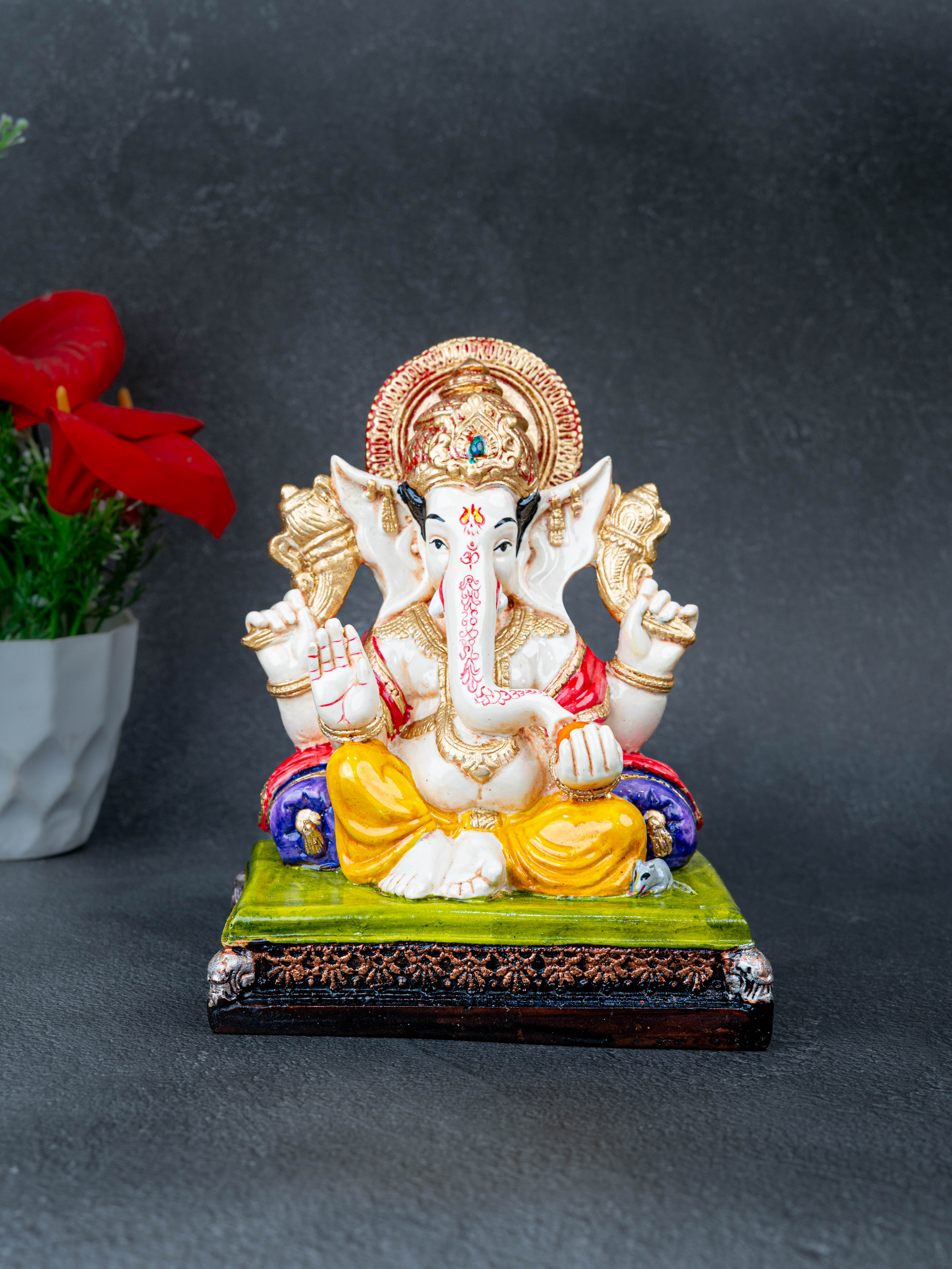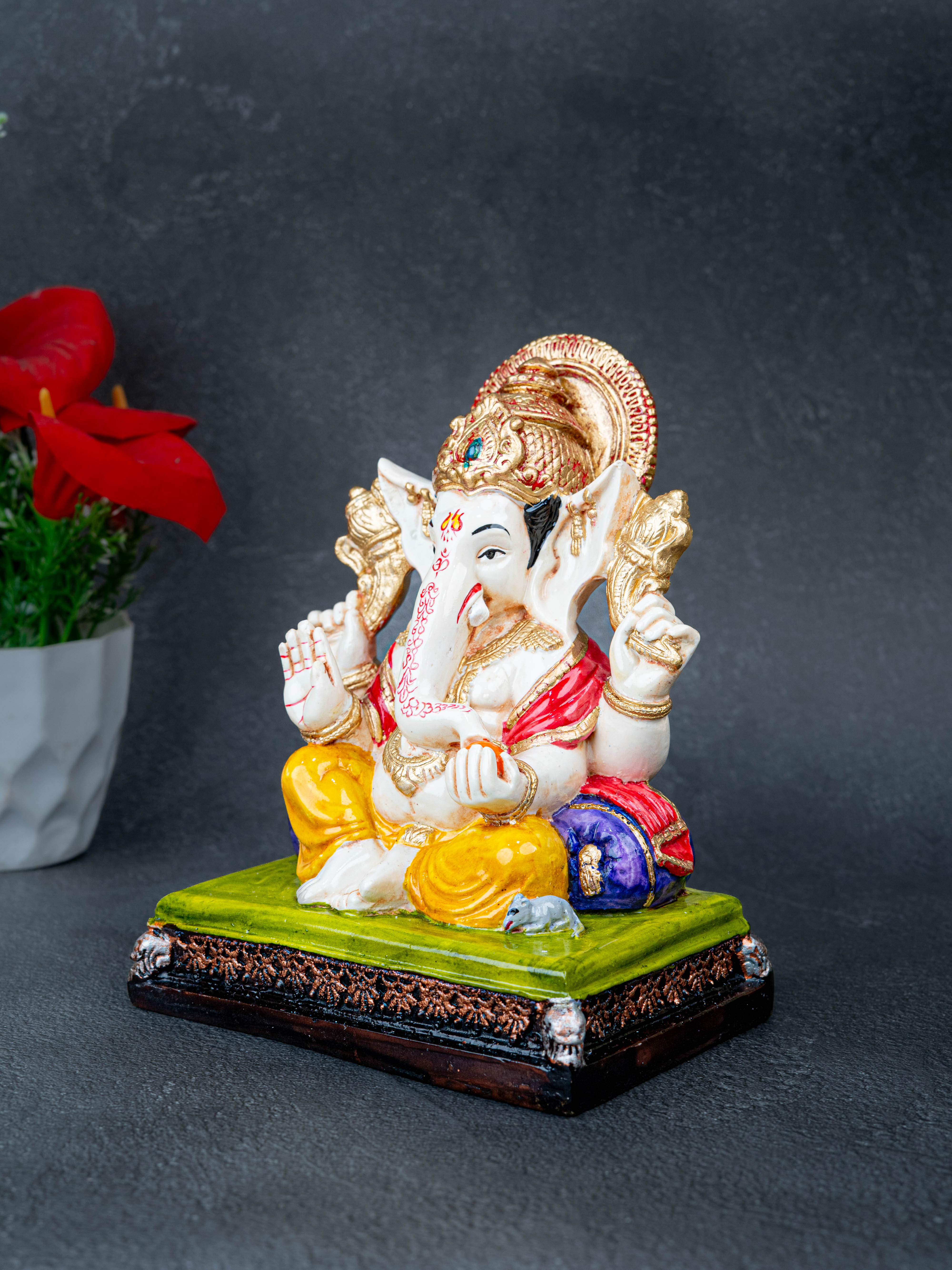 - Beautifully Crafted Polystone Ganesha Idol, Depicting Lord Ganesha Seated Gracefully on a Decorative Base.