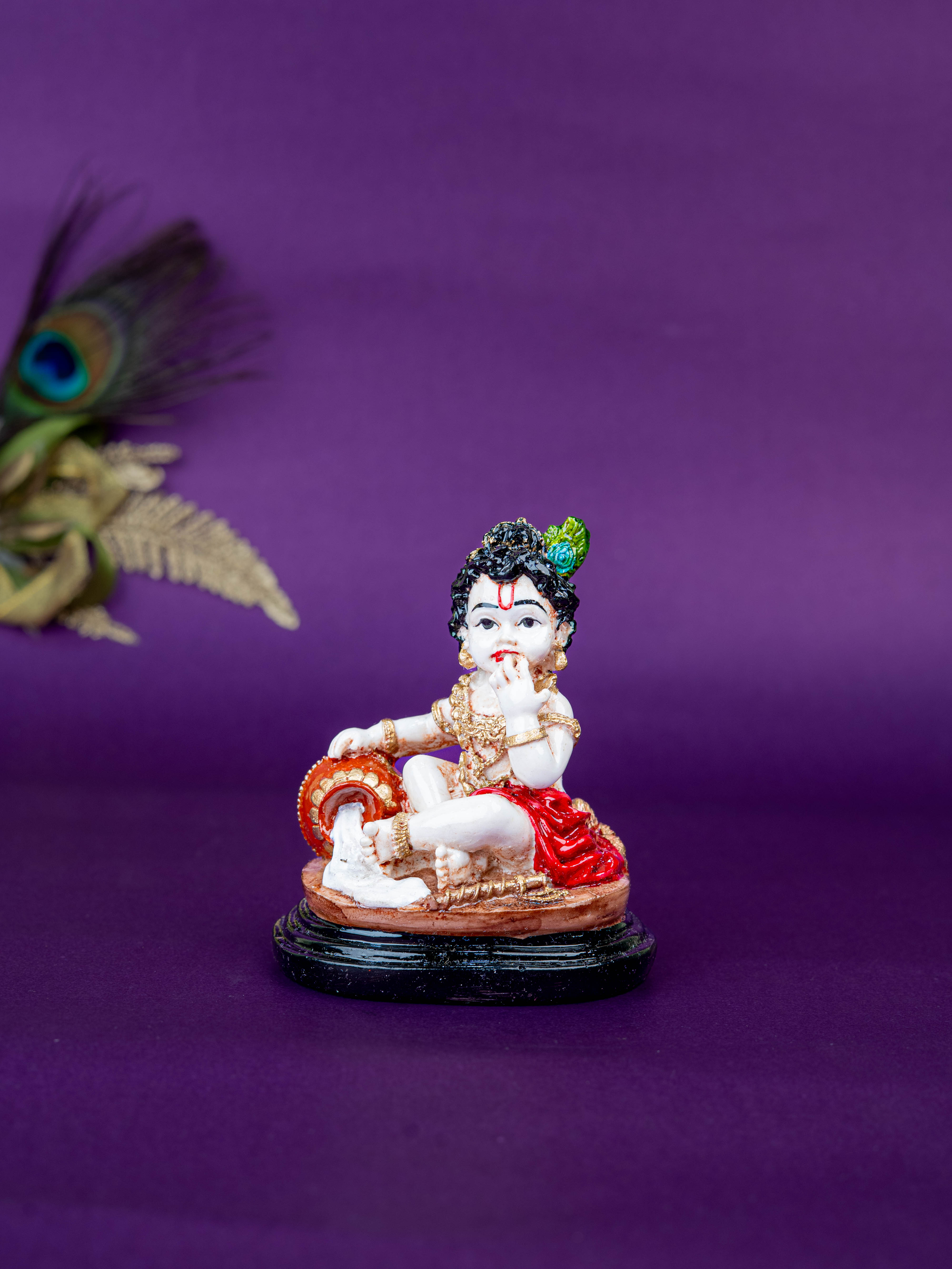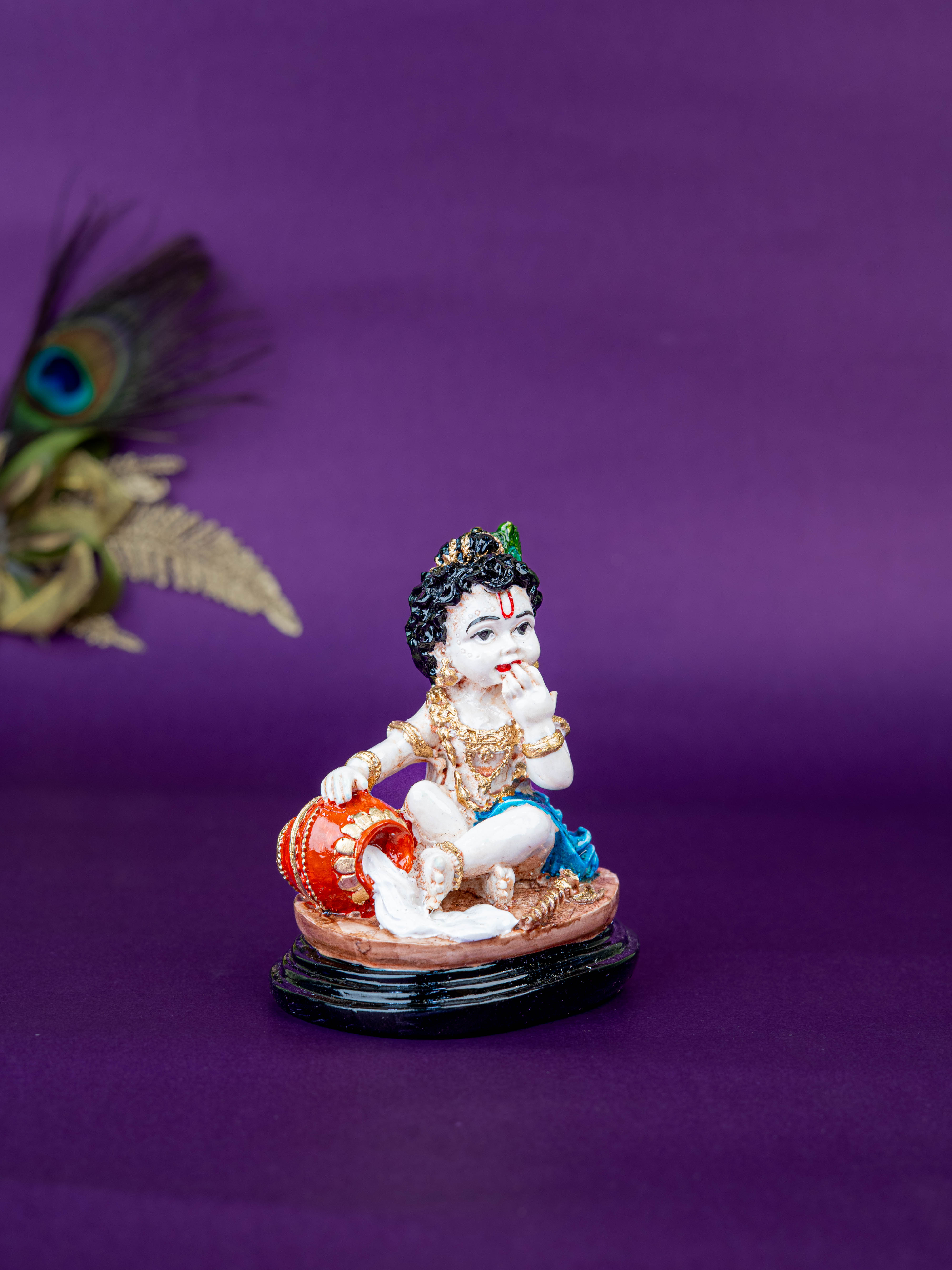 - Polystone Krishna with Butter Pot Idol, Depicting Lord Krishna in his Butter Thief form from his Childhood.