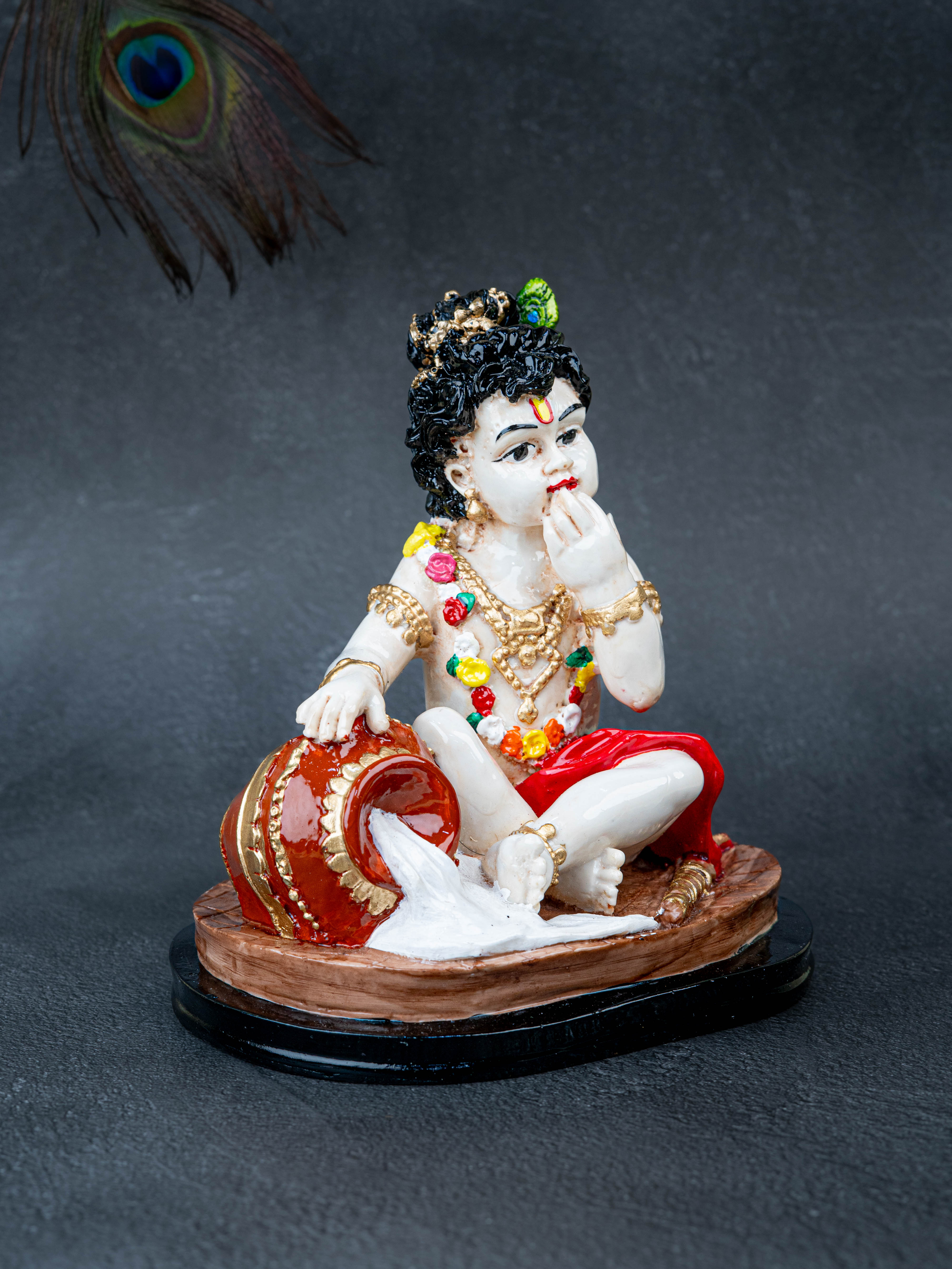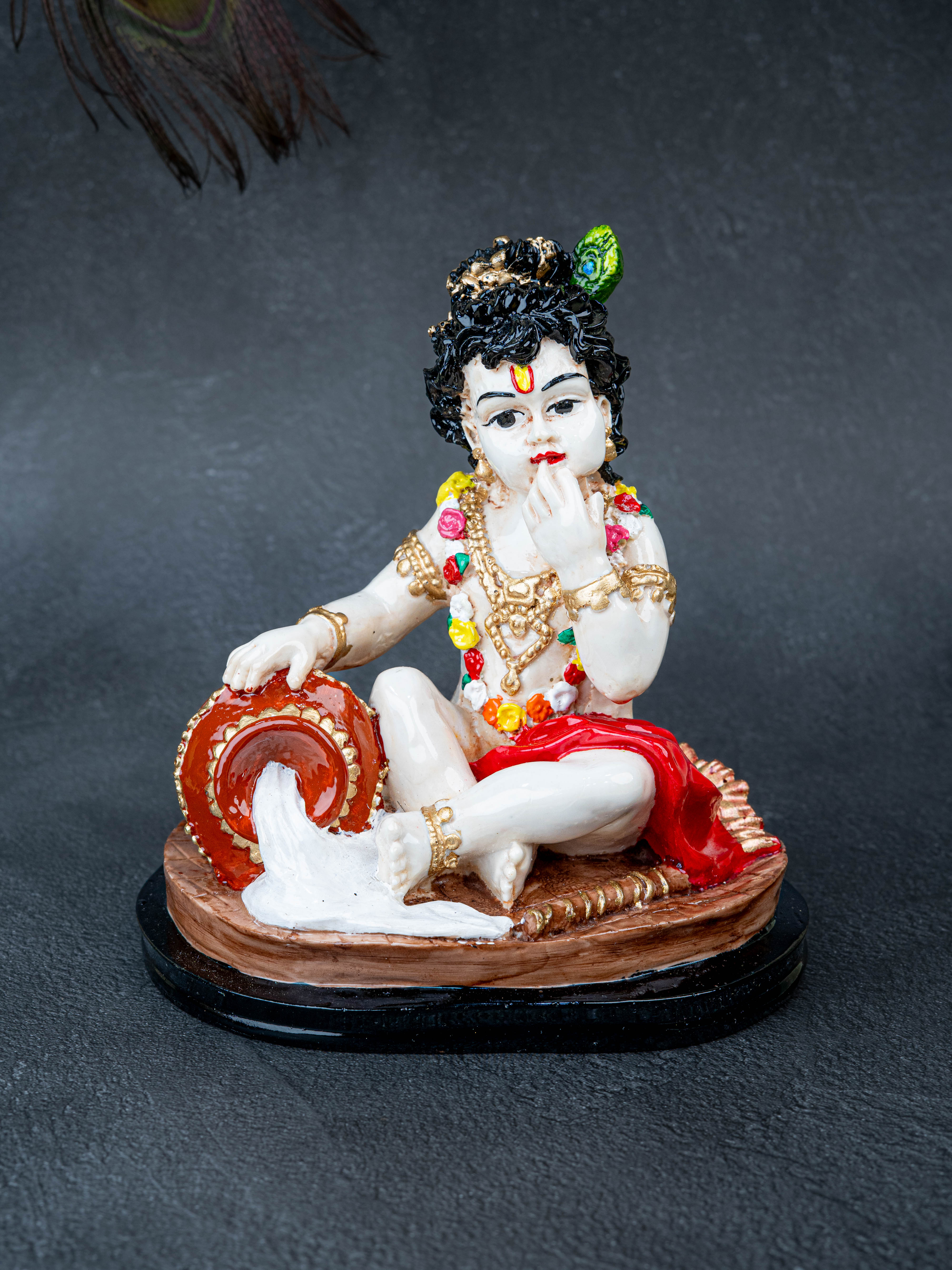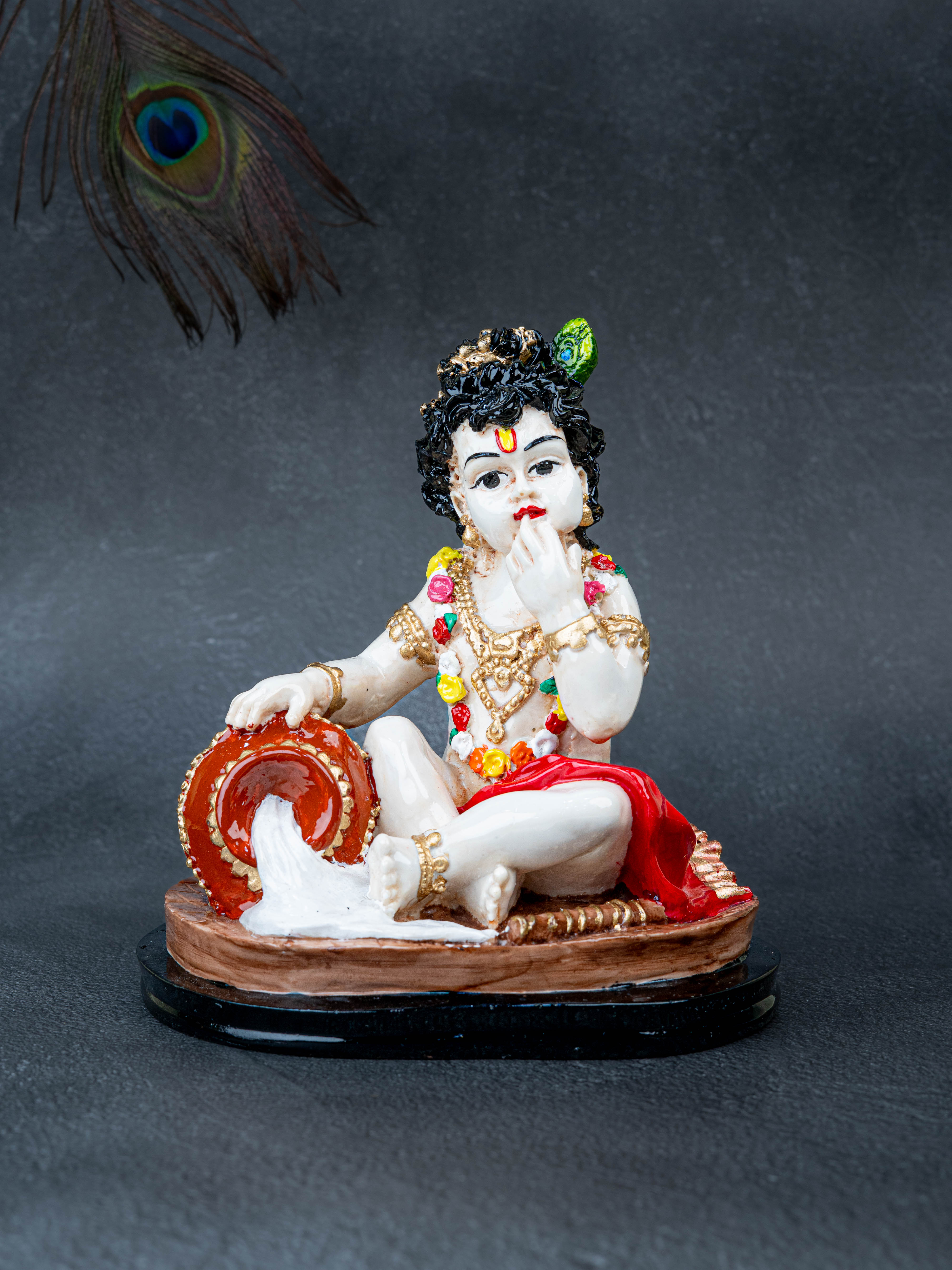 - Polystone Krishna with Butter Pot Idol, Depicting Lord Krishna in his Butter Thief form from his Childhood.