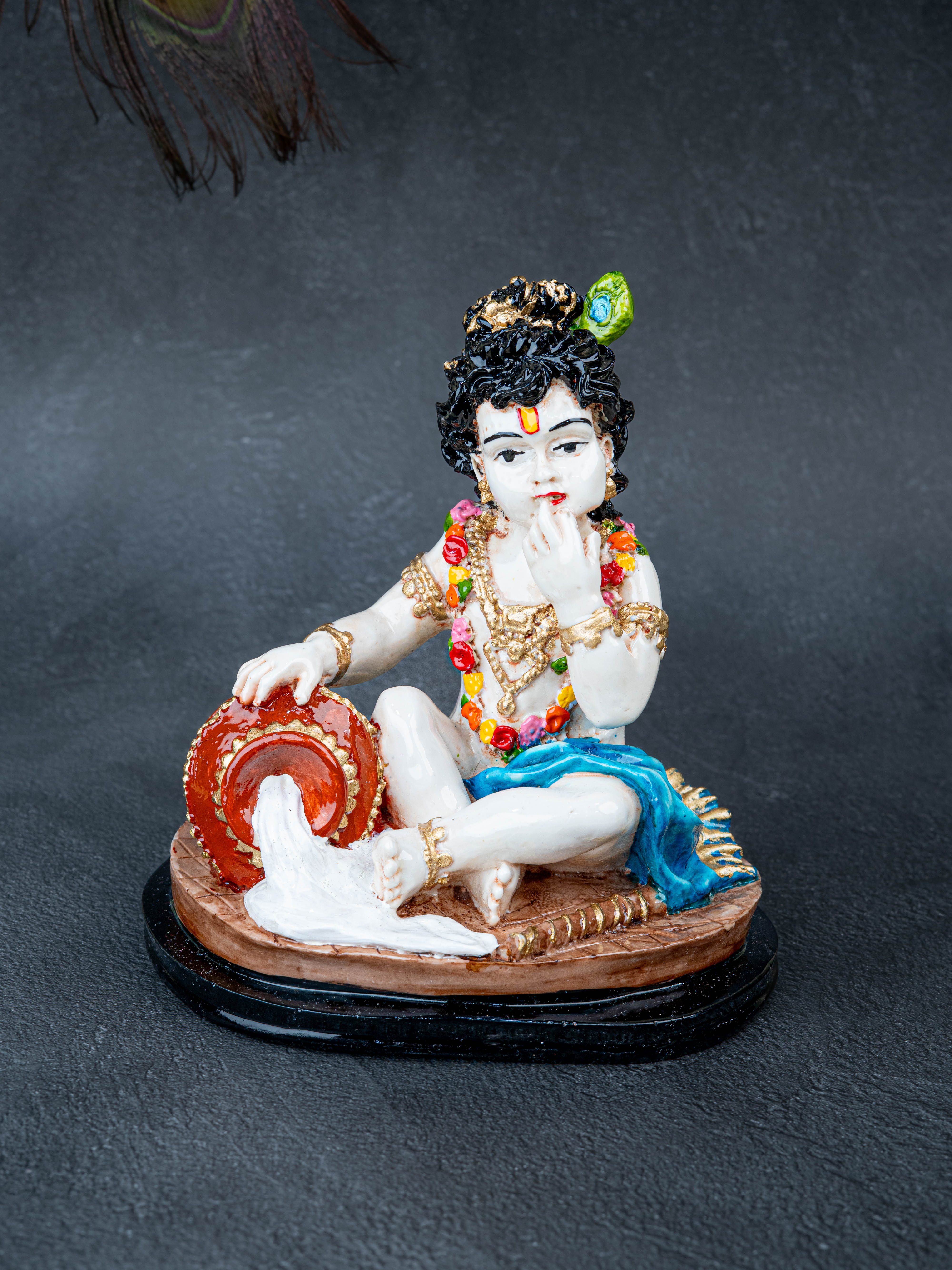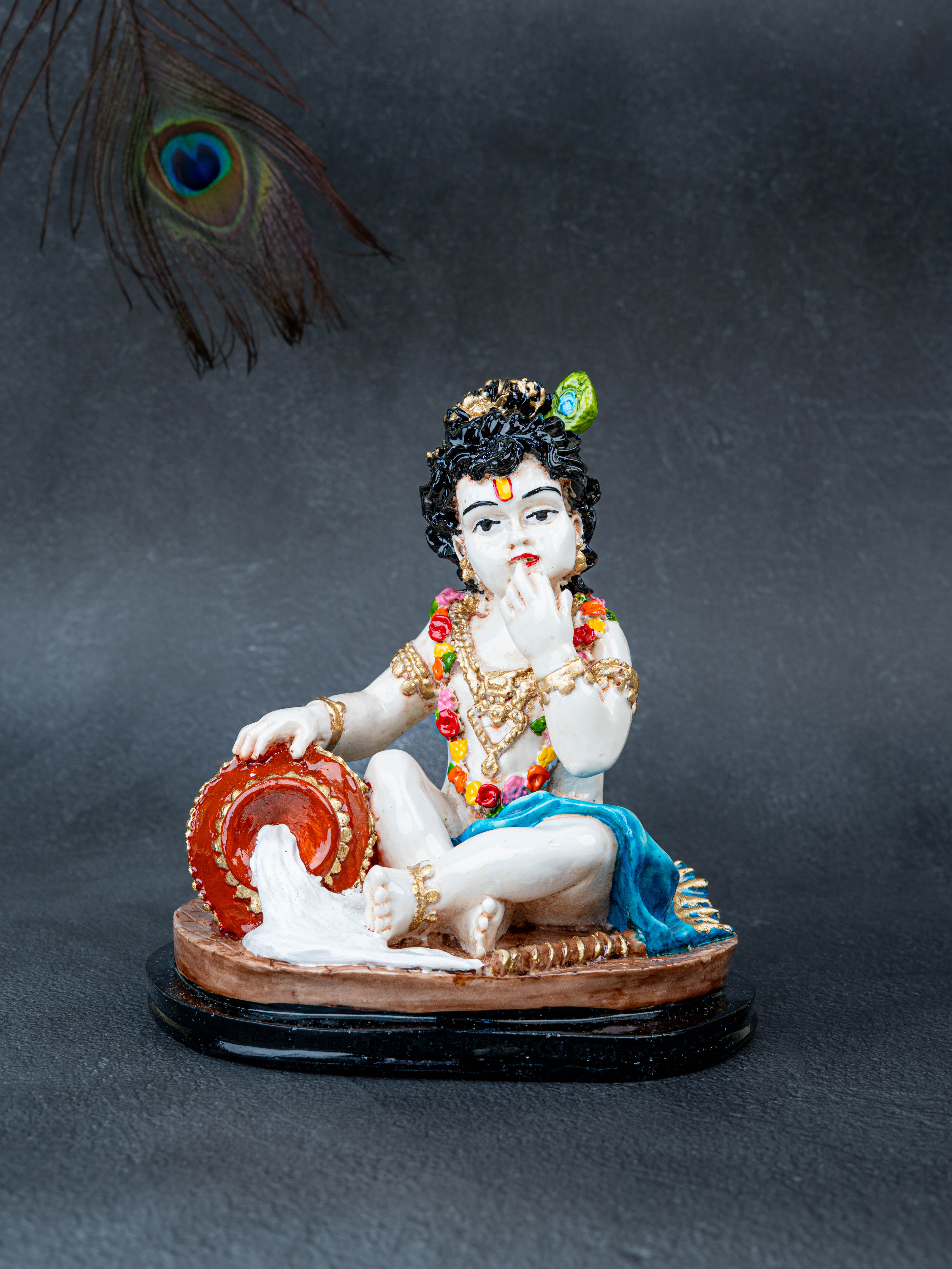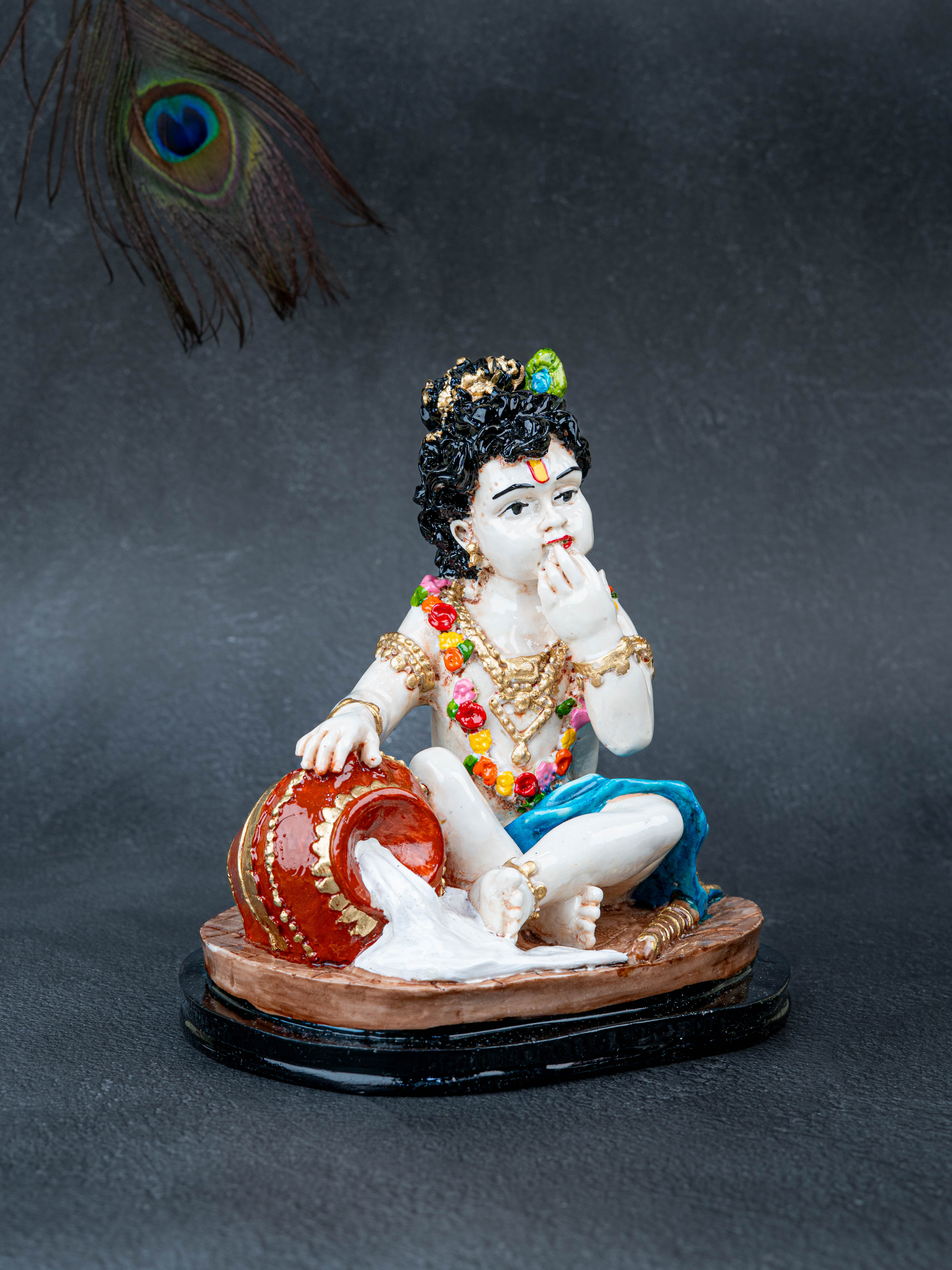 - Polystone Krishna with Butter Pot Idol, Depicting Lord Krishna in his Butter Thief form from his Childhood.