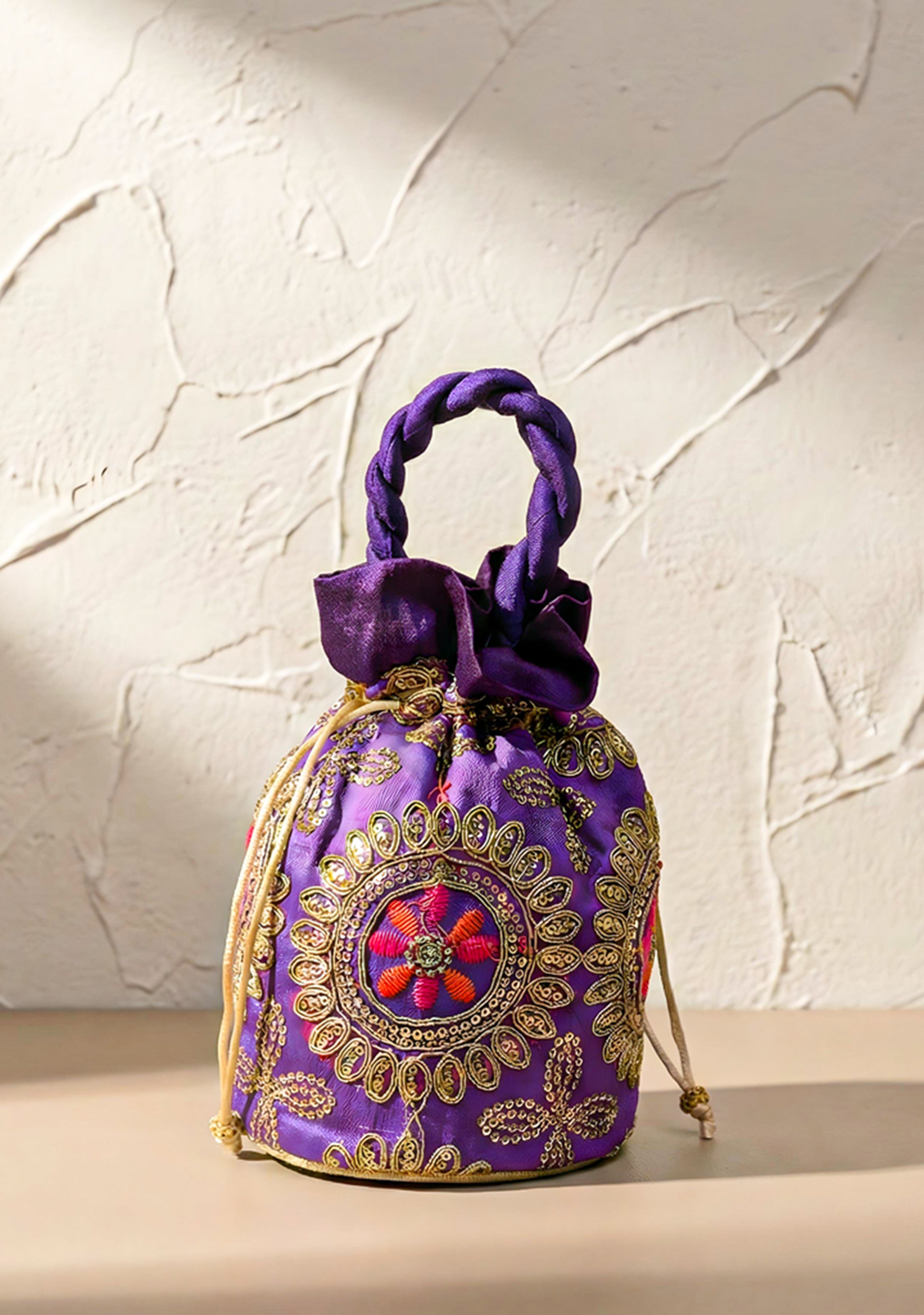 Potli bag - Thread embroidery with chamki work - W3687
