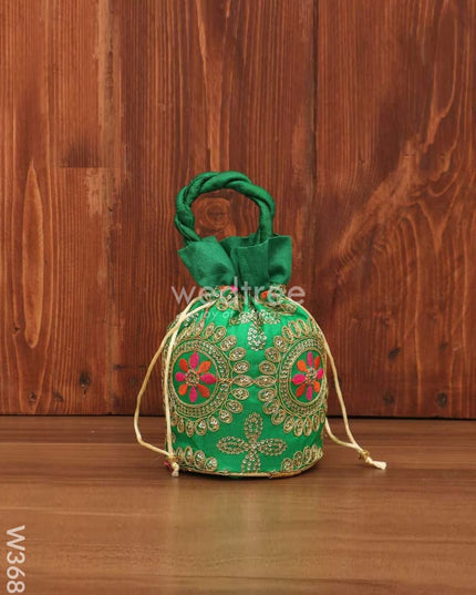 It’s a wow design in Potli Bag that you will show abundance of love for. The bag is divided into two segments: the bottom is made of vibrant colors. There are shining multicolour embroideries made in floral patterns all over the bag. You know what? Your guests will absolutely cherish the return gift!