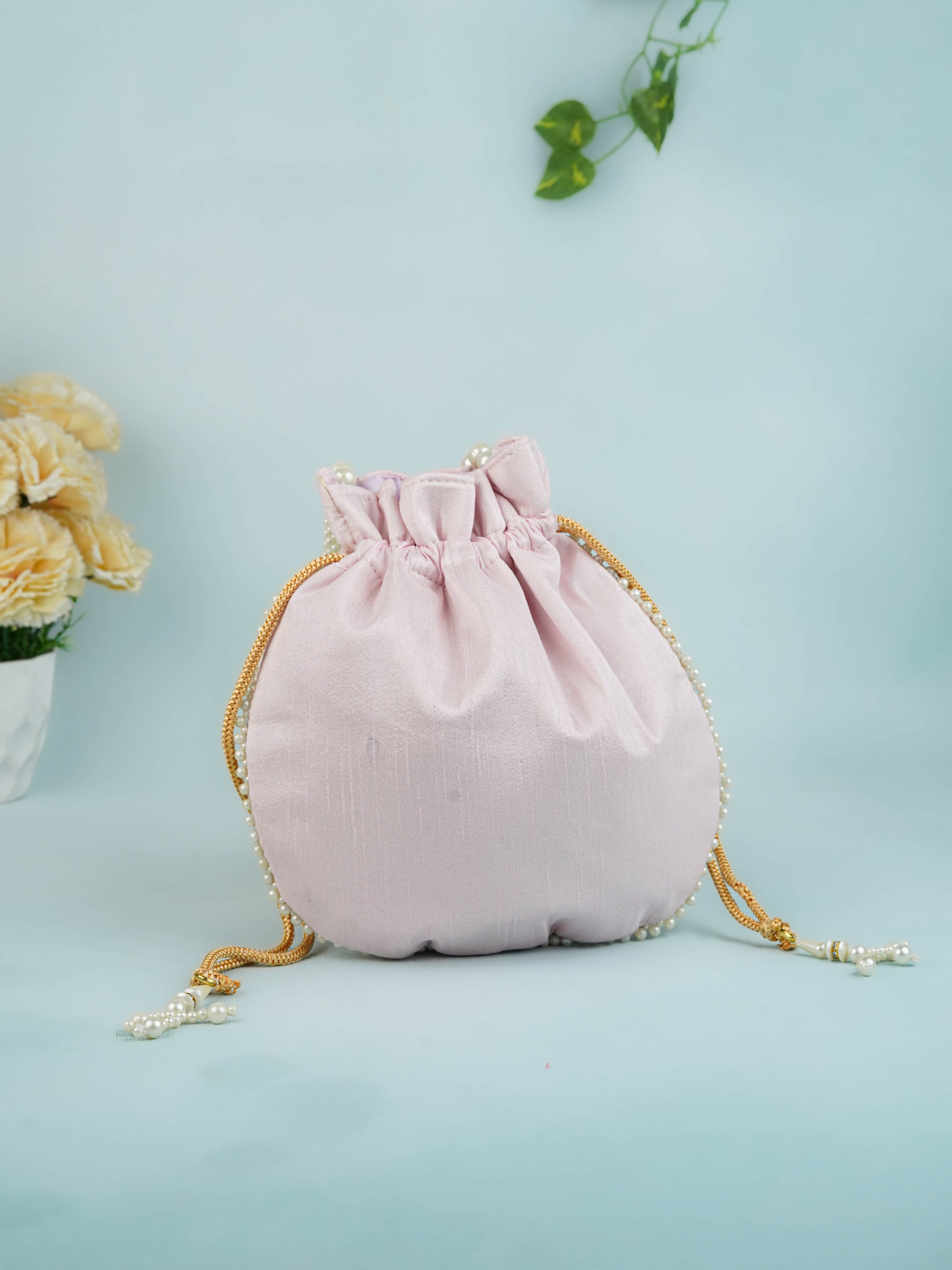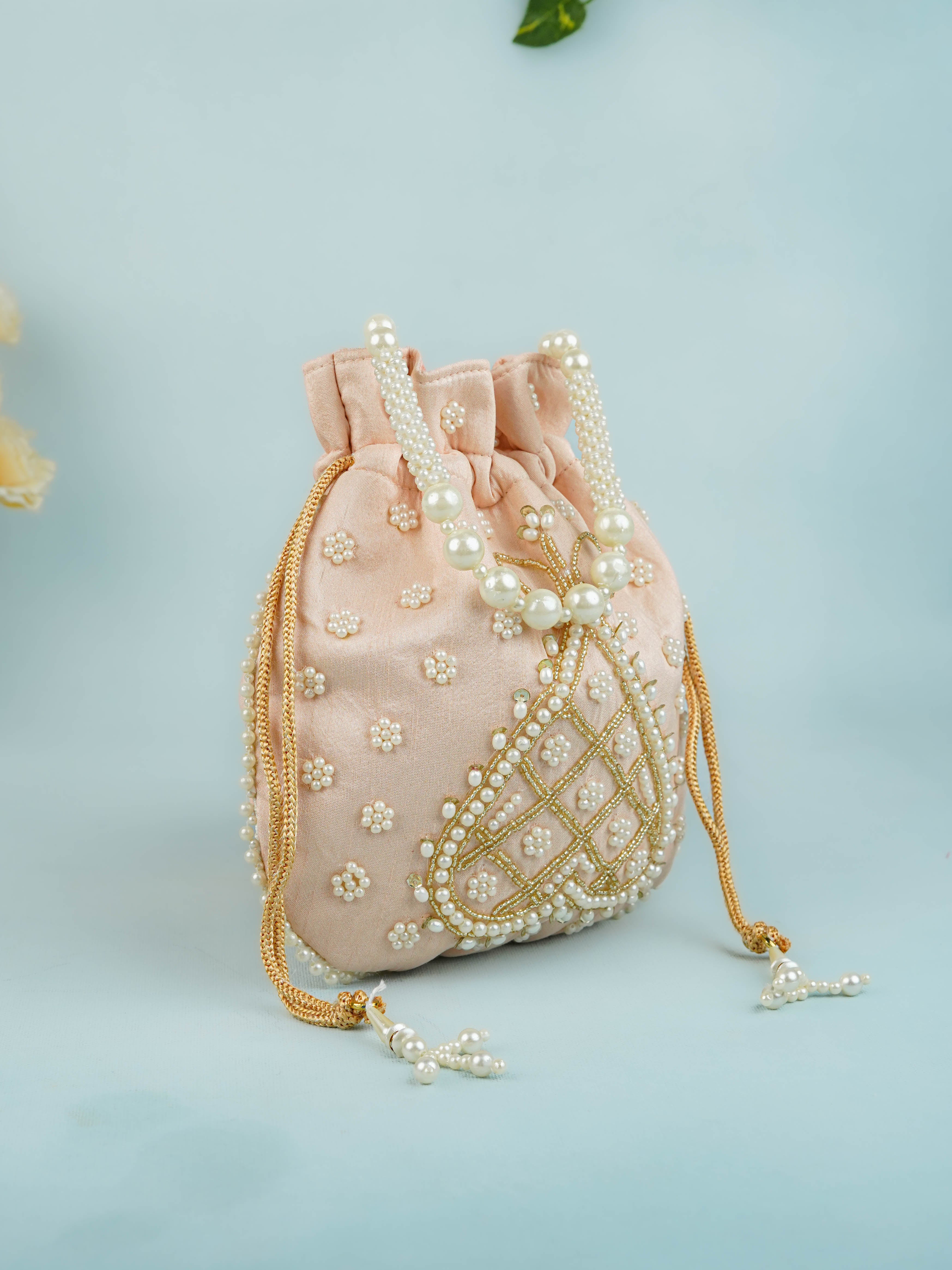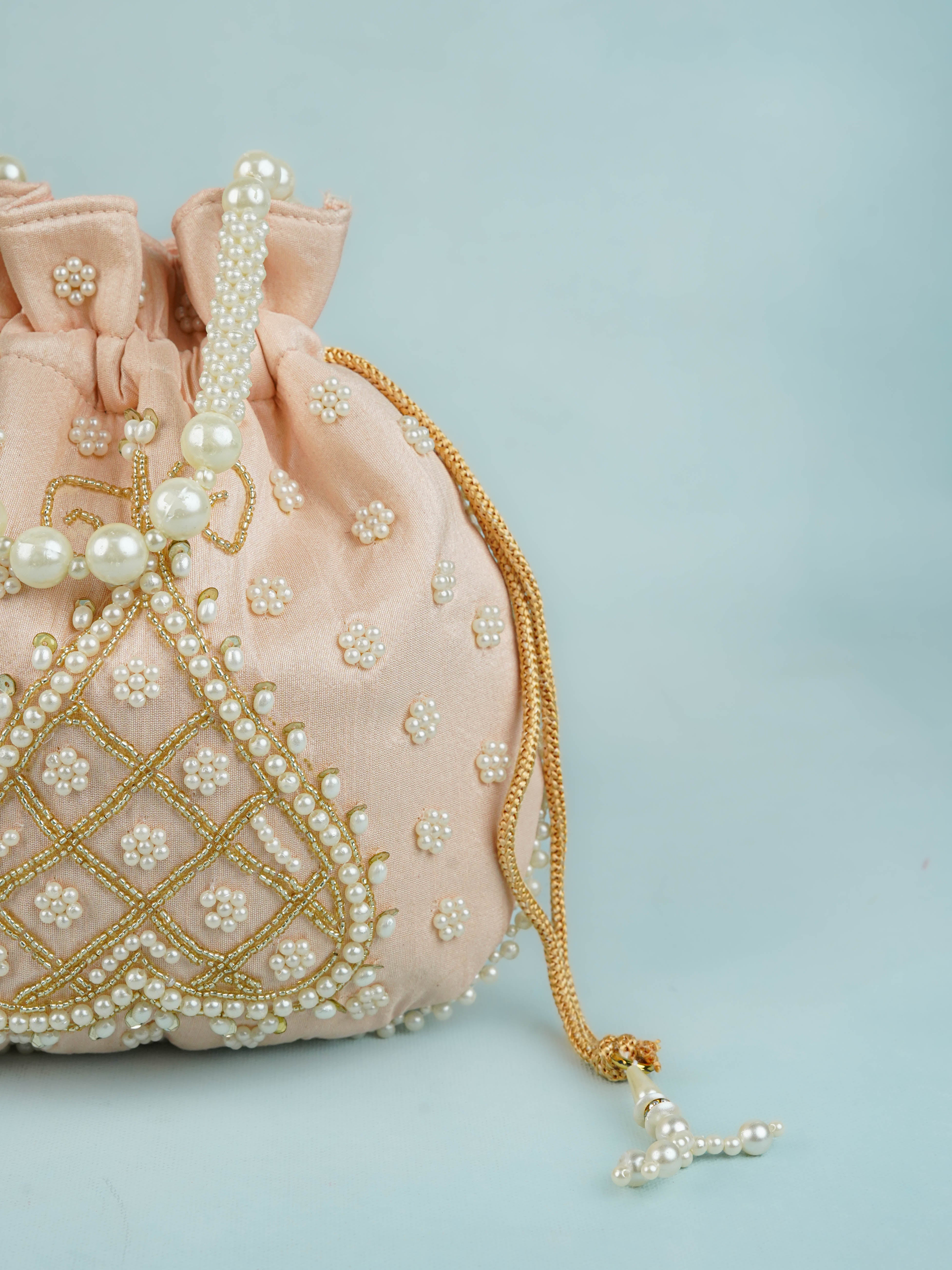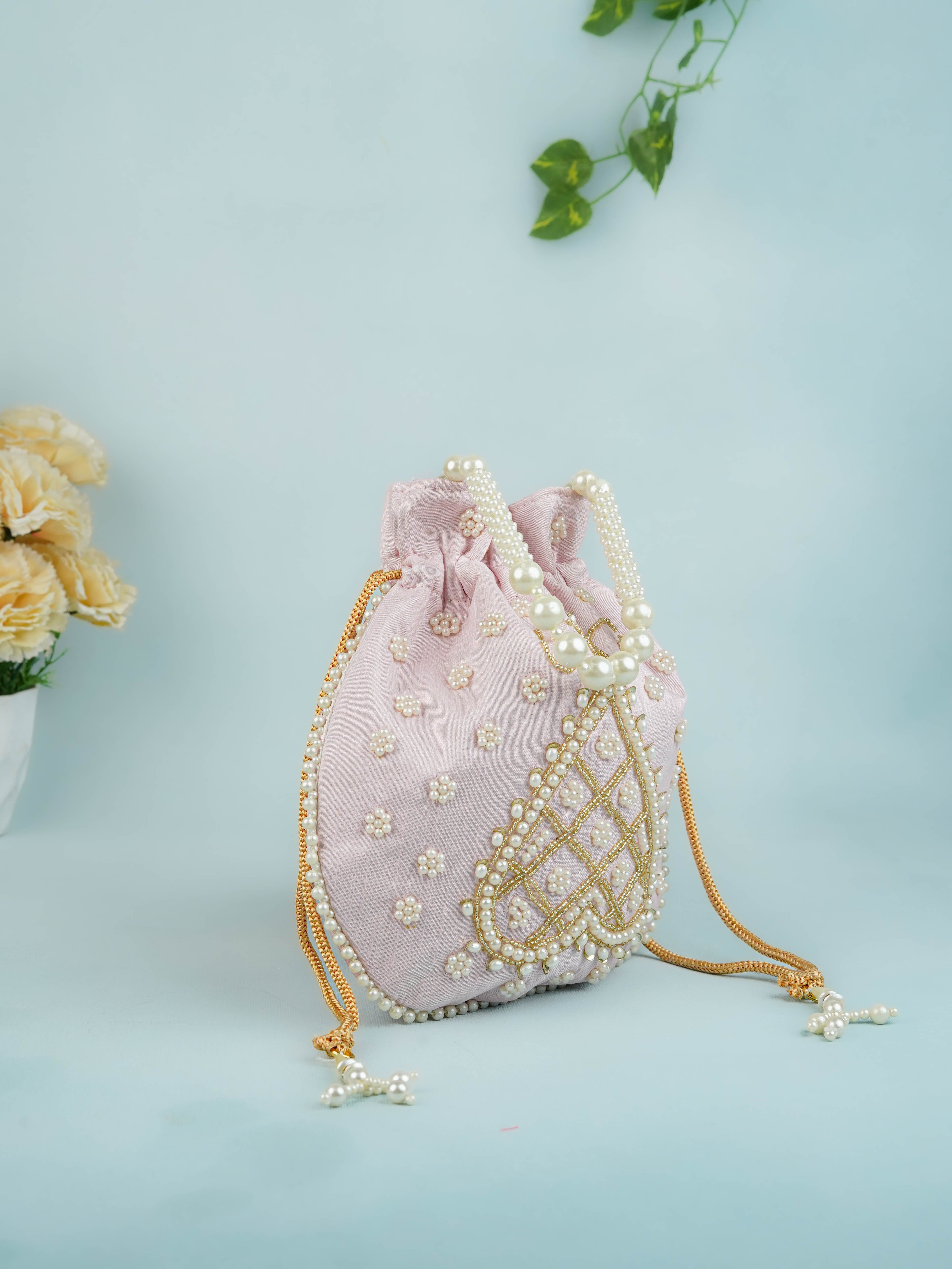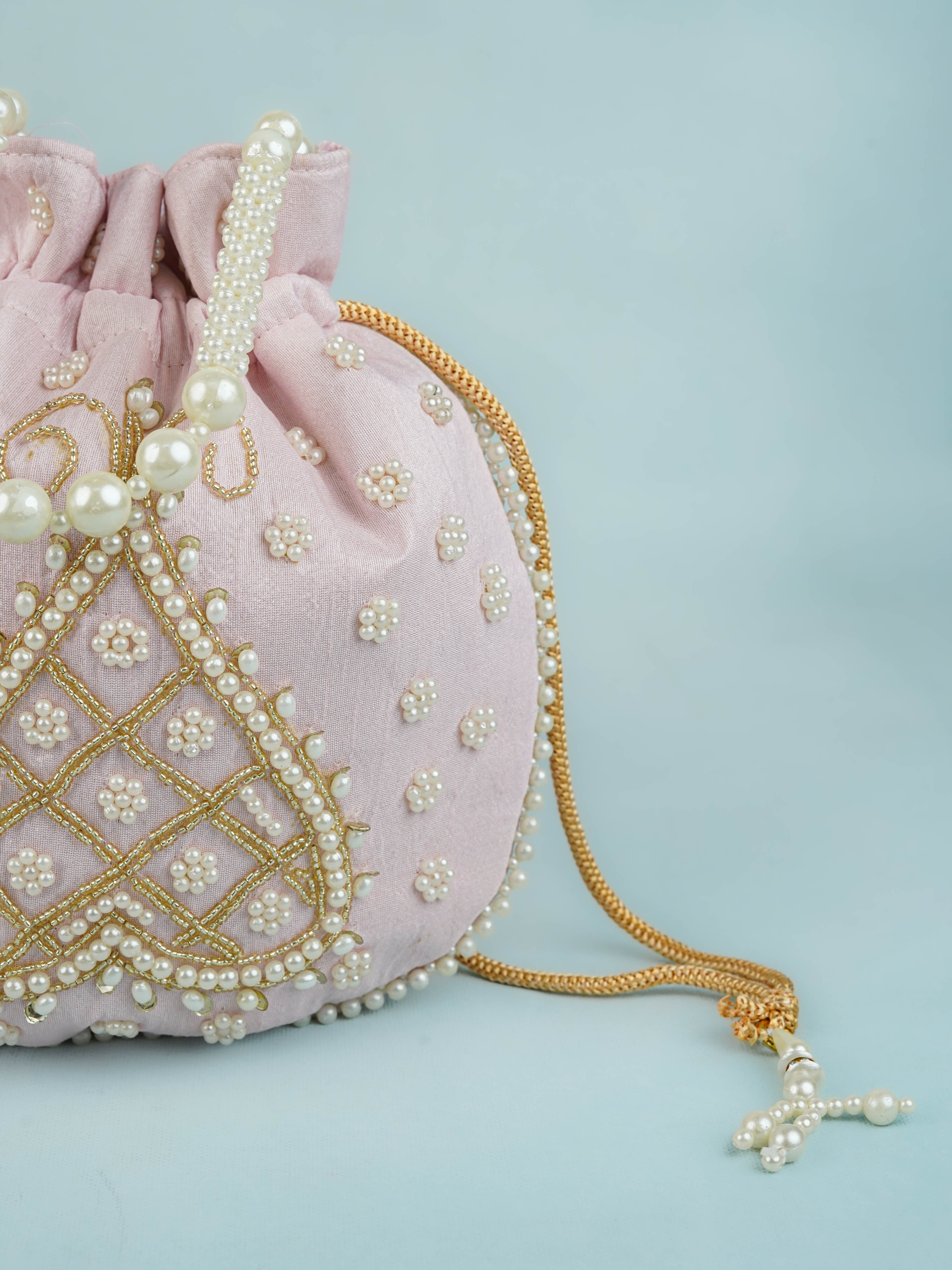 - It also has a pretty pearl beaded drawstring that is sturdy for closure.