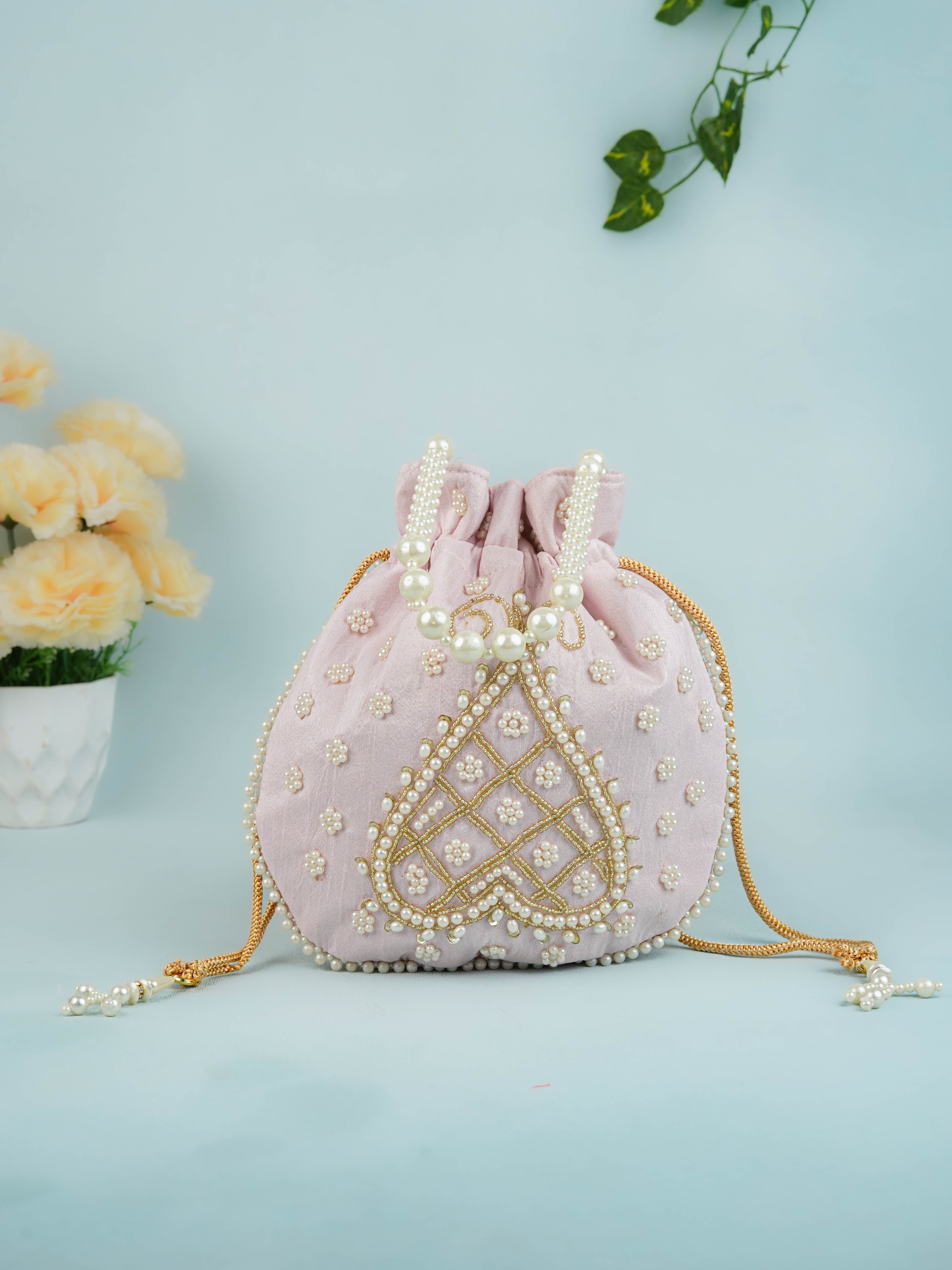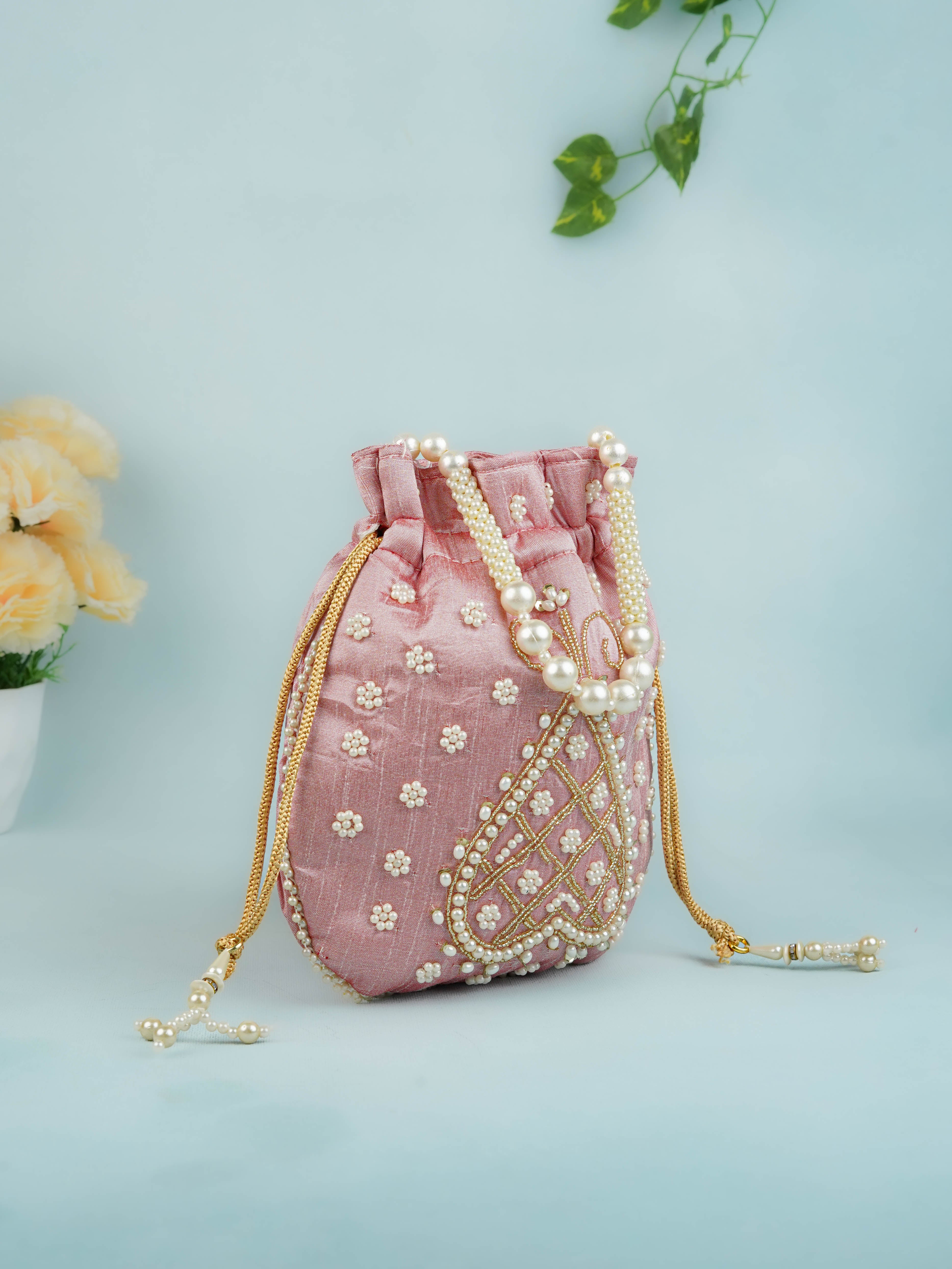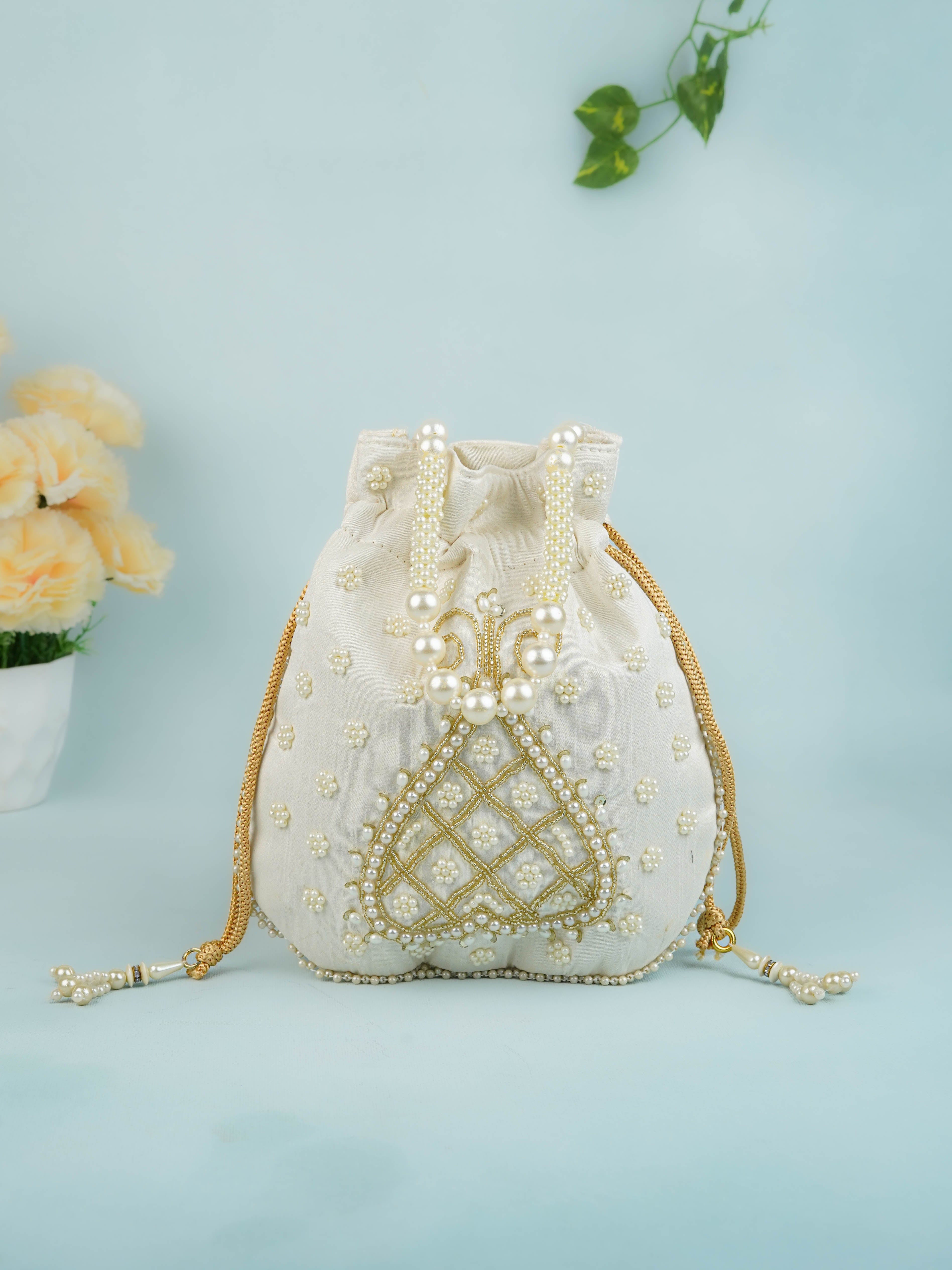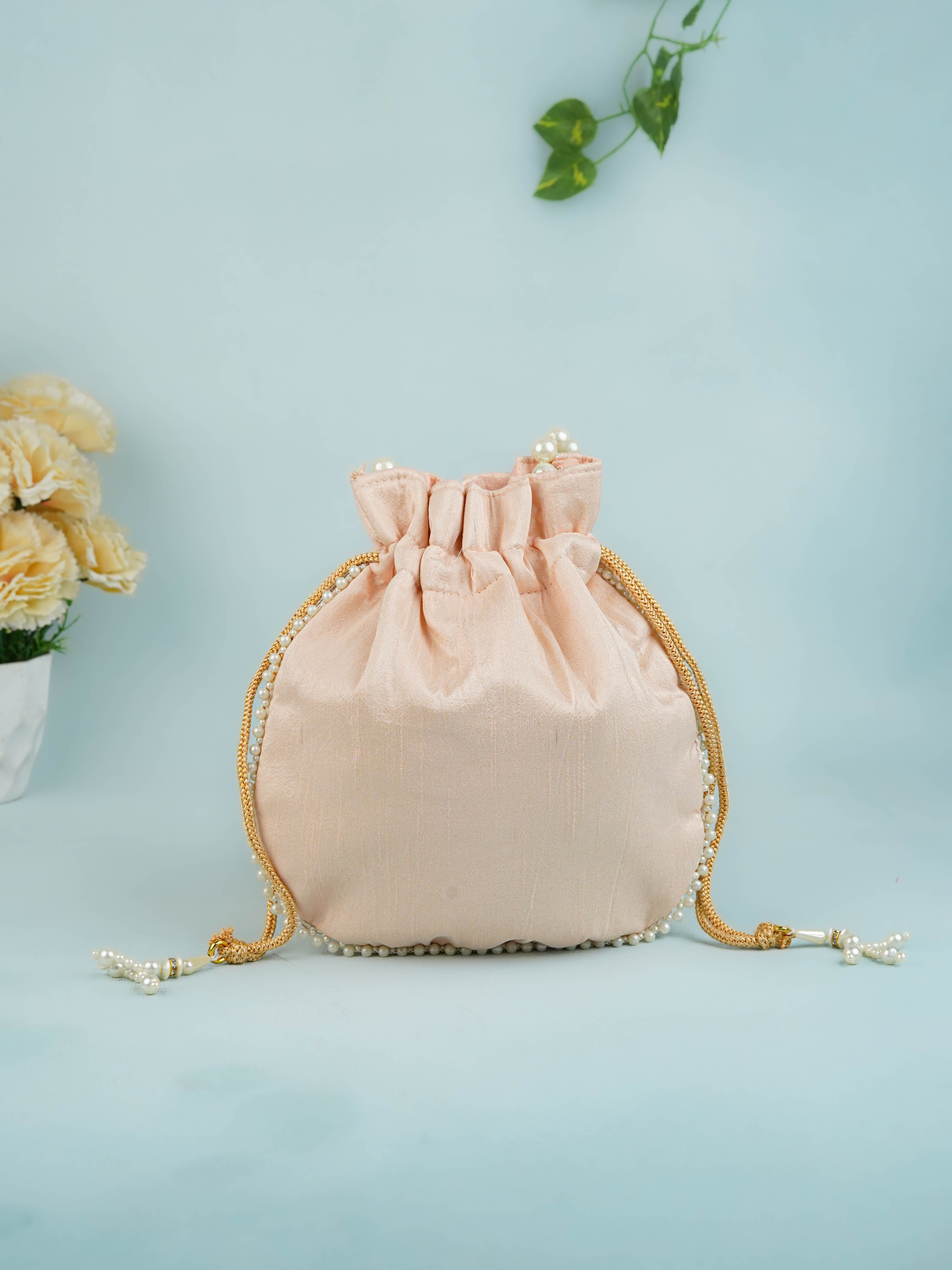 - It also has a pretty pearl beaded drawstring that is sturdy for closure.