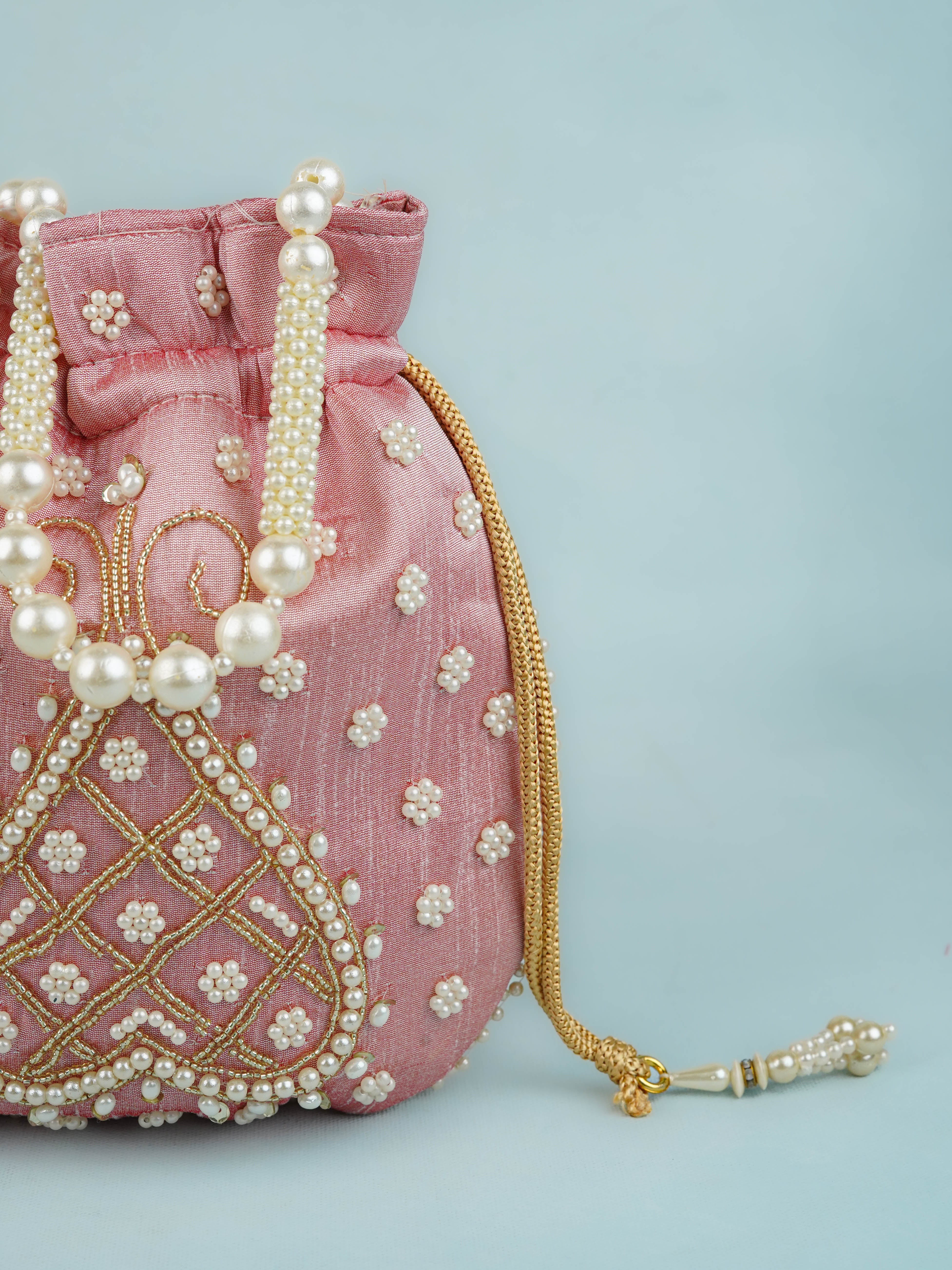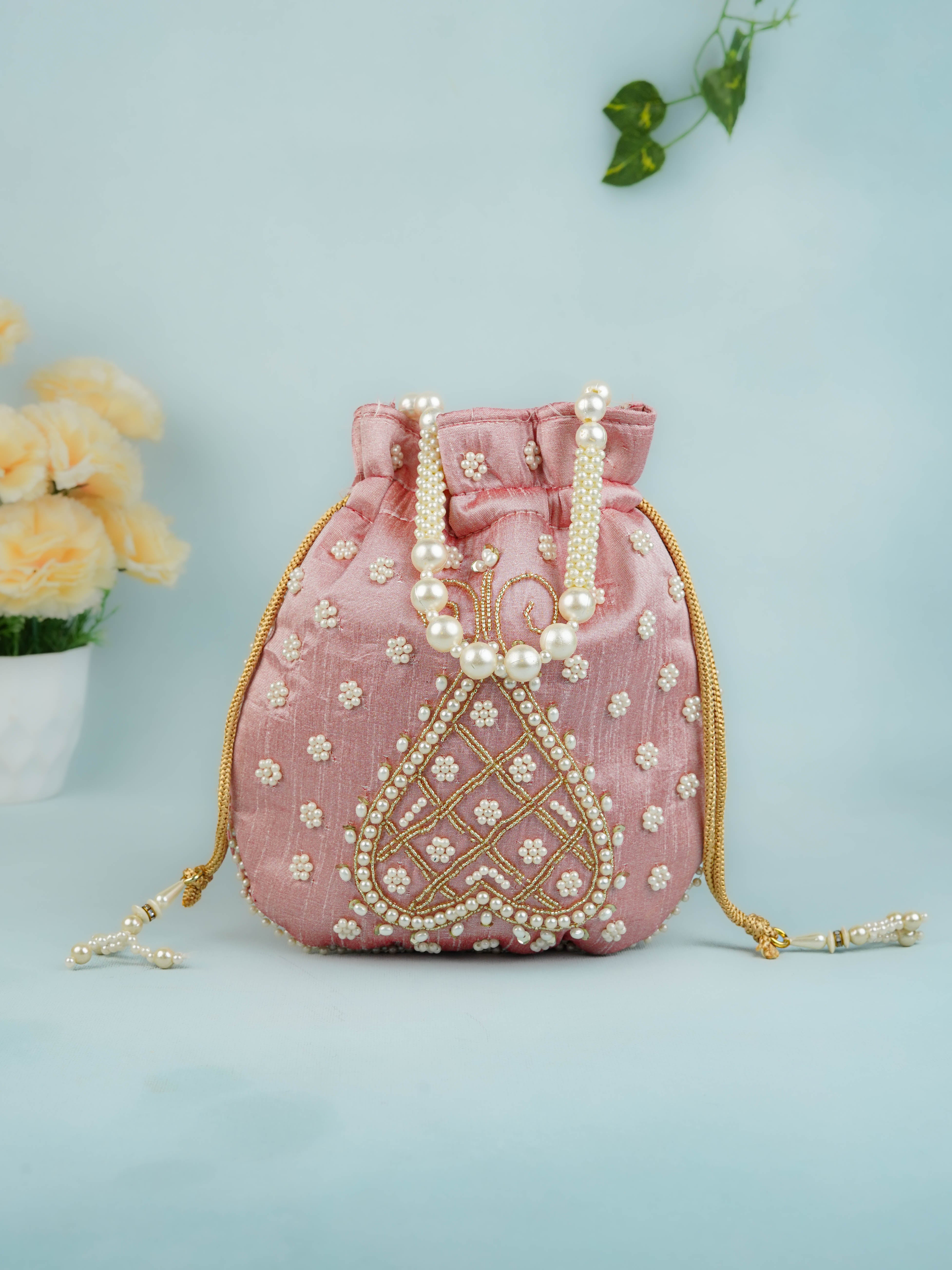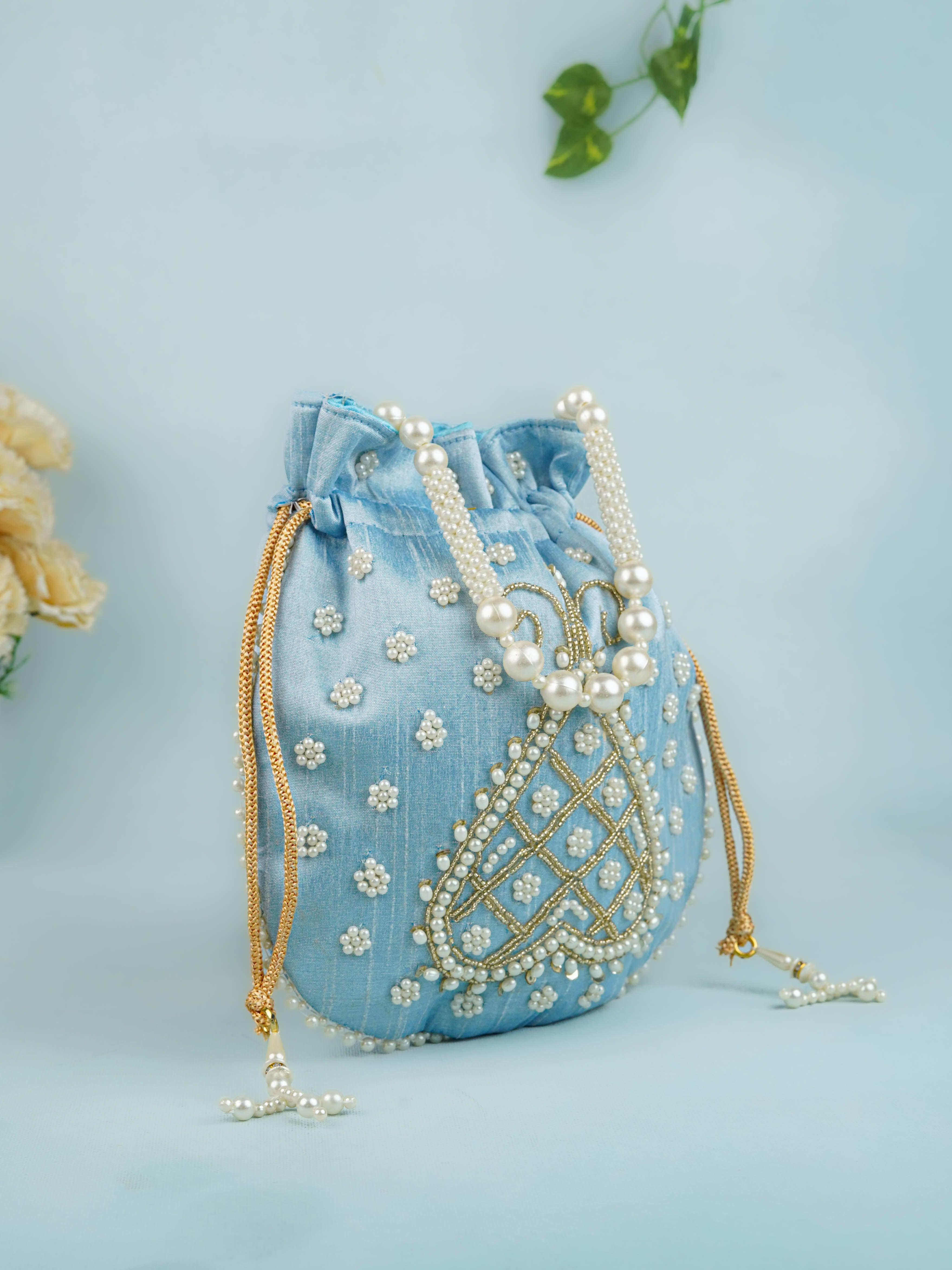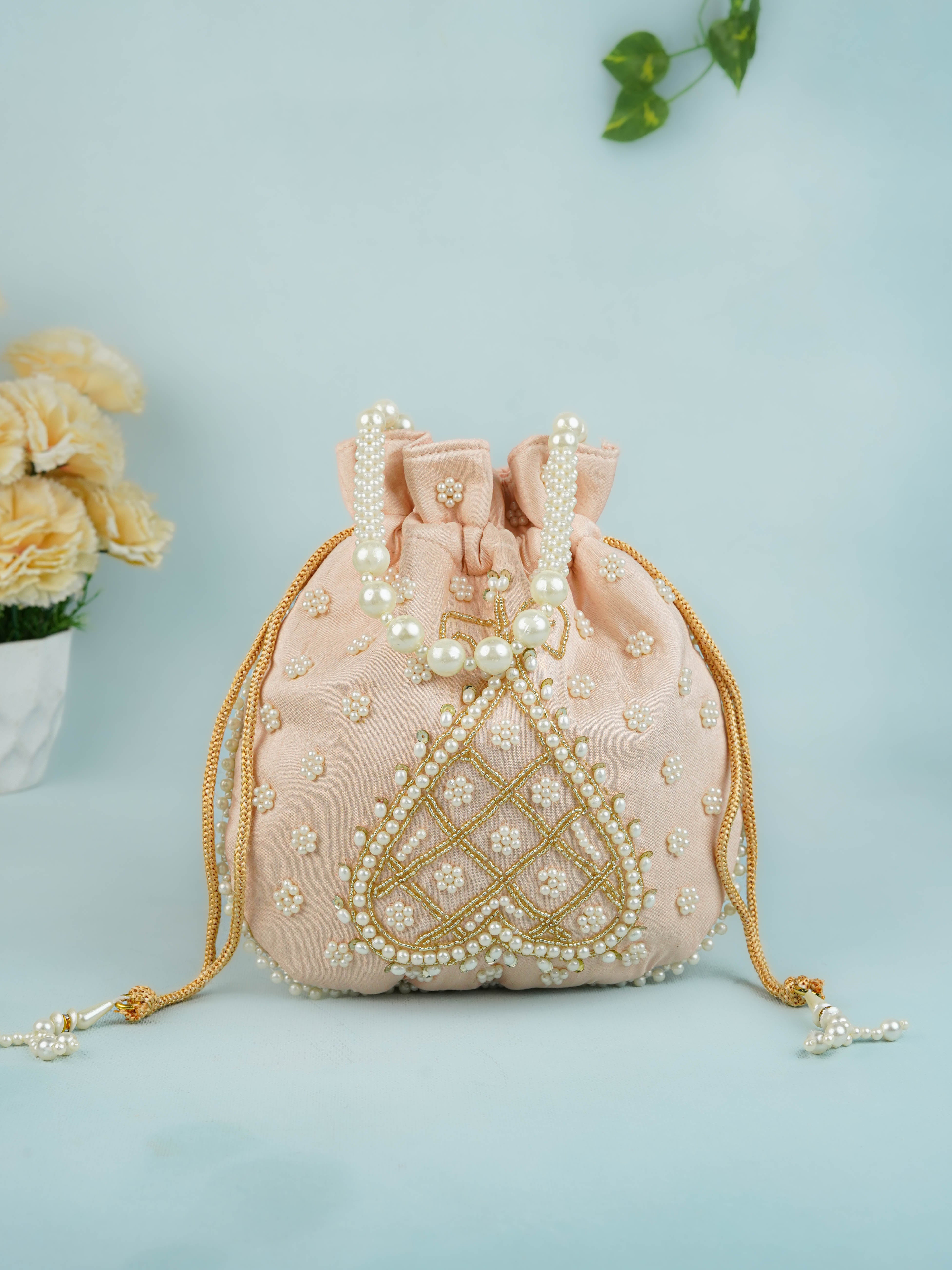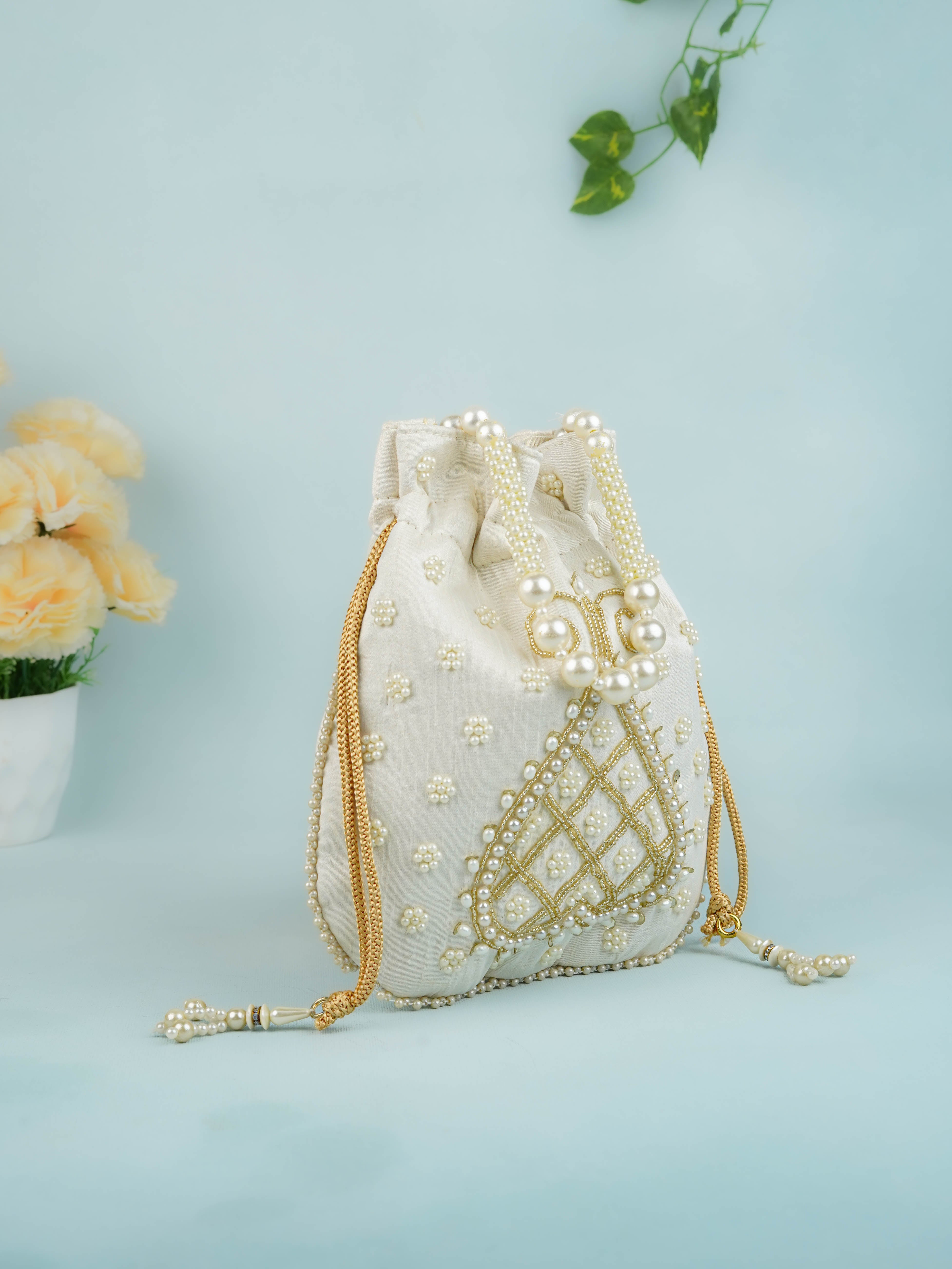 - It also has a pretty pearl beaded drawstring that is sturdy for closure.
