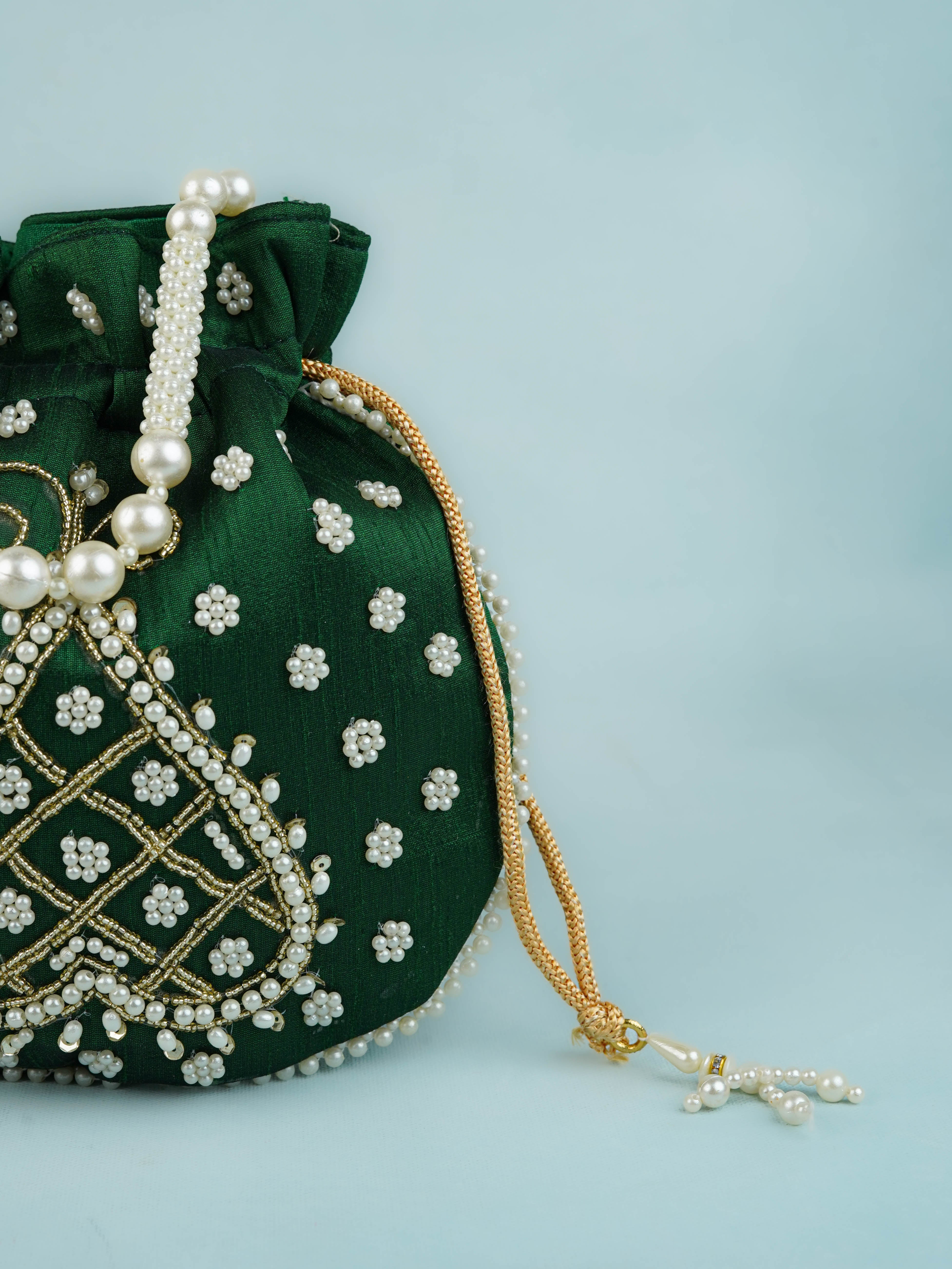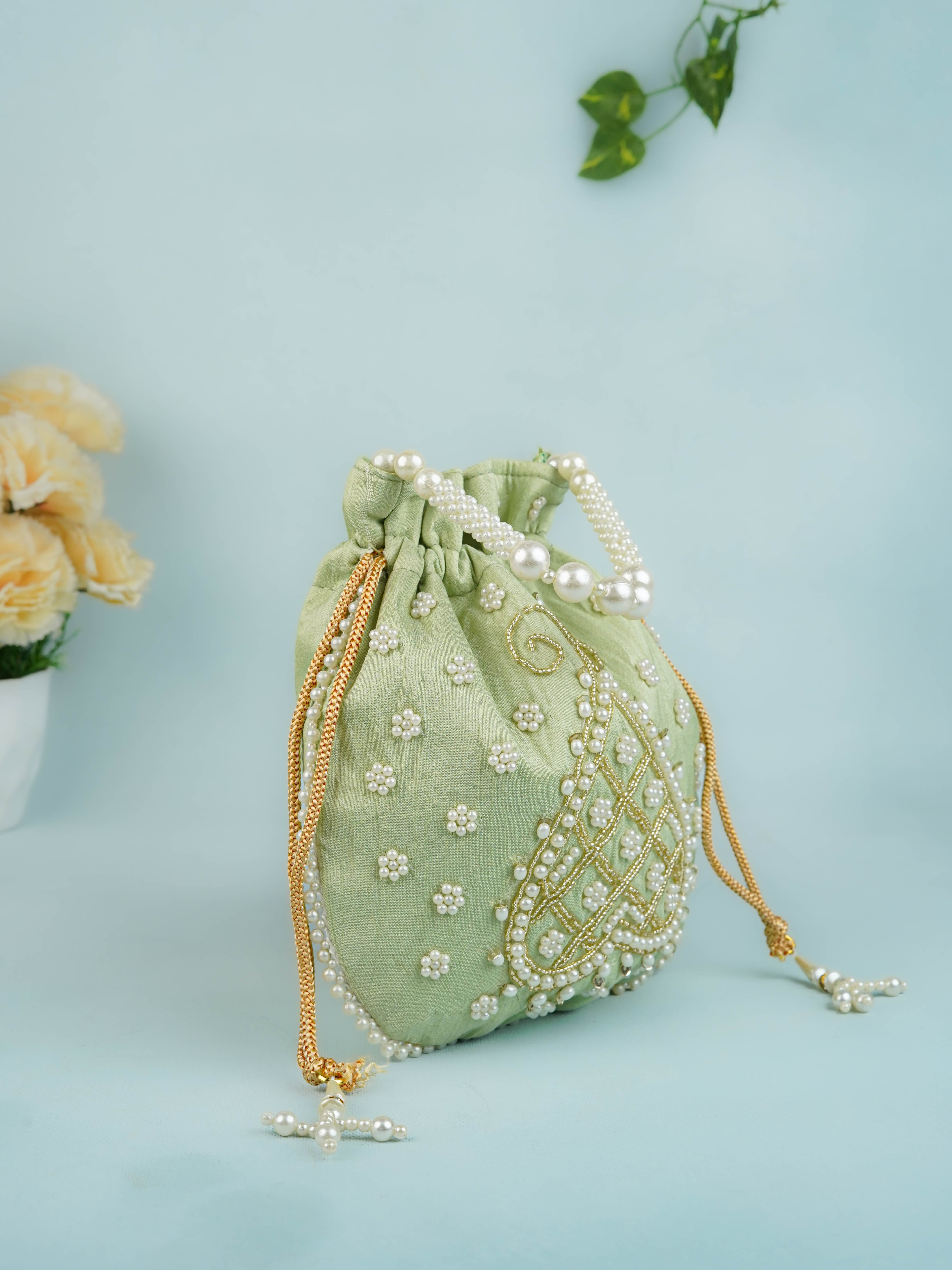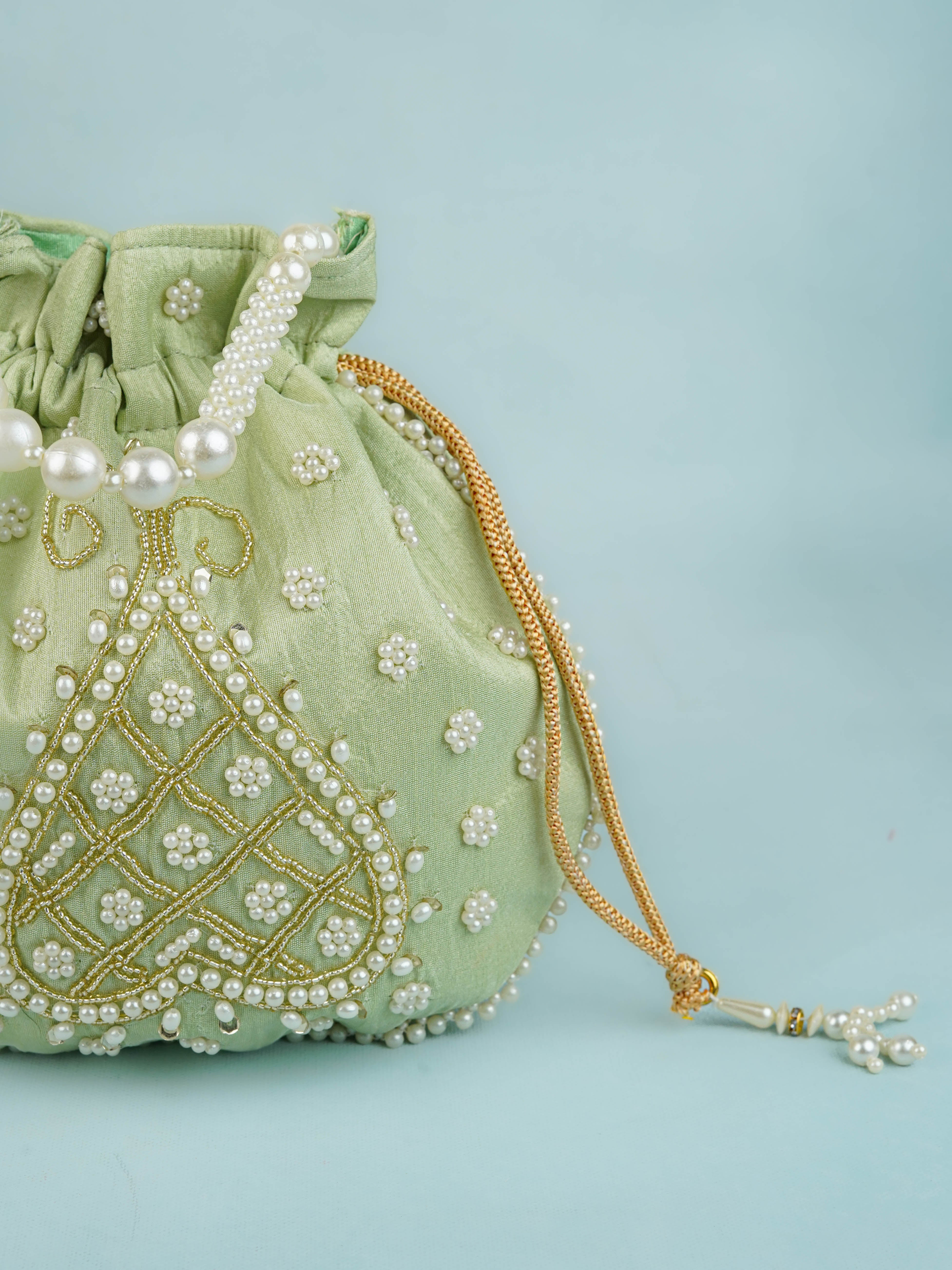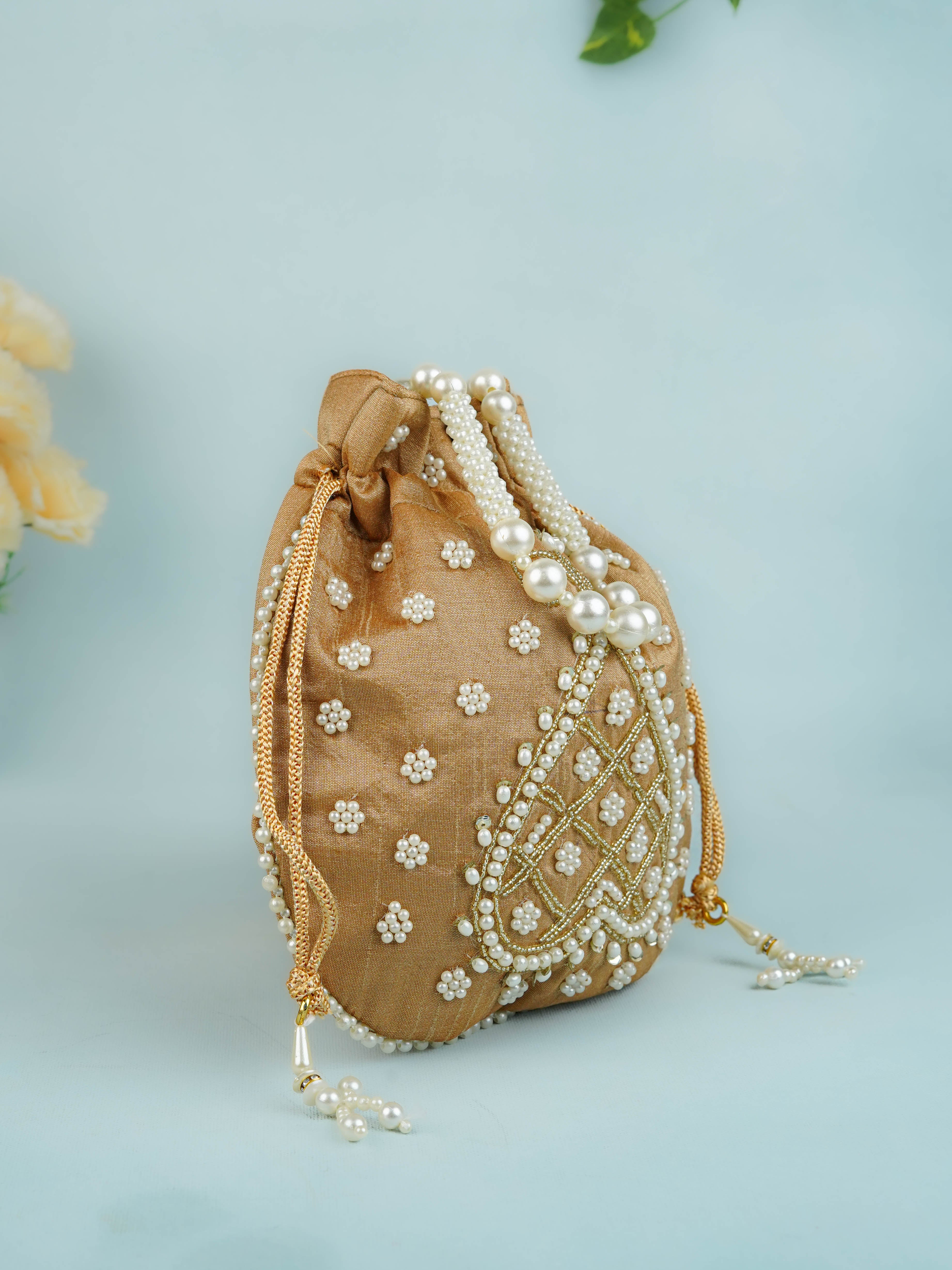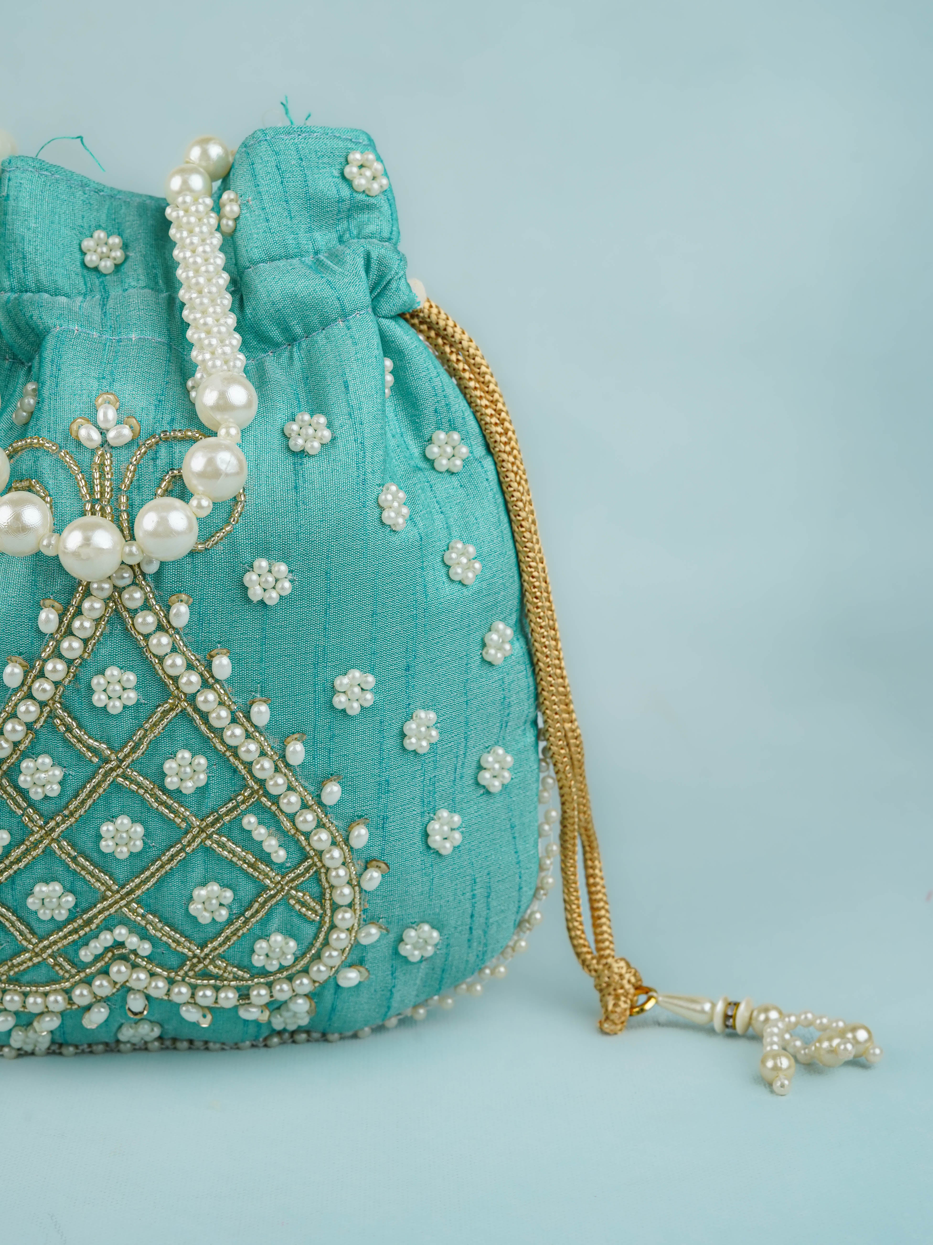 - It also has a pretty pearl beaded drawstring that is sturdy for closure.
