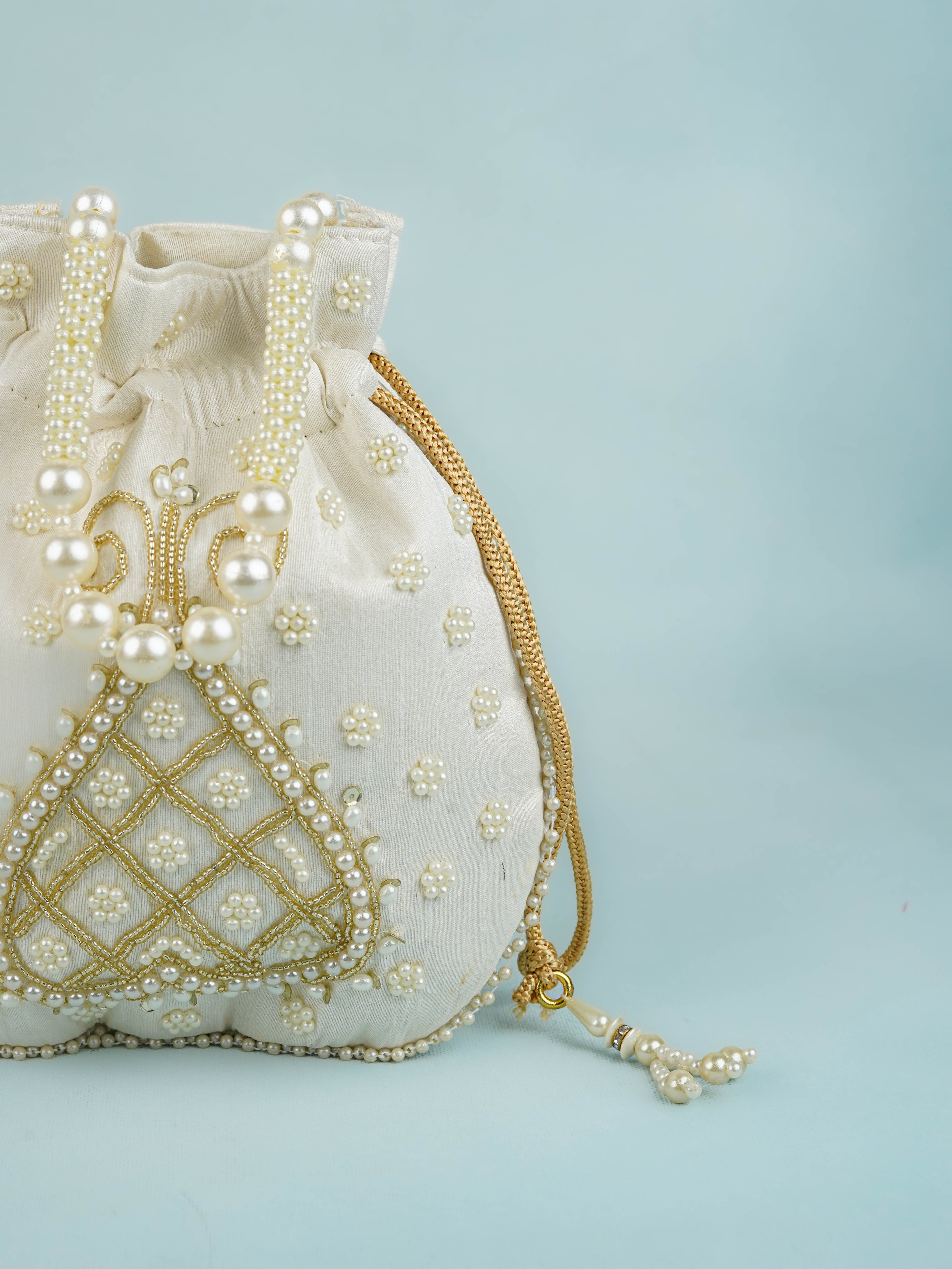 - It has very beautiful pearl bead work all Over the Bag and has a pearl handle.