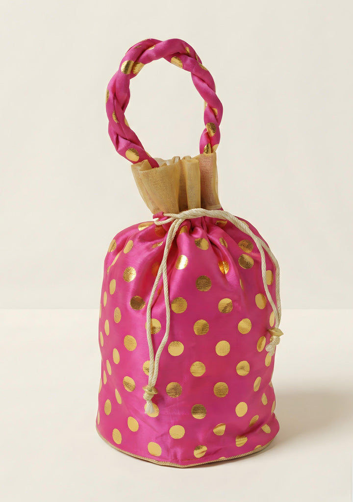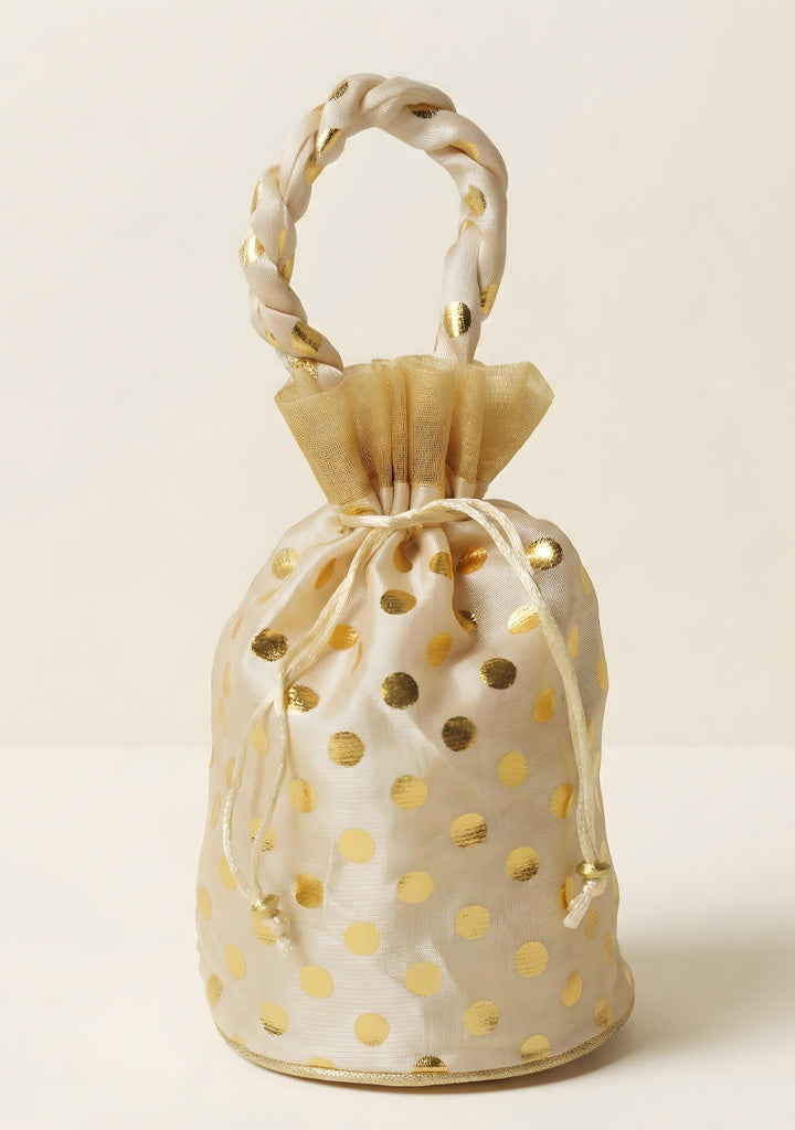 Potli Bag with Golden Dots and round Base - 9Inches - WBG0113