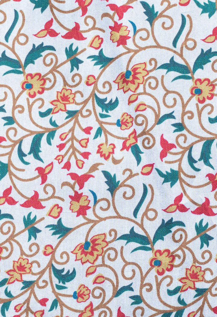 - Design: Printed Flower with Green Leaves and Brown vines.