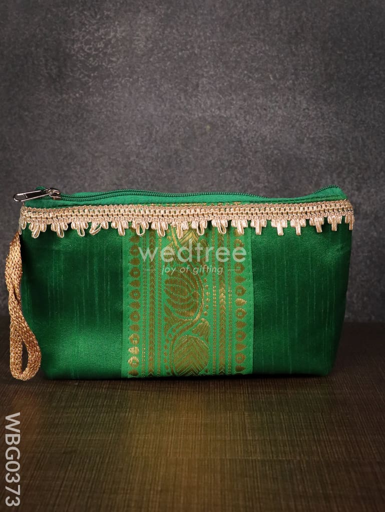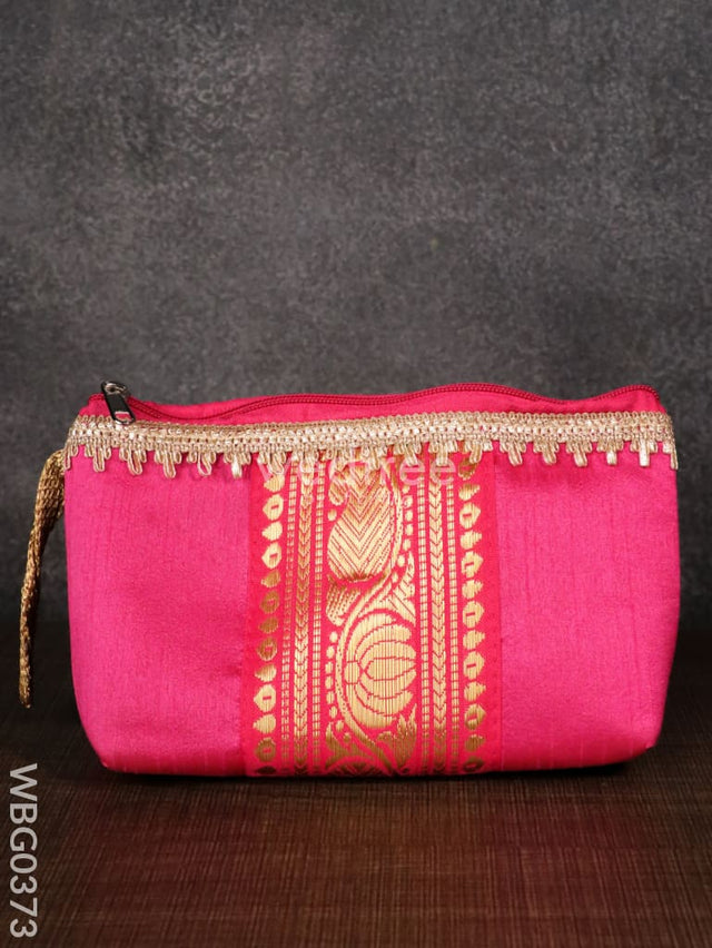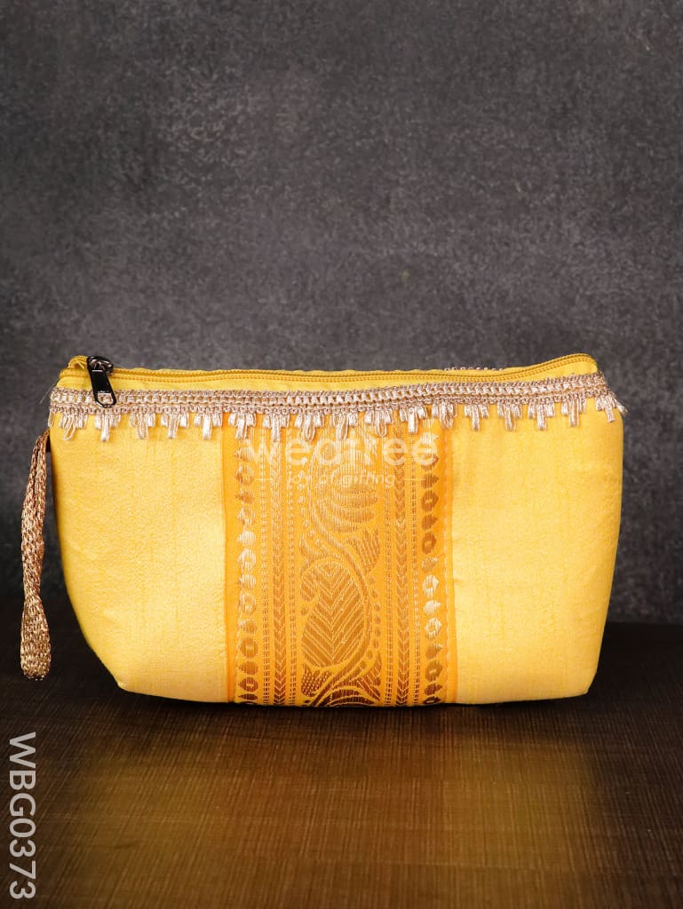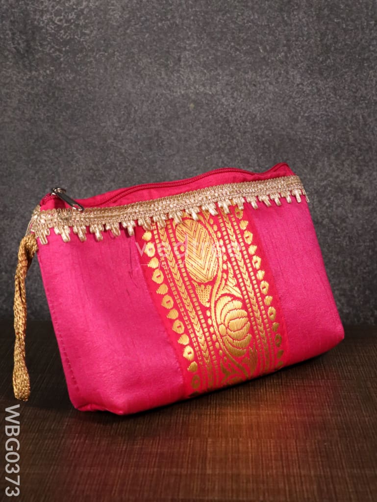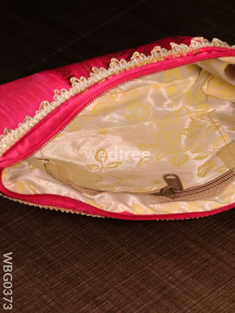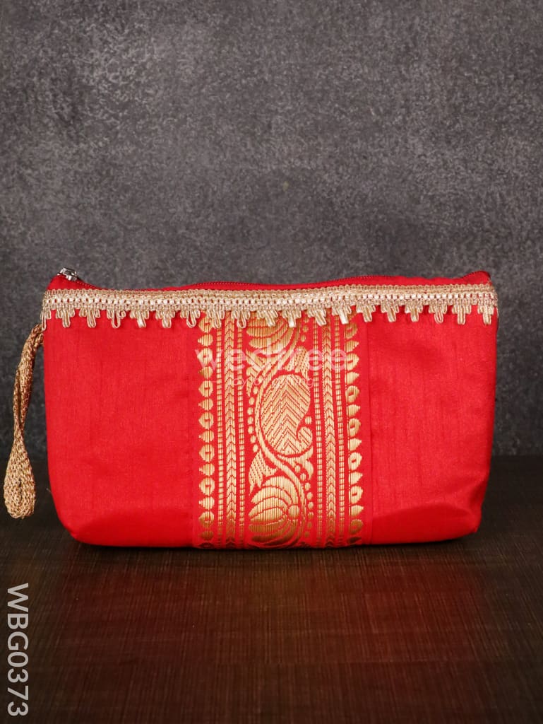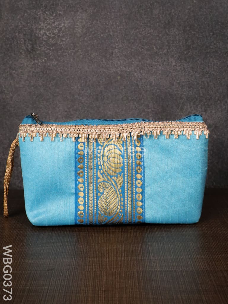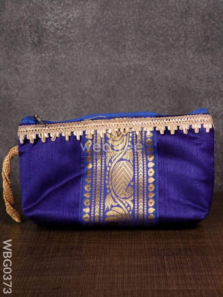 - A classic traditional style purse with amazing mango print zari and a golden lace.