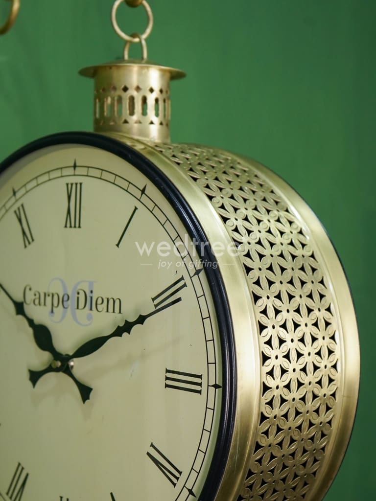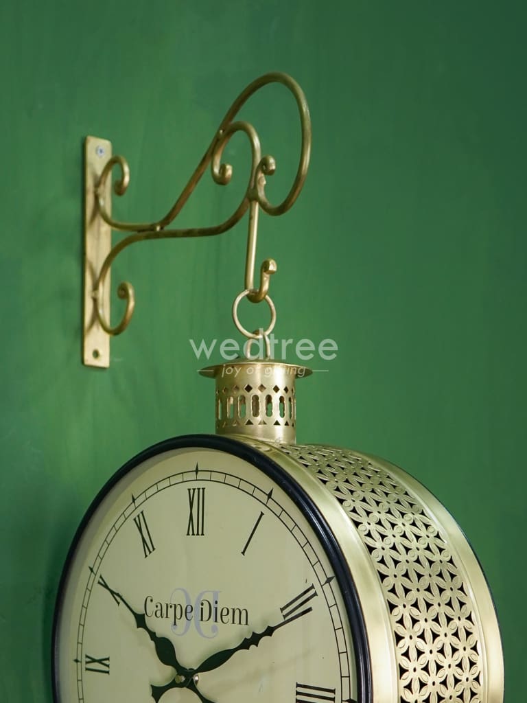 - Railway clocks come with 2 dials on either sides - one with a number time marker and the other in roman time marker.