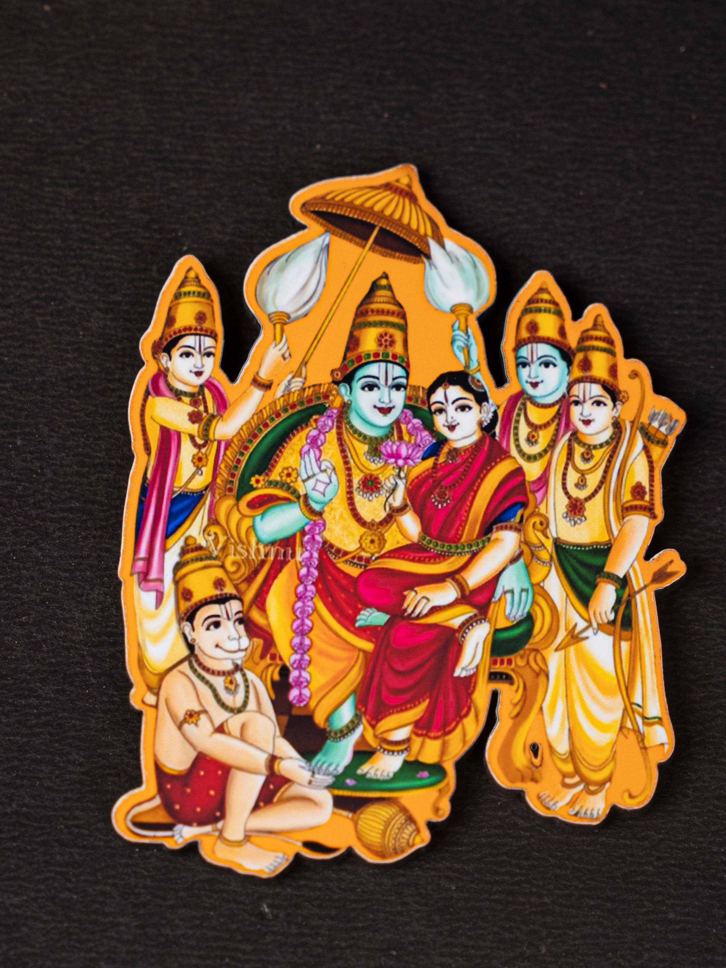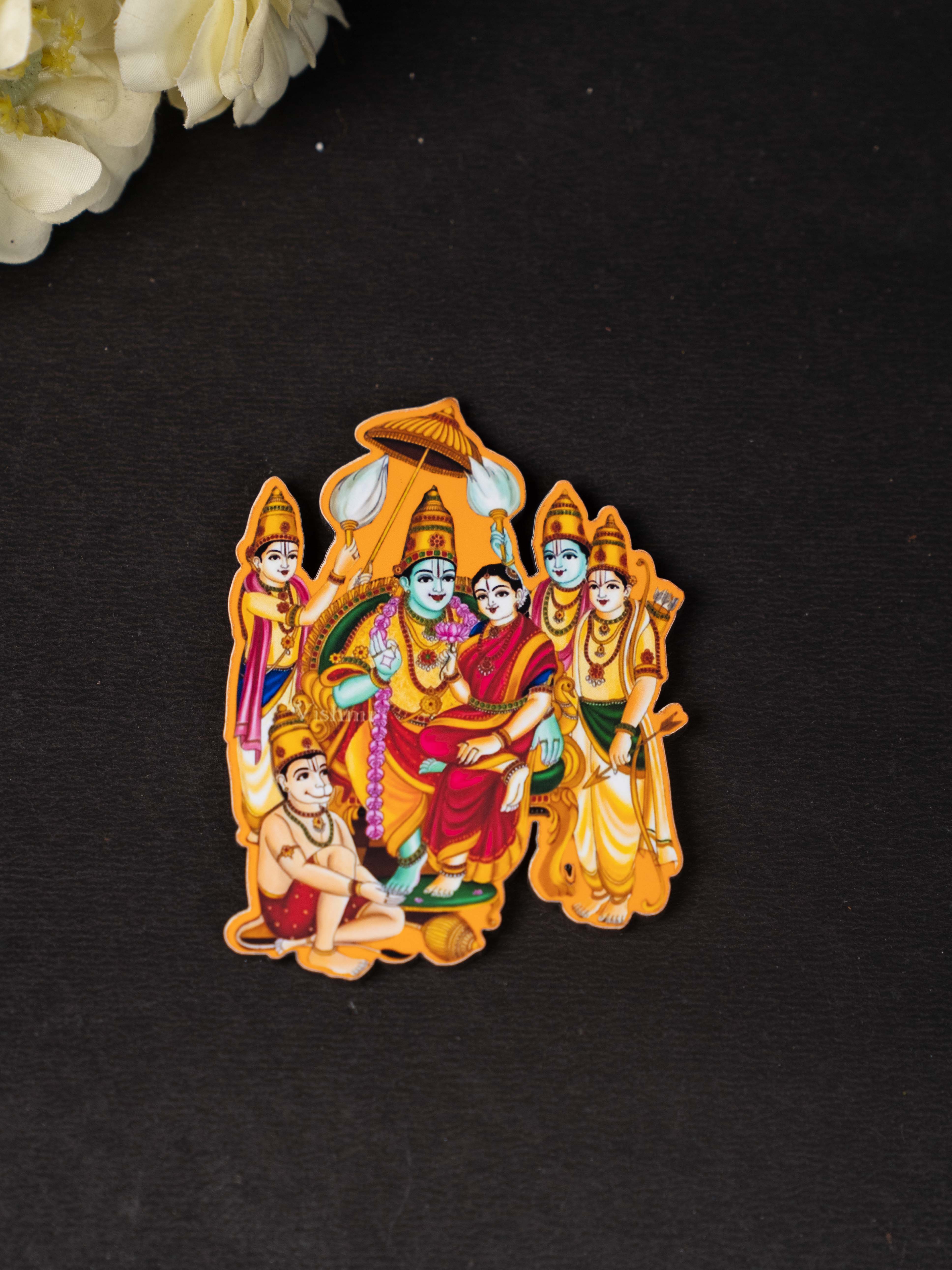 - Bring Home the Celestial Blessings of Ram Darbar with this Beautifully Designed Fridge Magnet, featuring Lord Rama with his Divine consort Sita, devoted brother Lakshmana, and the ever-faithful Hanuman.