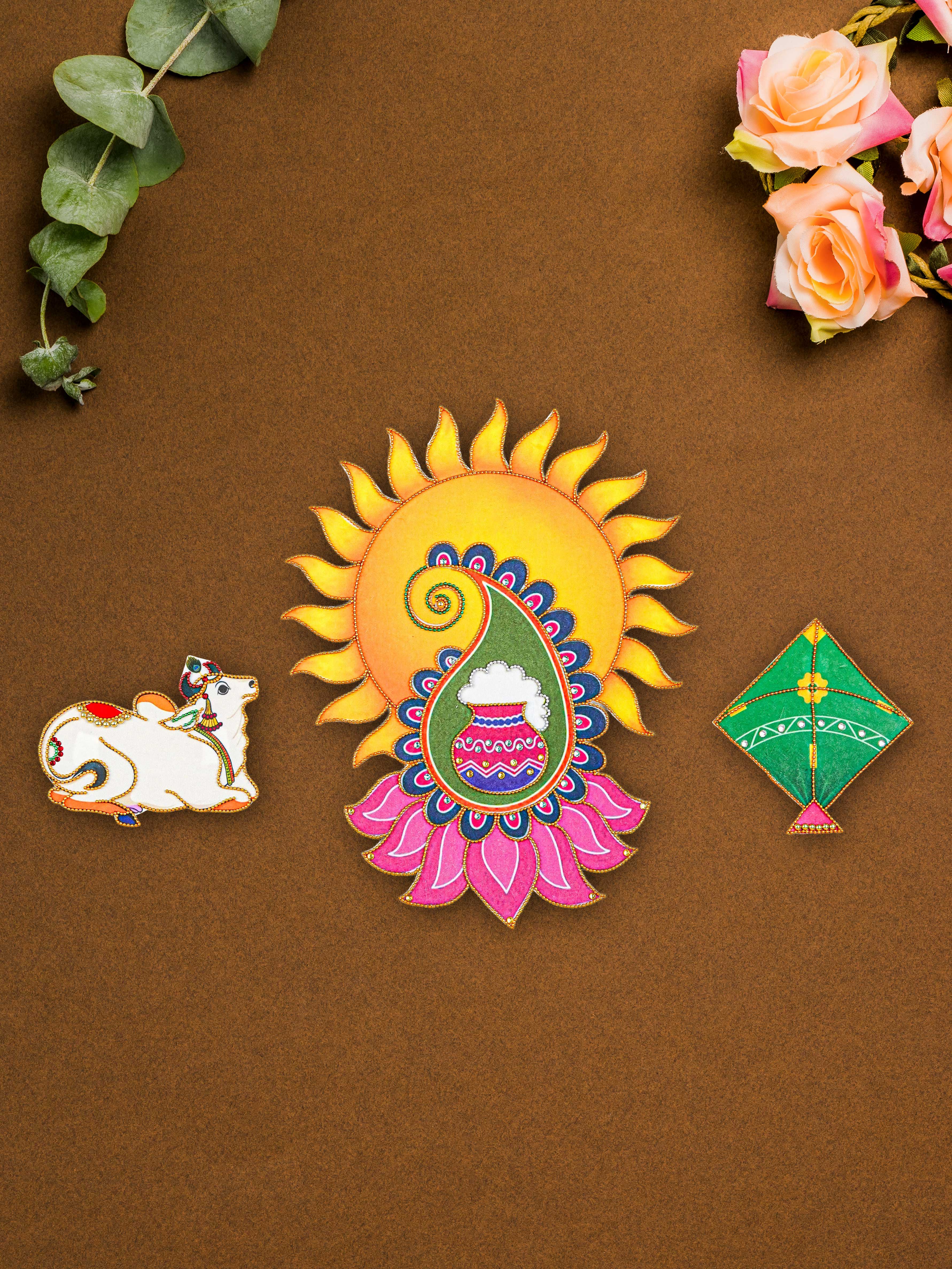 - Comes with the Sun, Pongal Pot, Sacred Cow and Kite - Creating a Harmonious, Colorful and Deeply Festive Composition.