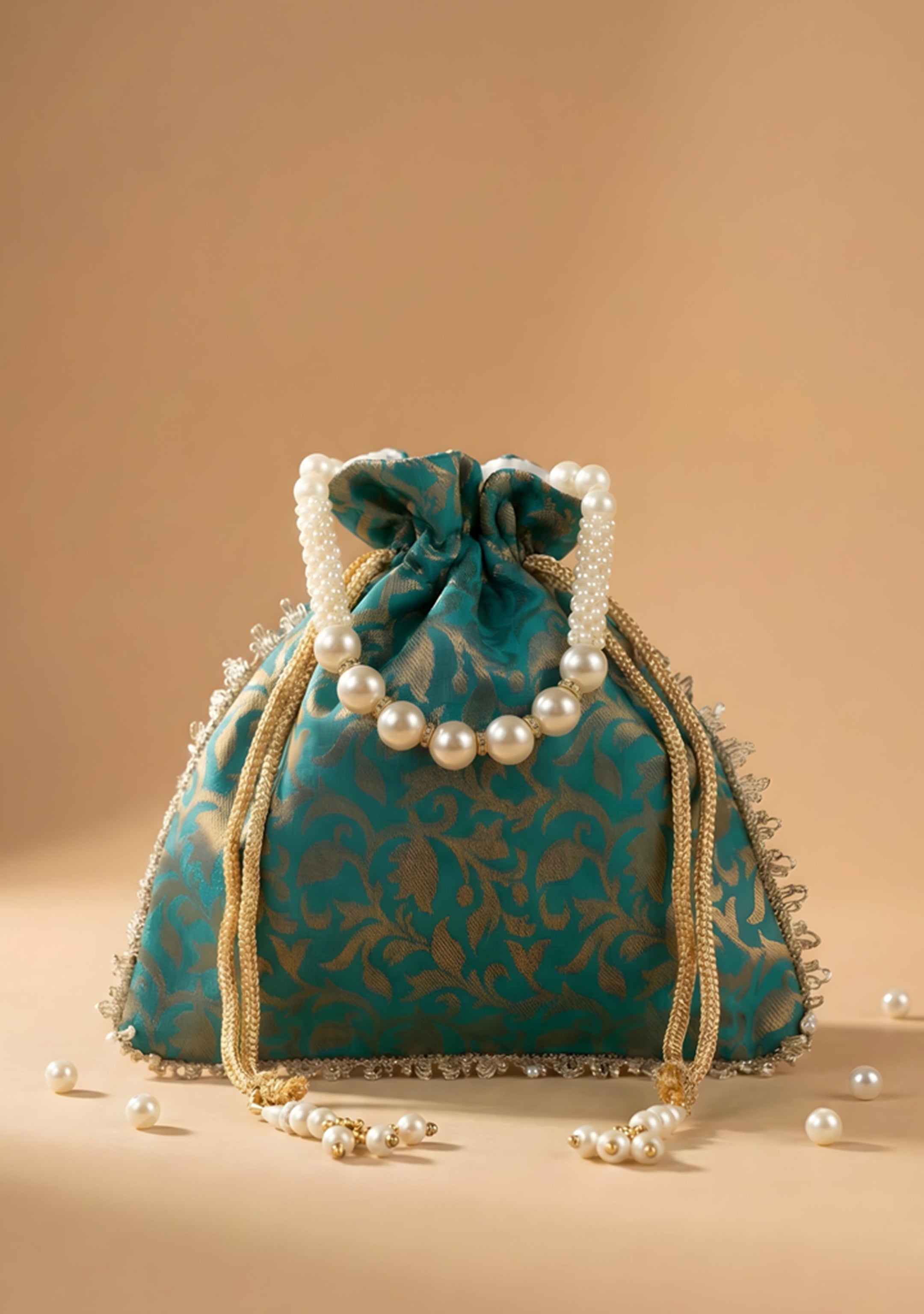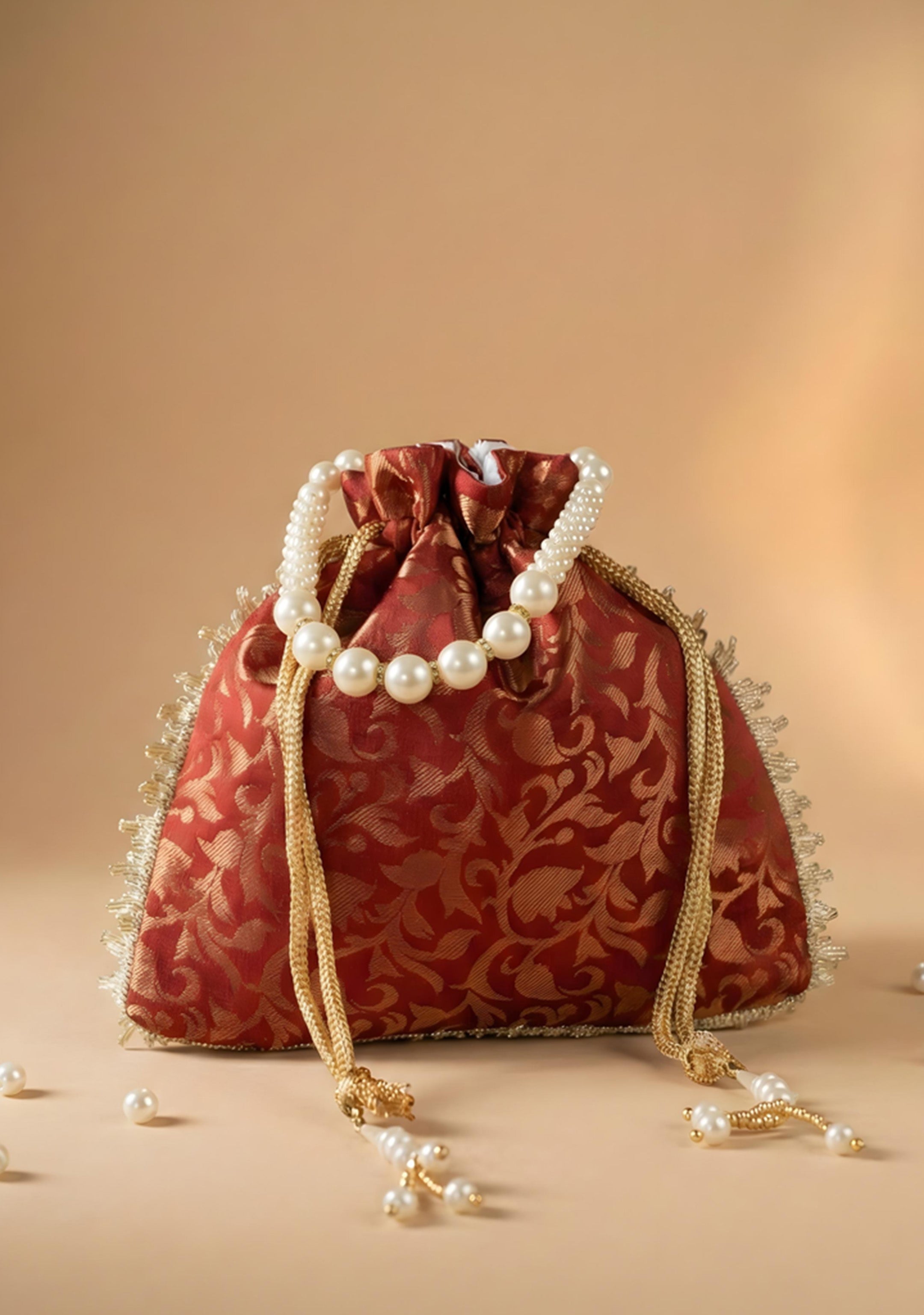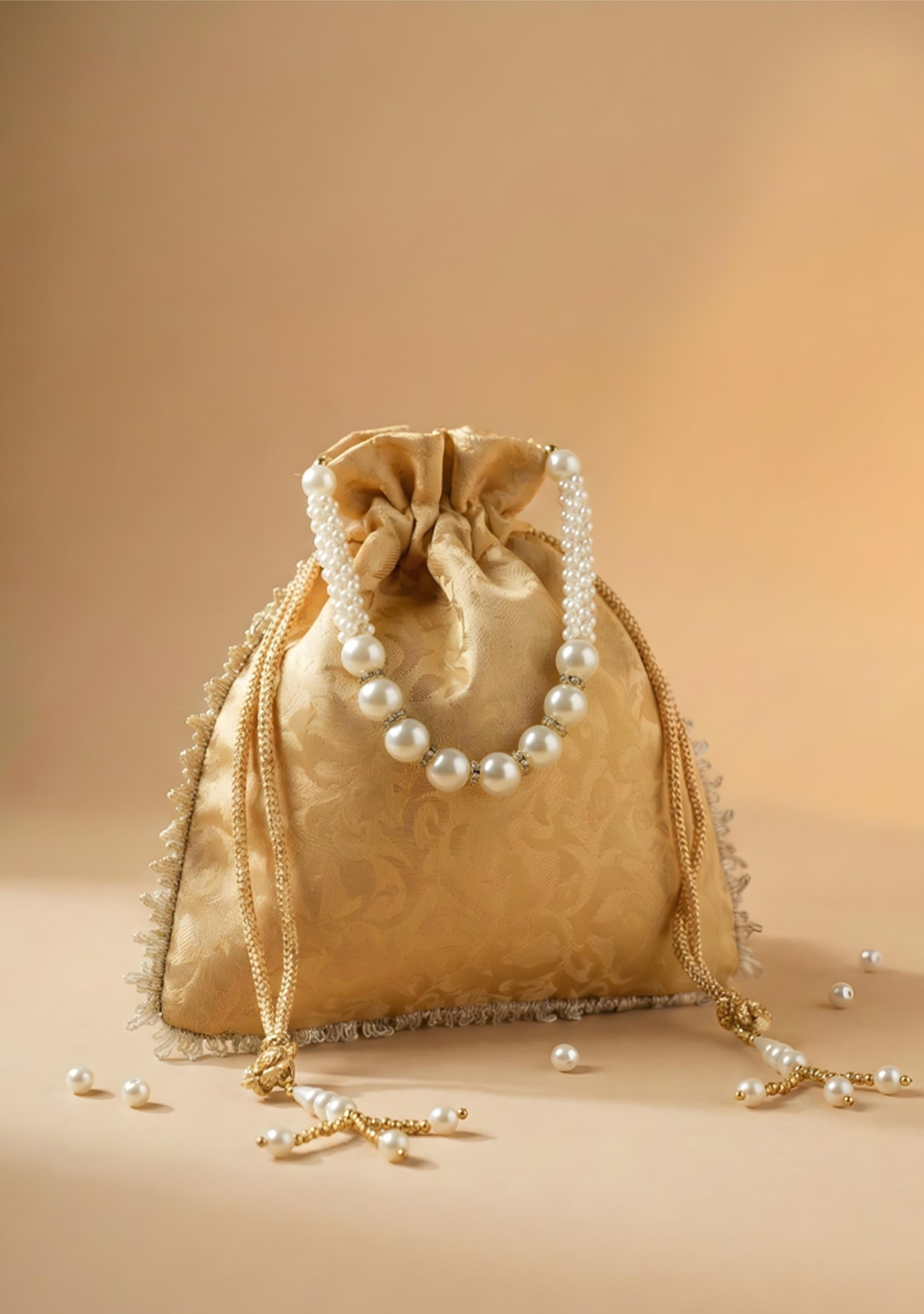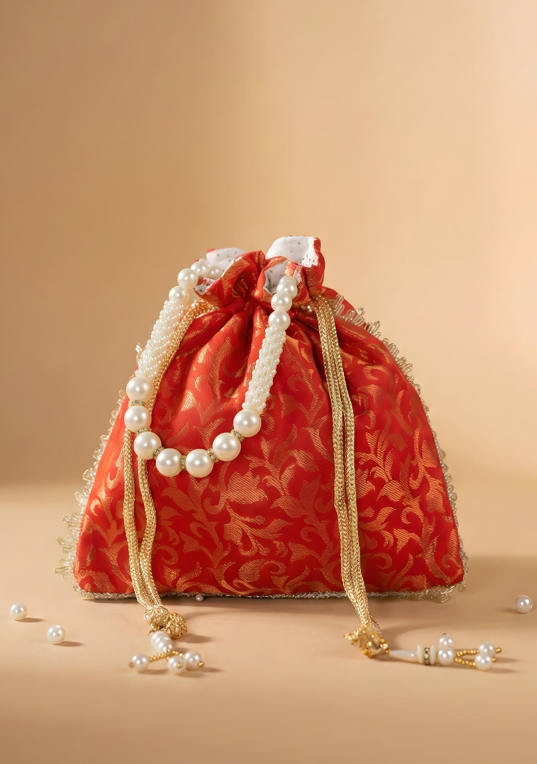 - Check out this cute and lovely potli bag that comes with golden lace work in the borders.