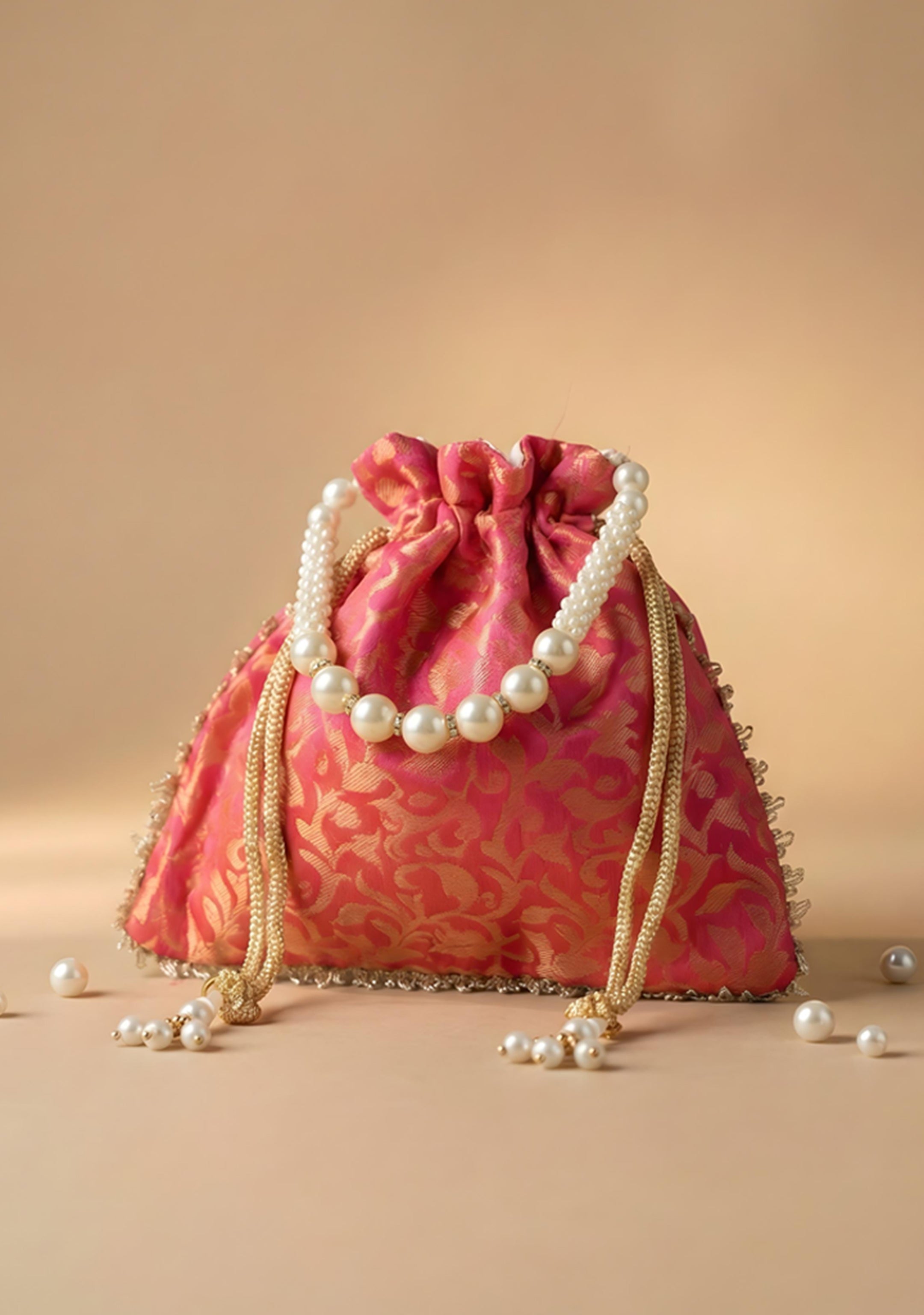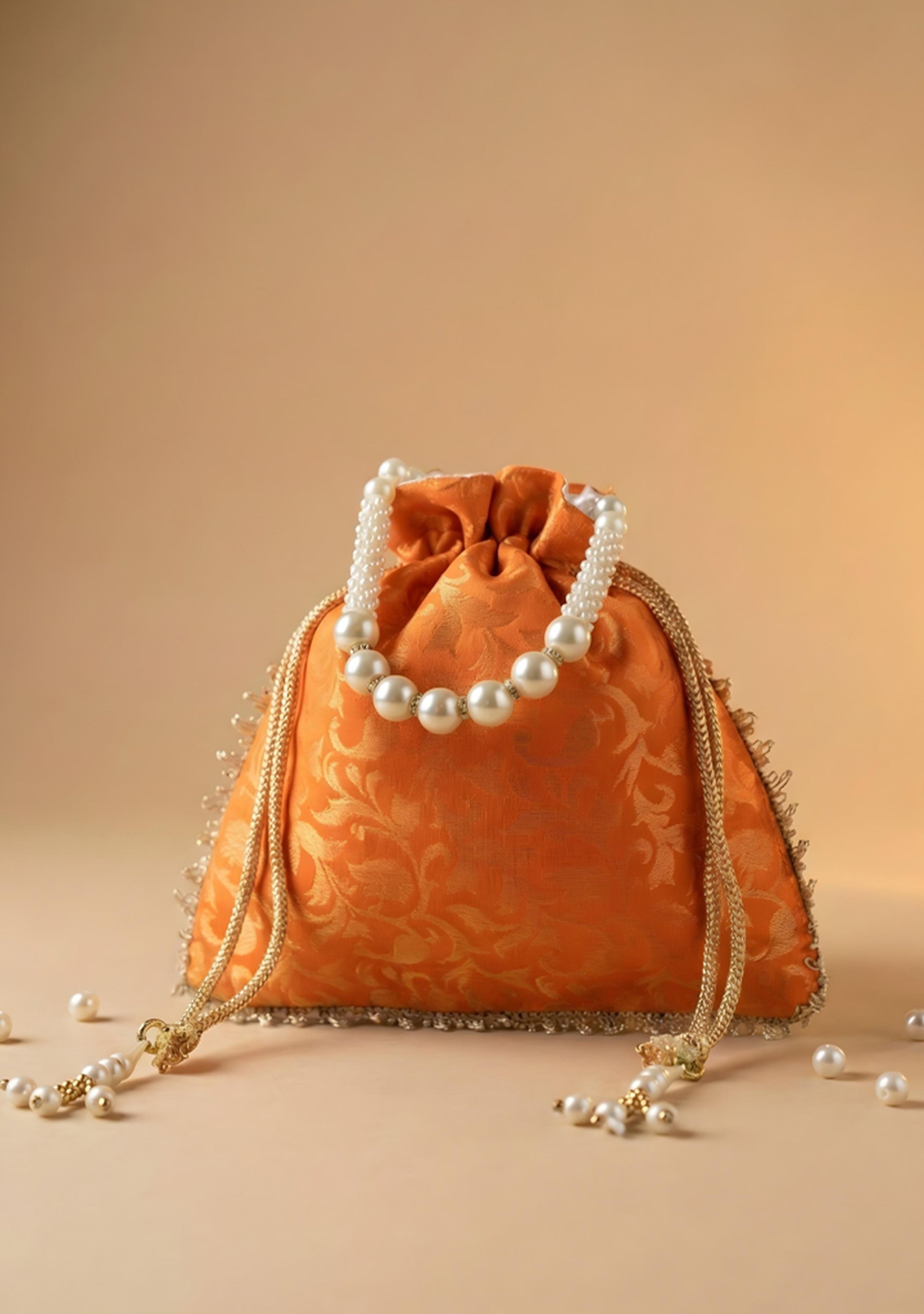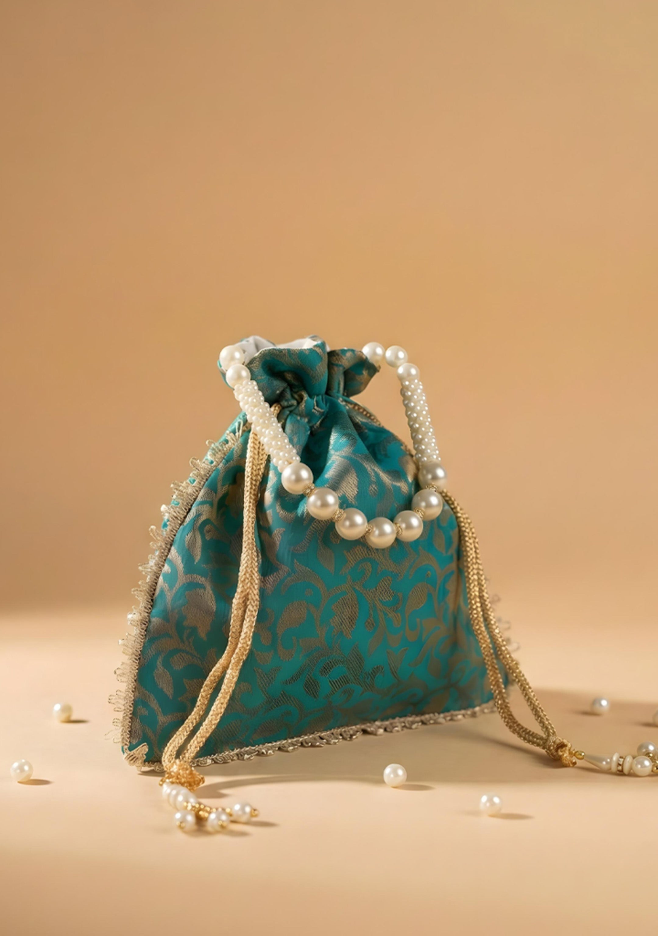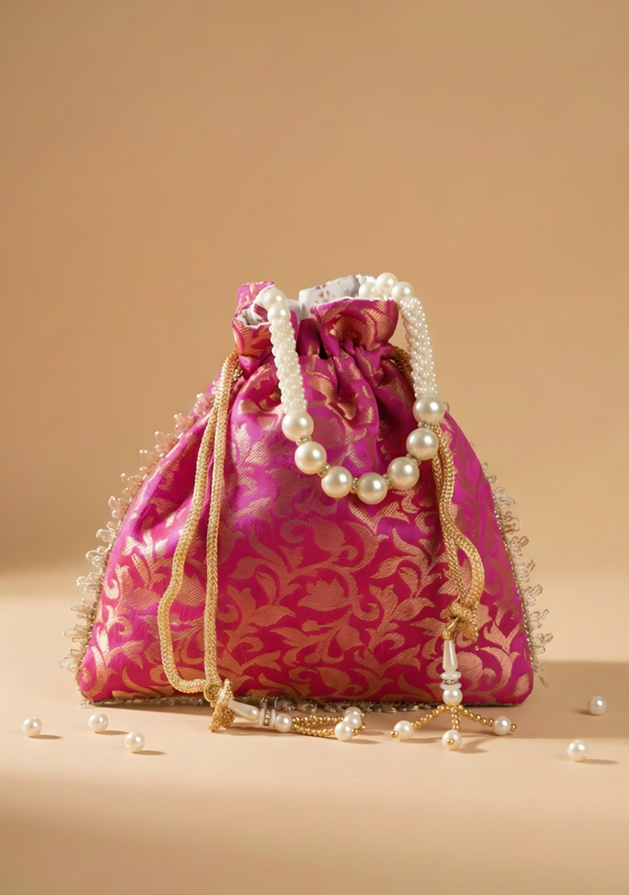 - Check out this cute and lovely potli bag that comes with golden lace work in the borders.