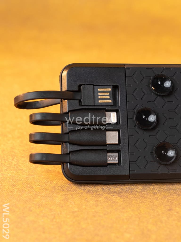 4 Built-in Cables : 3 Output Cable to Charge Devices & 1 USB Input Cable to Charge Powerbank.
