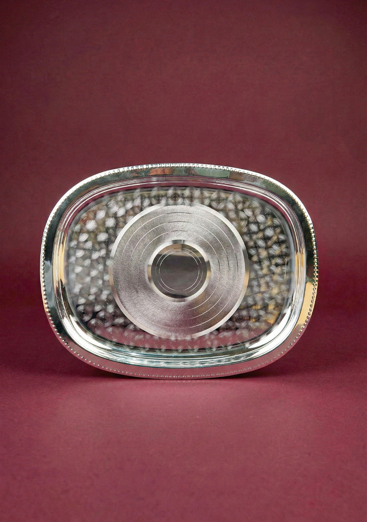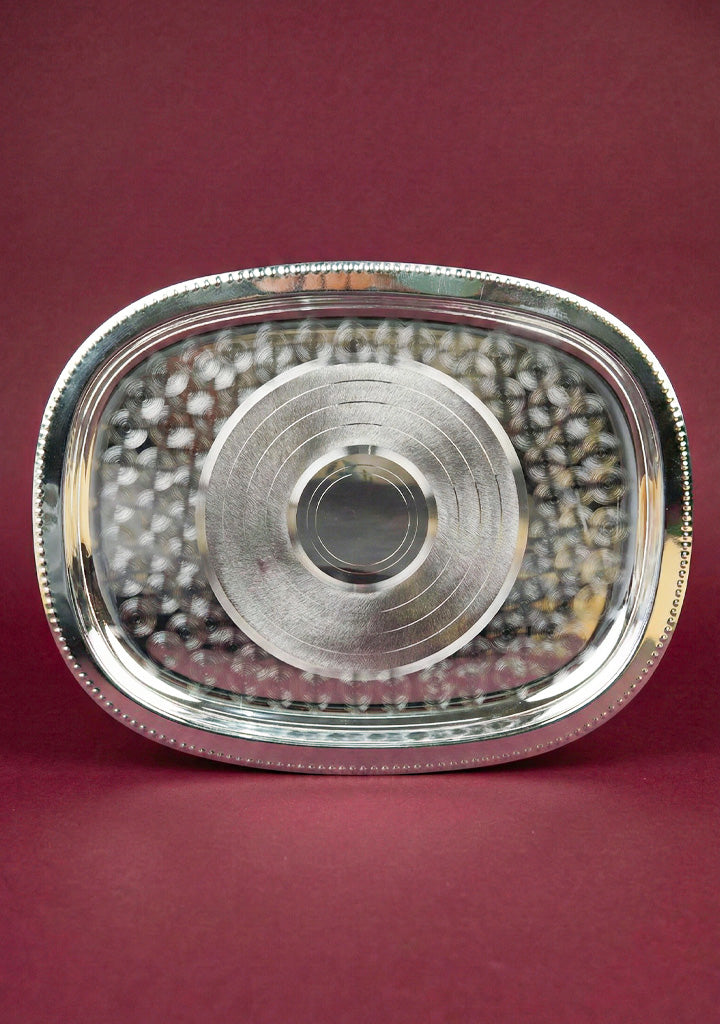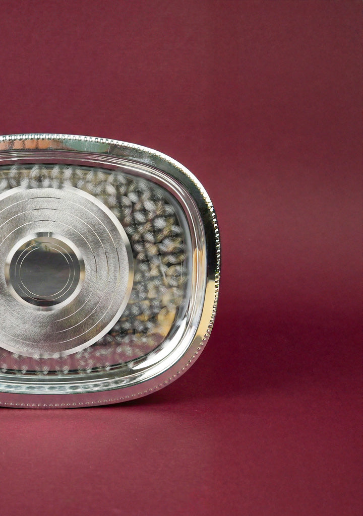 - Stainless Steel Plate with a Rectangular Shape and Rounded Corners.